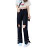 Pantalones vaqueros negros rotos para mujer, de primavera y otoño, de diseño recto, de cintura alta, adelgazantes, de verano, de calle alta, para mujer