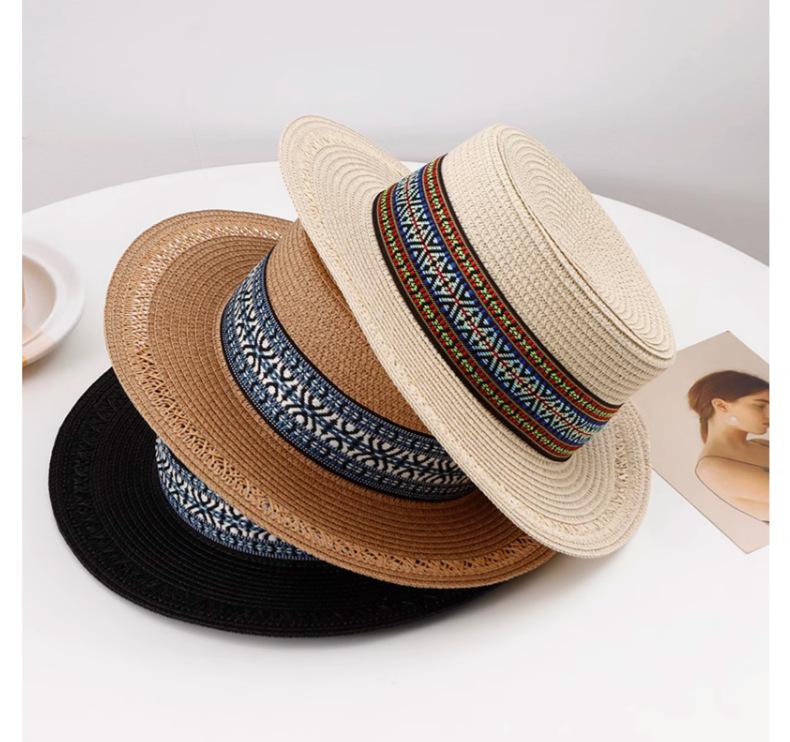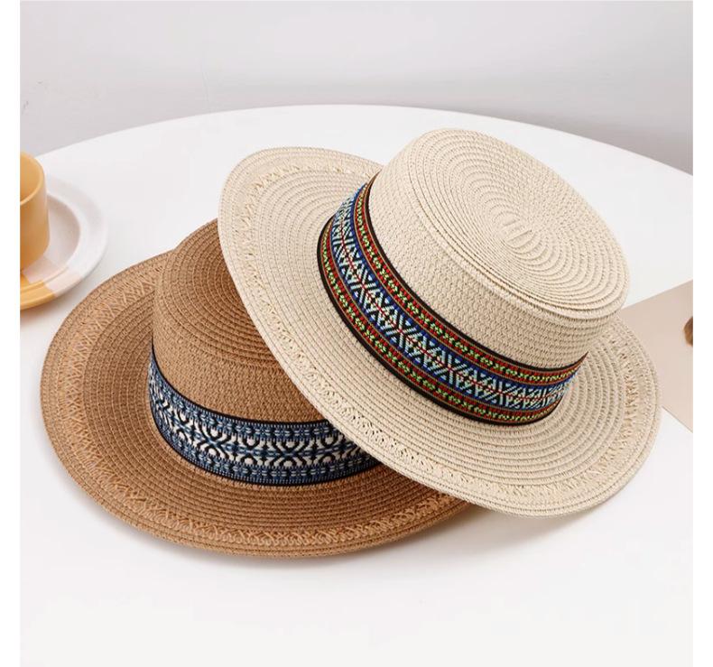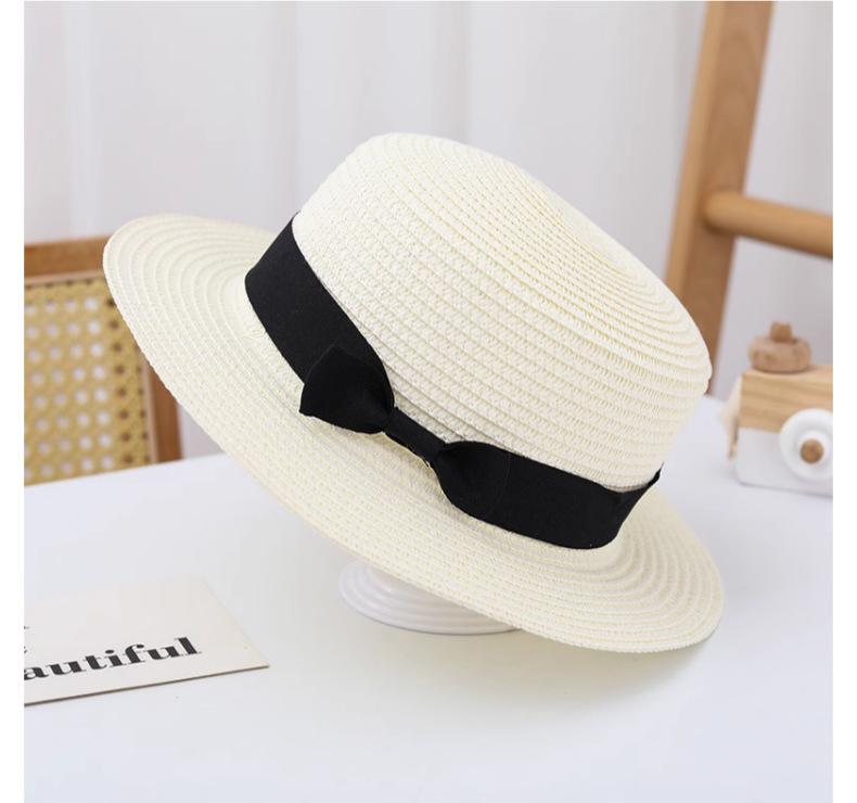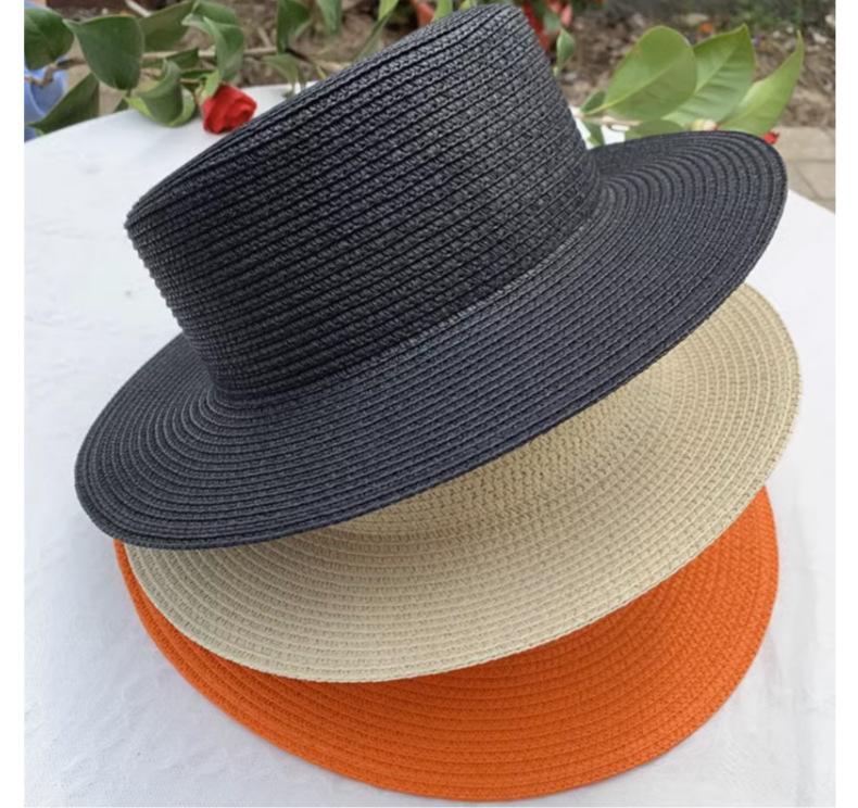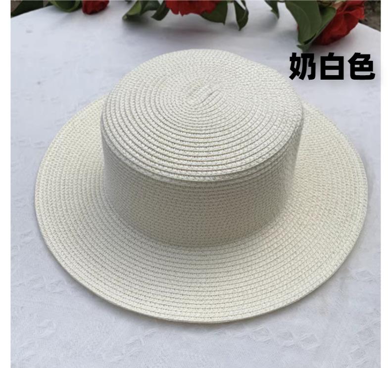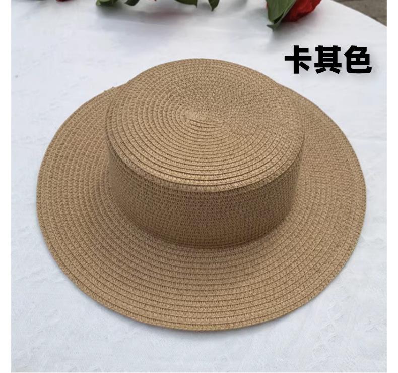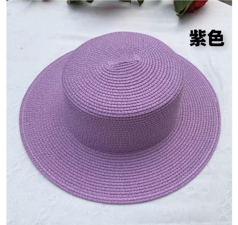 Sombrero de paja de ala ancha con protección solar de verano, de moda al por mayor, con cinta en el borde, monocromático, para mujer, para viajes, vacaciones, sombrilla de playa