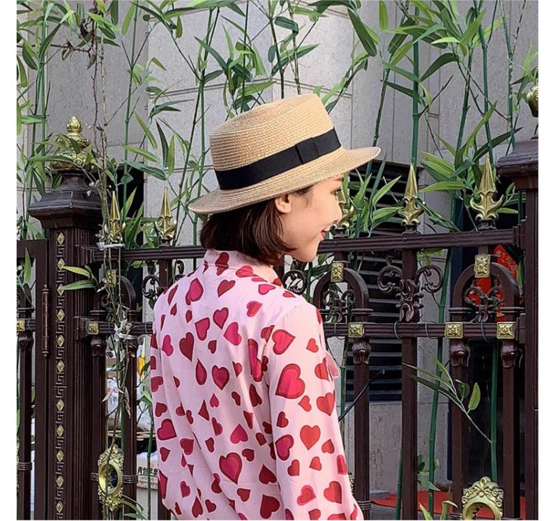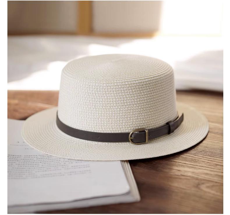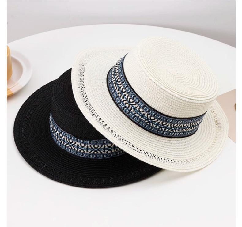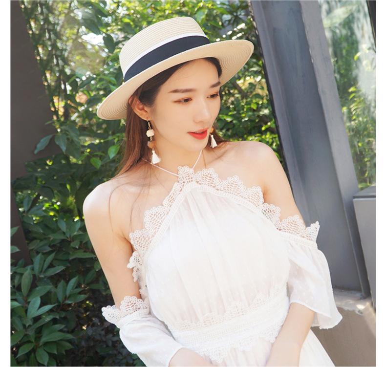 Versión coreana del sombrero plano de paja Lala, sombrilla de verano, sombrero de paja de ala grande, sombrero de playa transpirable con encaje monocromático para mujer