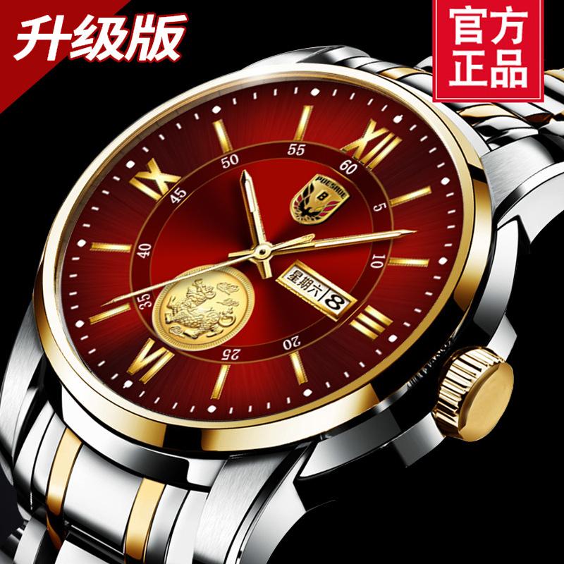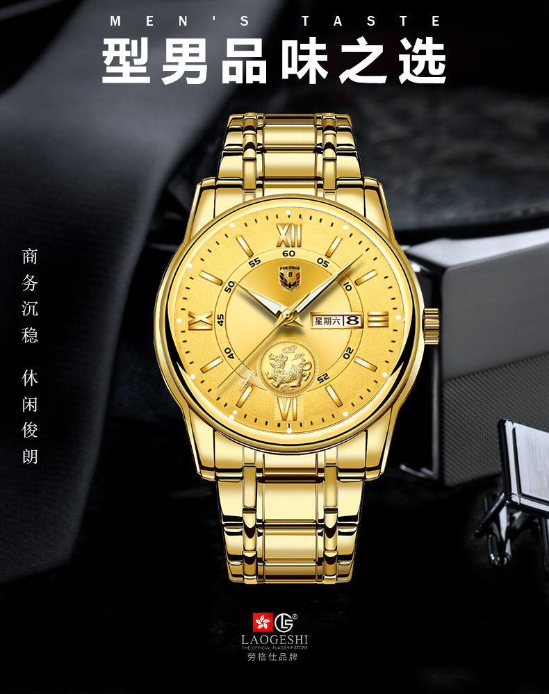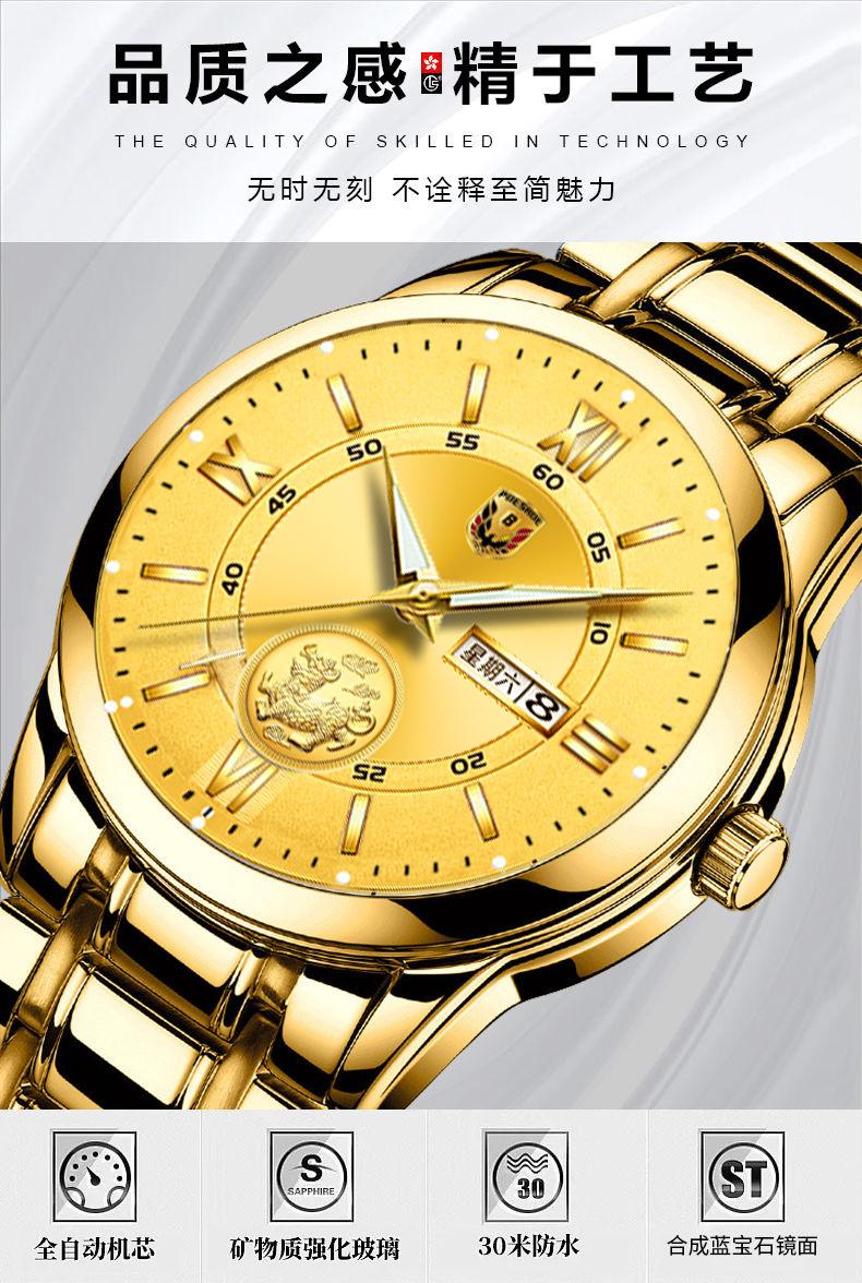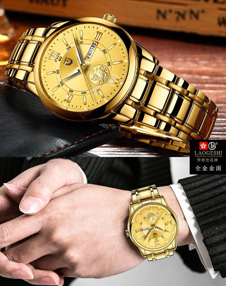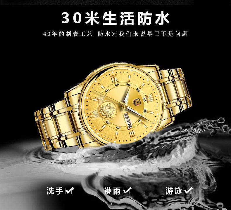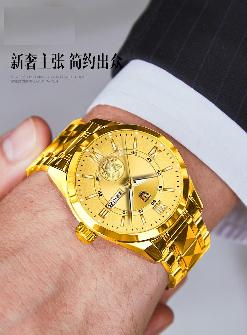 Reloj de hombre resistente al agua, luminoso, con doble calendario y correa de oro completo, mecánico, no automático, de moda, fino, electrónico de cuarzo, al por mayor