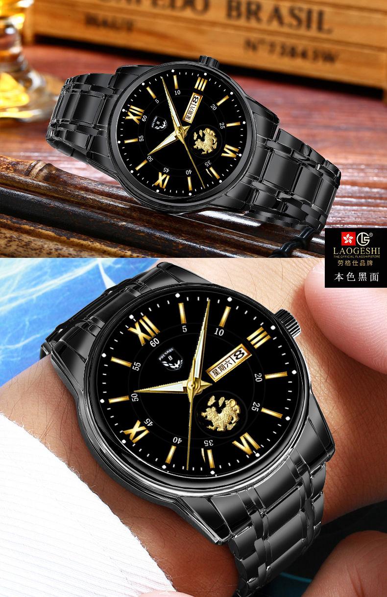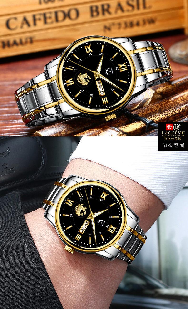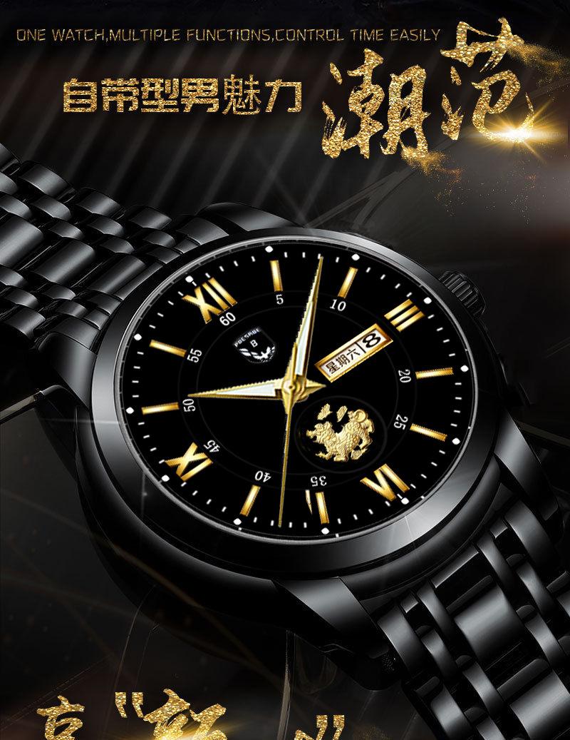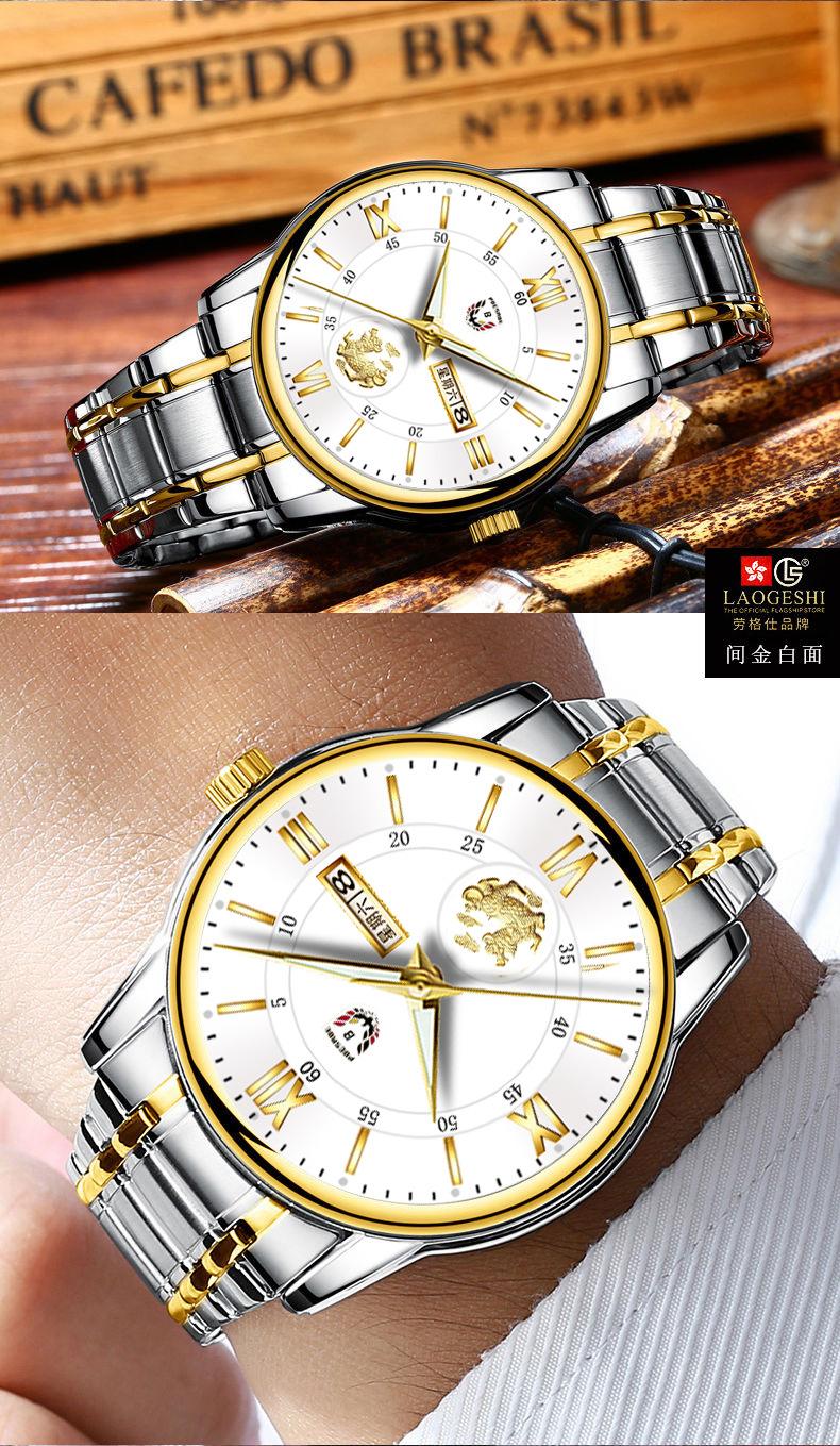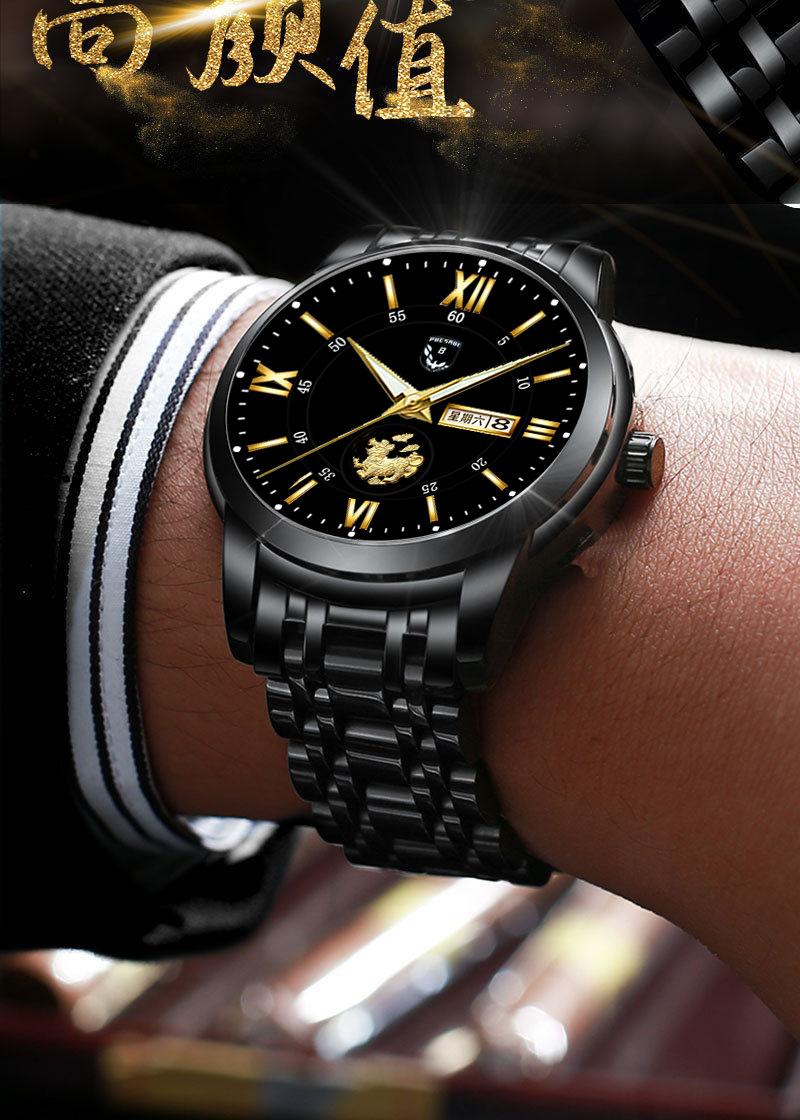 Reloj de hombre resistente al agua, luminoso, con doble calendario y correa de oro completo, mecánico, no automático, de moda, fino, electrónico de cuarzo, al por mayor