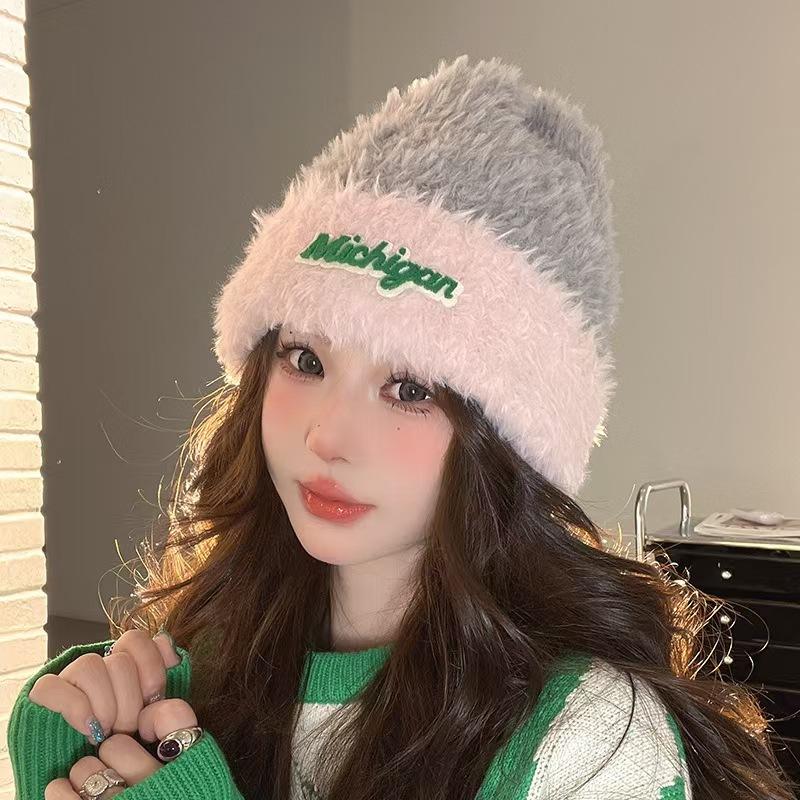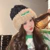 Gorro de lana de otoño e invierno para mujer, moda coreana, cálido, resistente al viento y al frío, gorro de felpa de punto cálido para montar al aire libre