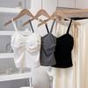 Camisola de verano nueva con diseño plisado y ajustado a la cintura para mujer con almohadilla para el pecho, copa fija, prenda exterior ajustada, top que combina con todo para mujer