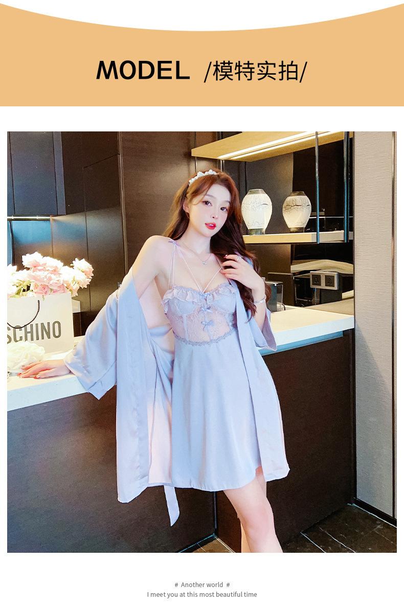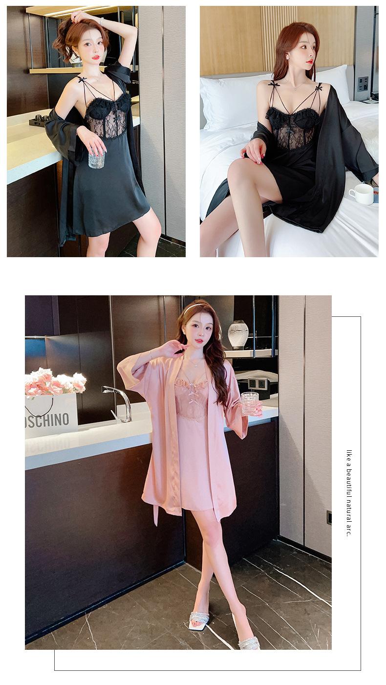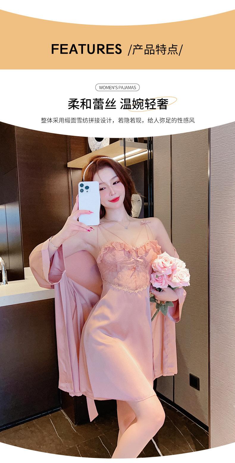 Pijama sexy de verano para mujer, camisón de tirantes, conjunto de dos piezas, popular en Internet, cinturón de encaje, almohadilla para el pecho, ropa para el hogar de primavera y otoño.