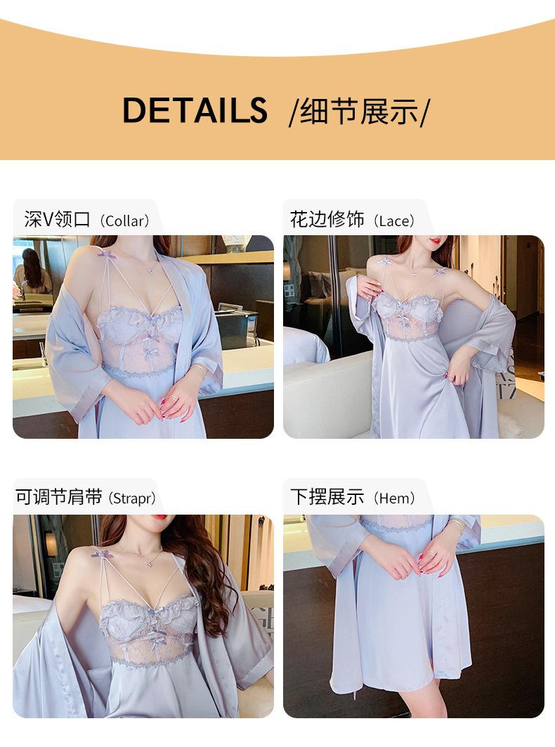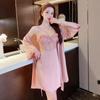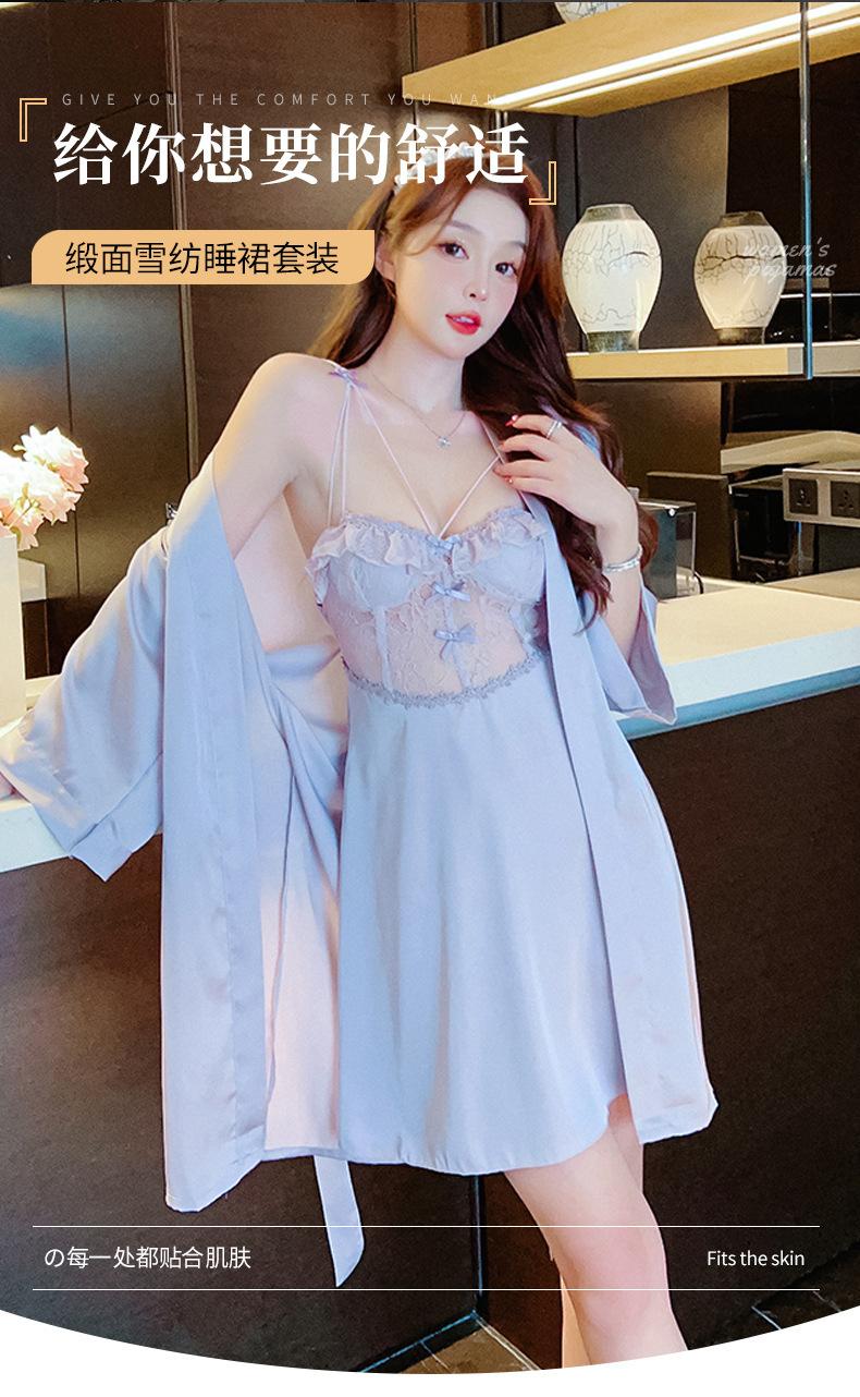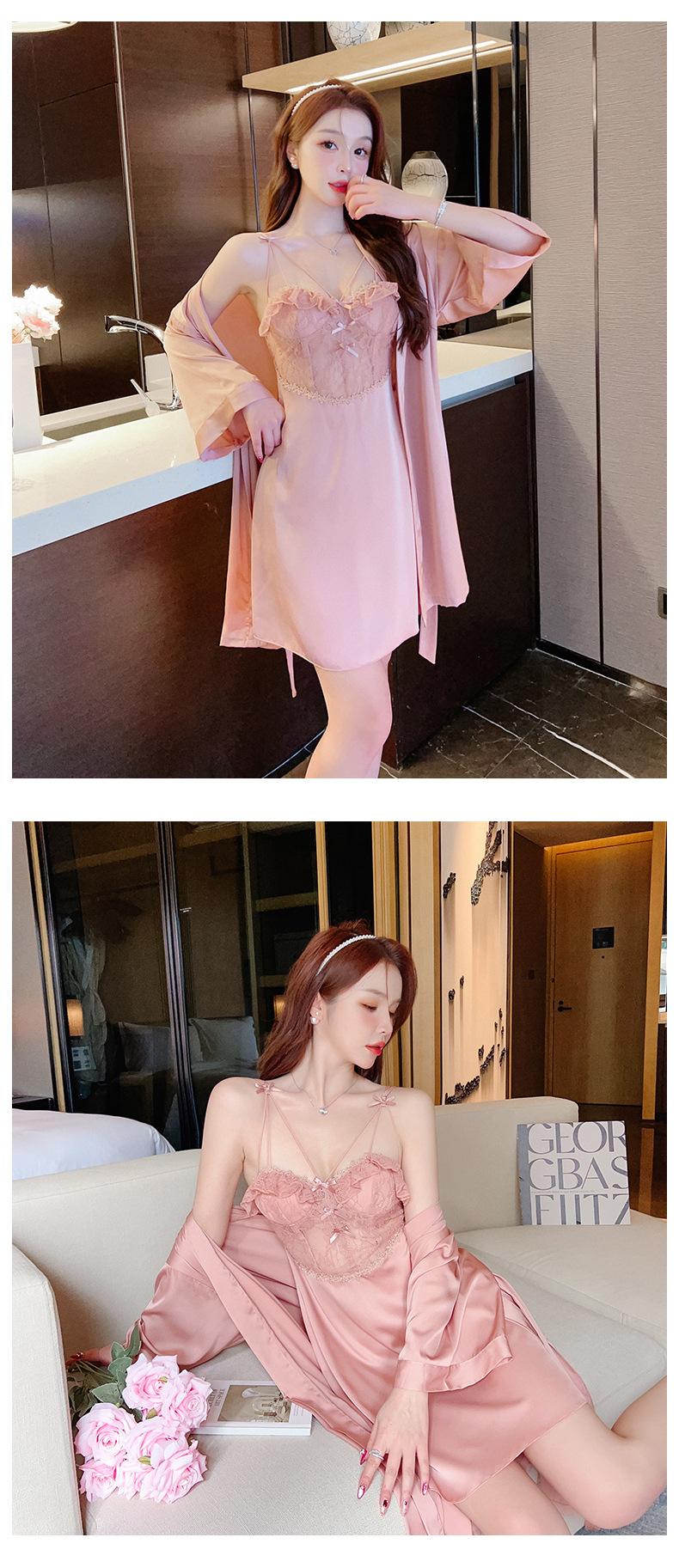 Pijama sexy de verano para mujer, camisón de tirantes, conjunto de dos piezas, popular en Internet, cinturón de encaje, almohadilla para el pecho, ropa para el hogar de primavera y otoño.