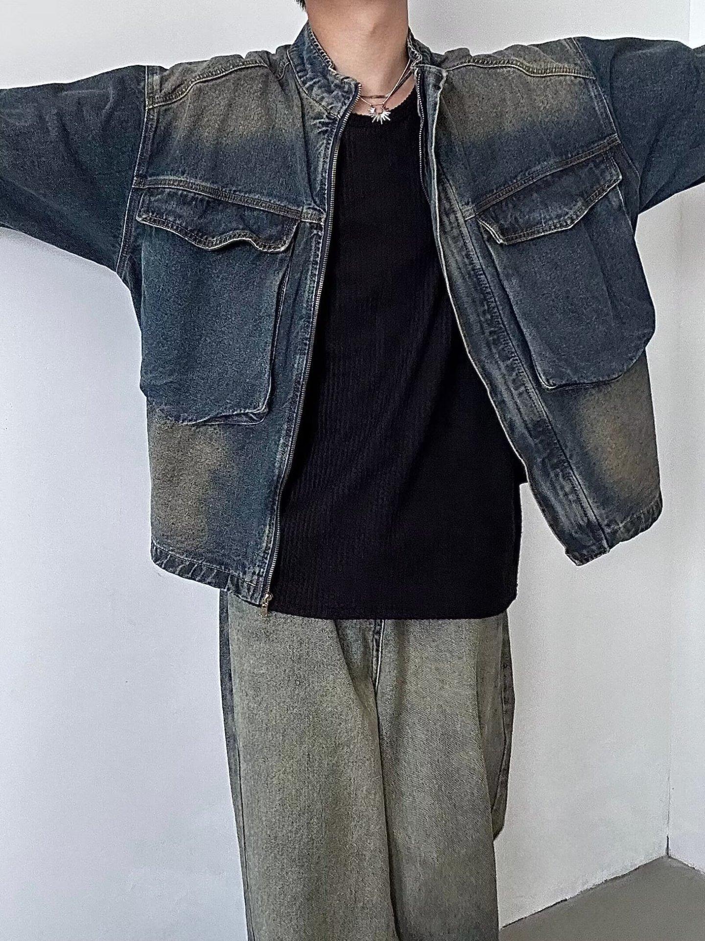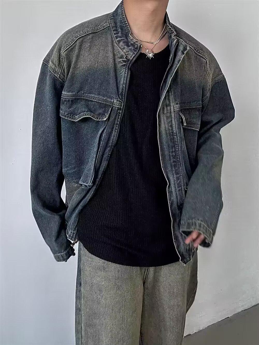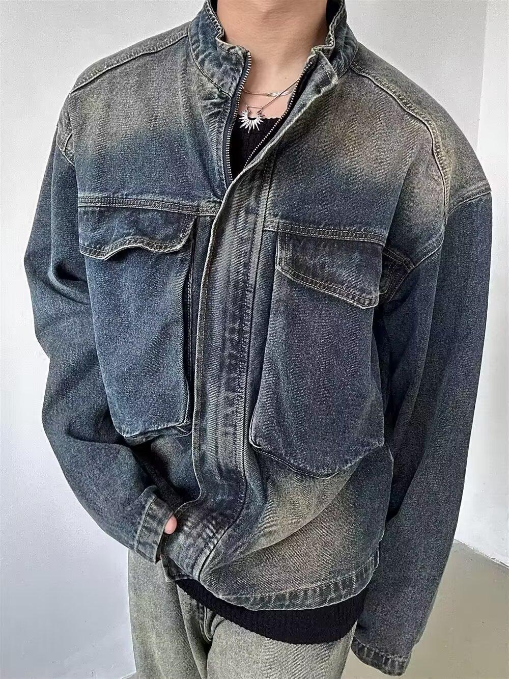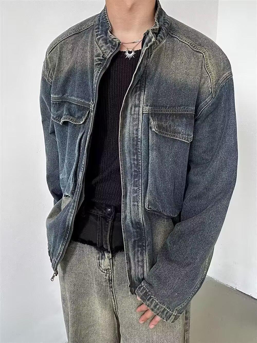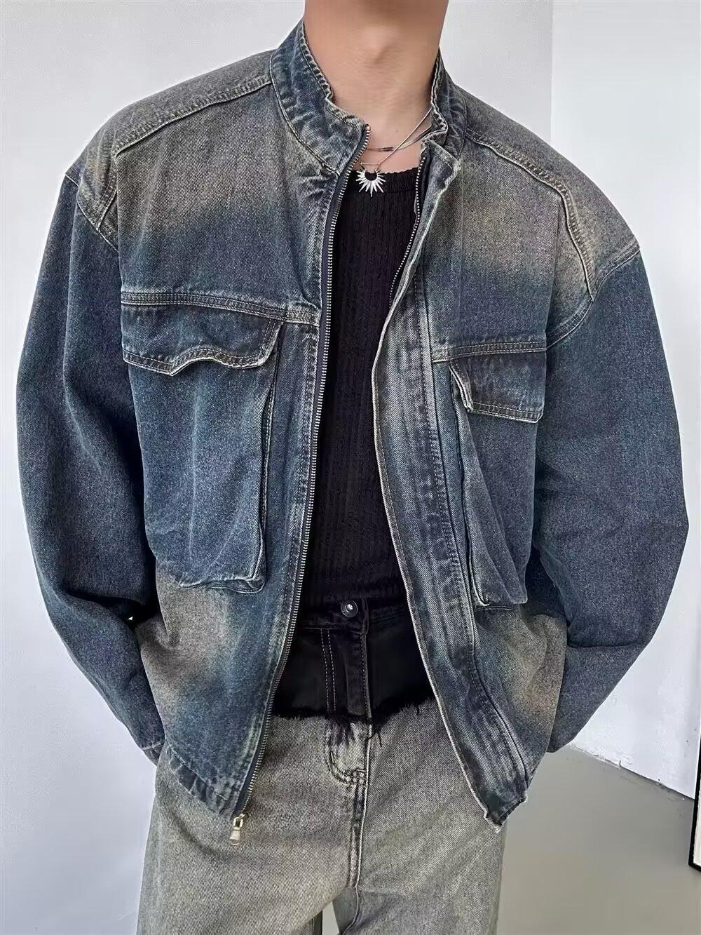 Chaqueta vaquera holgada con cuello de bolsillo grande, estilo retro azul nostálgico de primavera y otoño para hombre, chaqueta informal de estilo urbano que combina con todo.