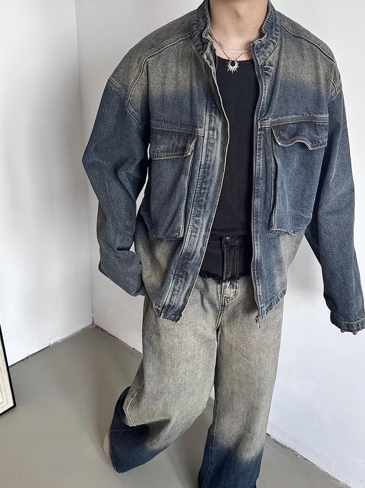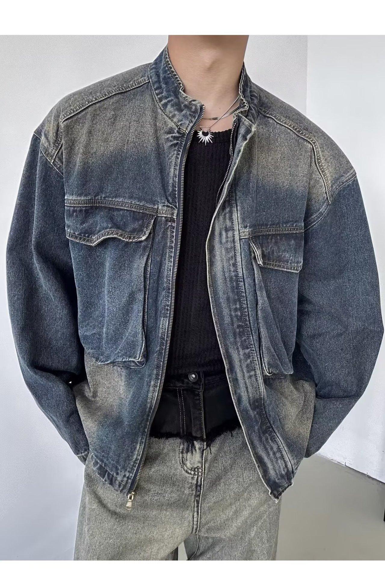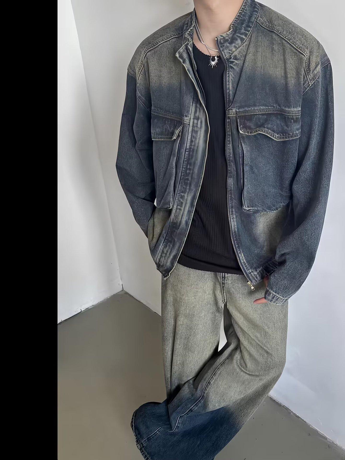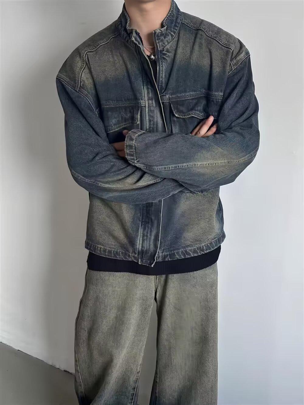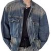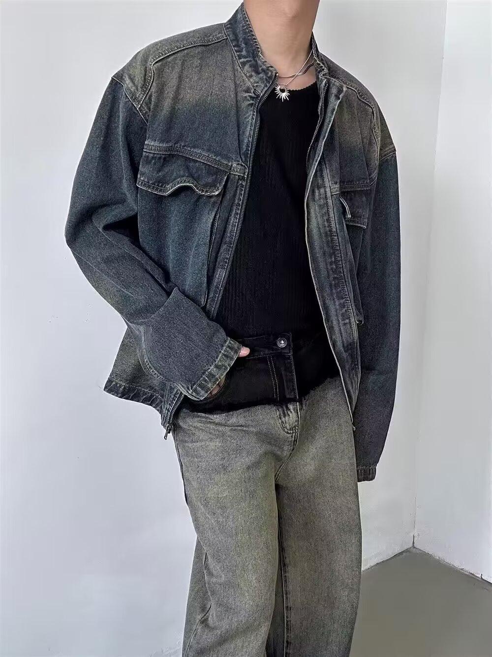 Chaqueta vaquera holgada con cuello de bolsillo grande, estilo retro azul nostálgico de primavera y otoño para hombre, chaqueta informal de estilo urbano que combina con todo.