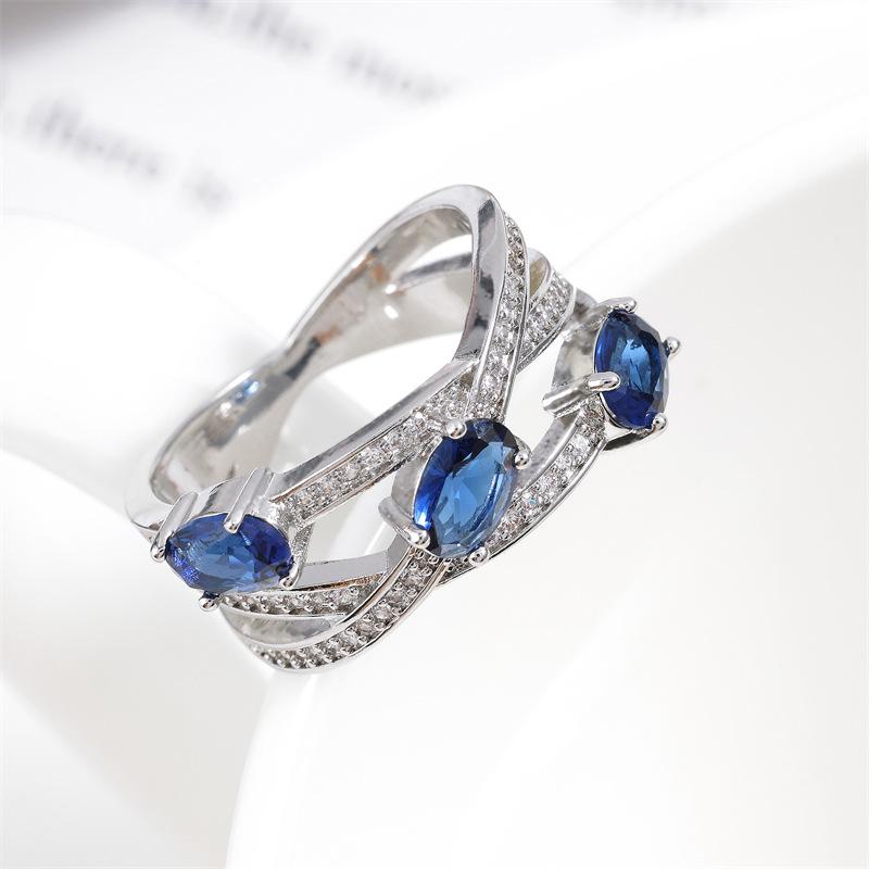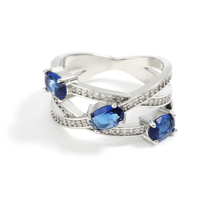Anillo Cruzado de Doble Capa Lujo Ligero Europeo y Americano Industria Pesada Anillo de Dedo Moda para Mujer Lujo Ligero Personalizado Anillo de Gema Nuevo Nicho