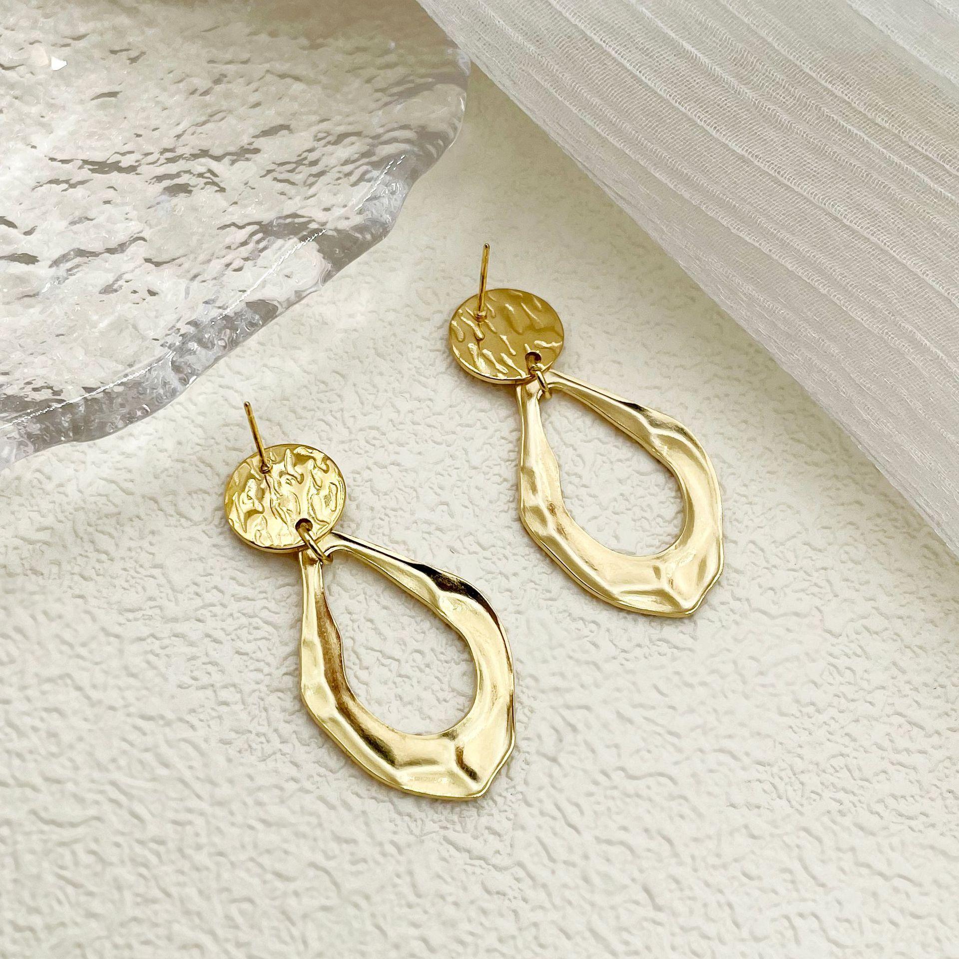 Pendientes de oro irregulares con nueva personalidad retro francesa, diseño de nicho europeo y americano, de acero inoxidable chapado en oro.