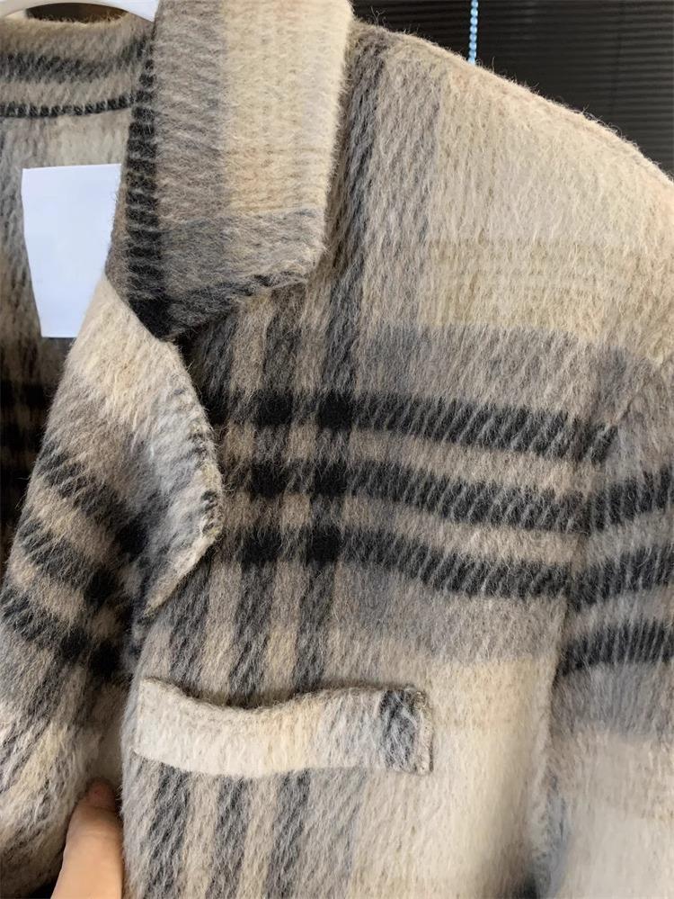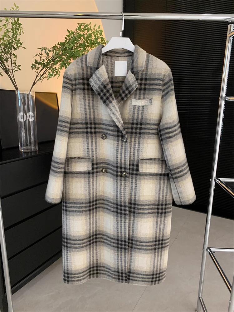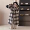 Abrigo de Cachemira de Doble Cara a Cuadros para Mujer 2024 Otoño e Invierno Nuevo Estilo Coreano Abrigo de Lana de Longitud Media para Mujer