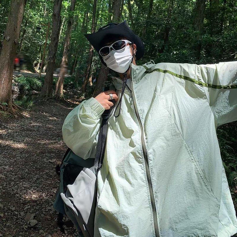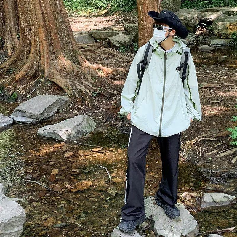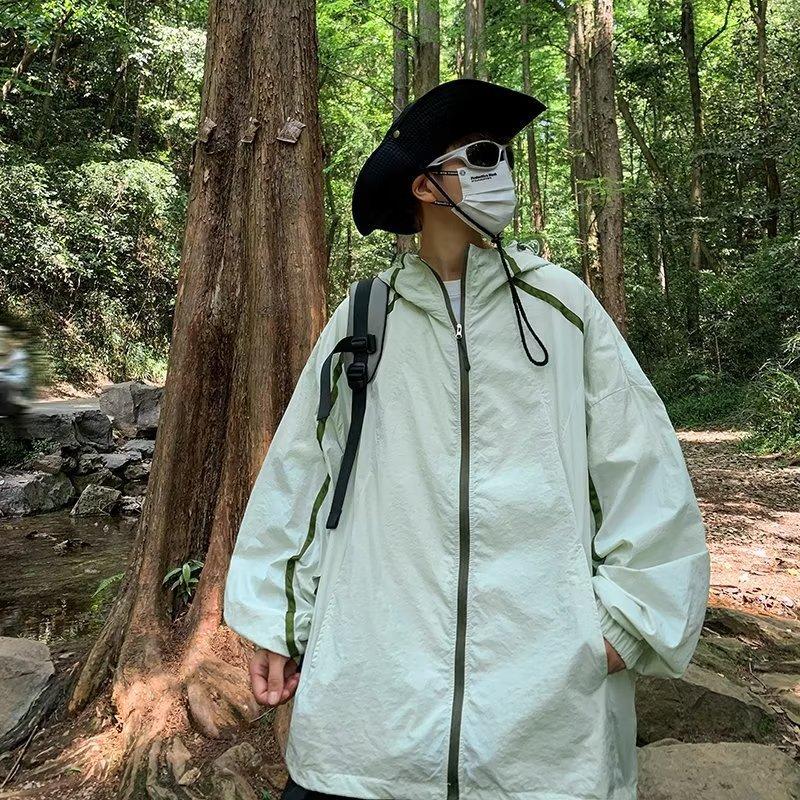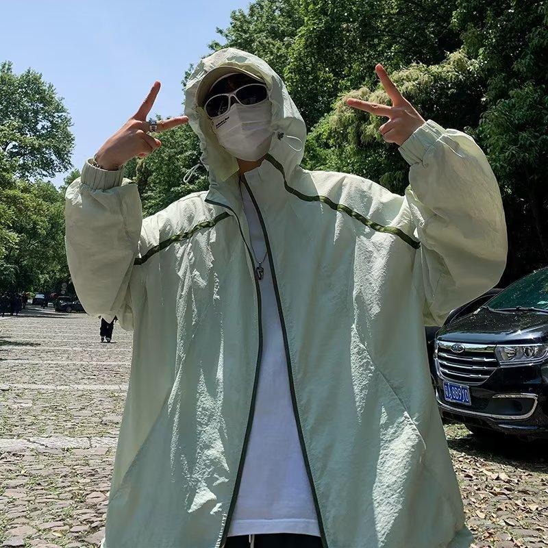 Ropa de protección solar para hombres y mujeres, primavera y verano, estilo Hong Kong, chaqueta holgada con capucha, combinable, fina, transpirable y con protección solar.