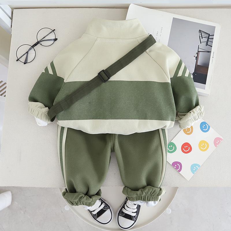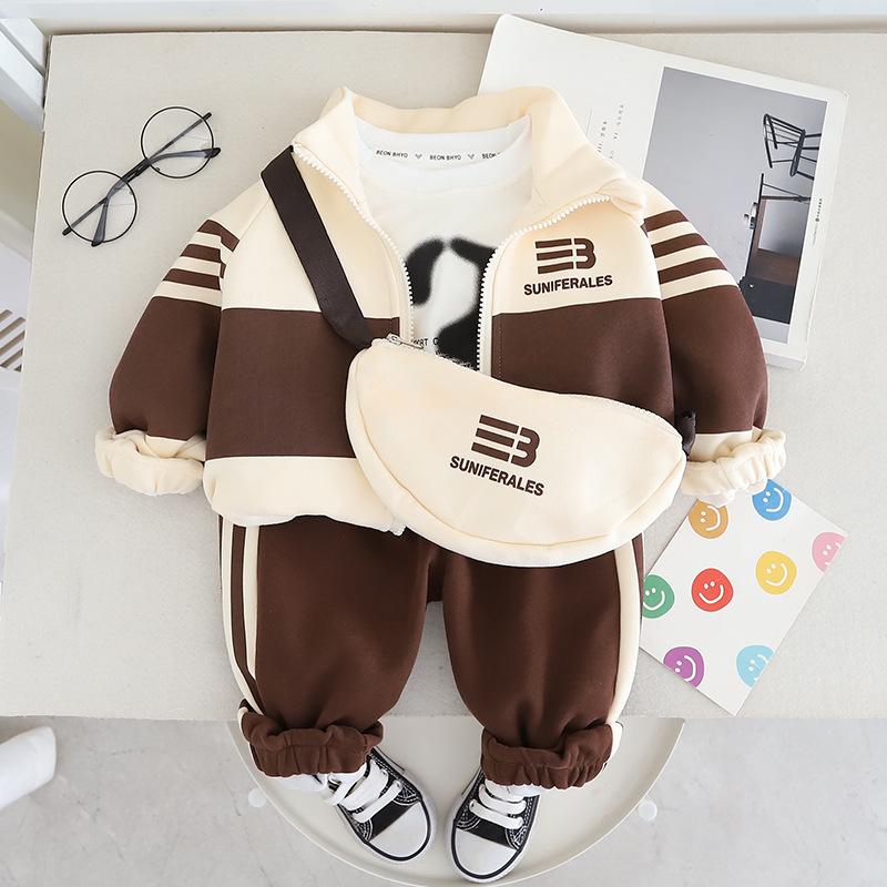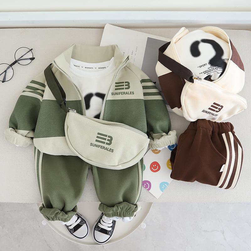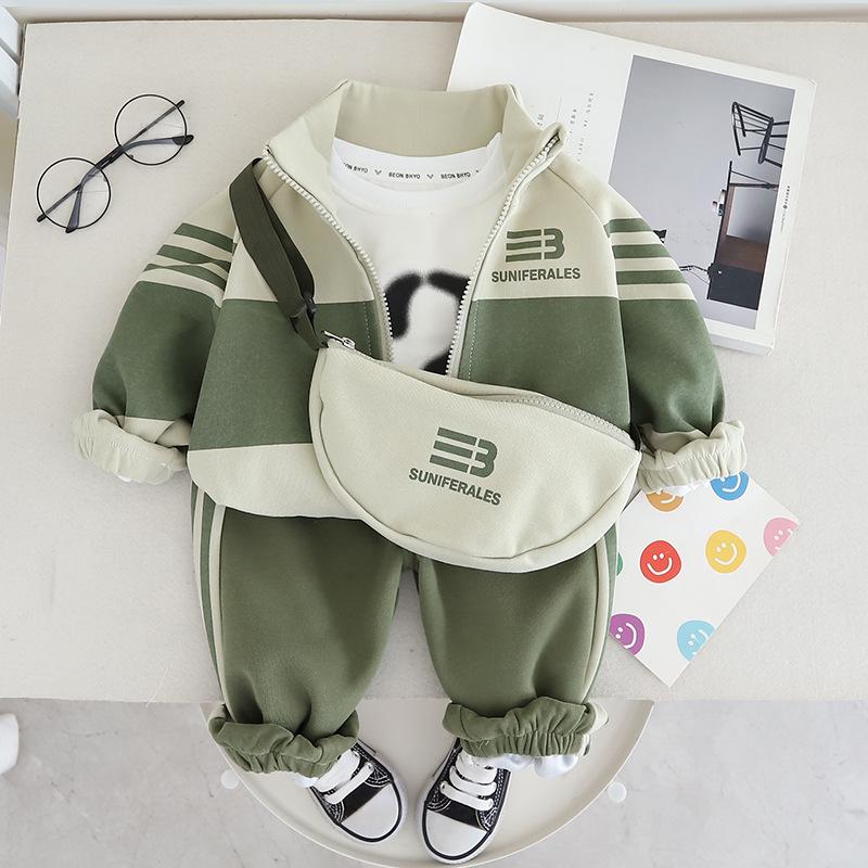 Ropa para niños Traje de otoño para niño 2024 Nuevo conjunto de tres piezas de cartera deportiva informal de manga larga estilo occidental para niños de otoño a la moda