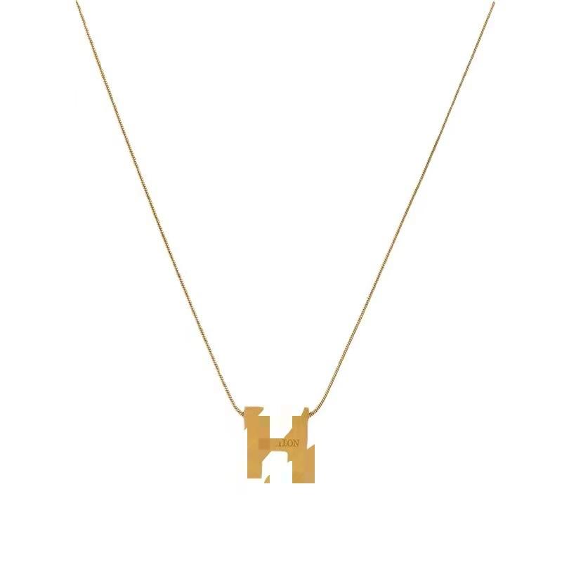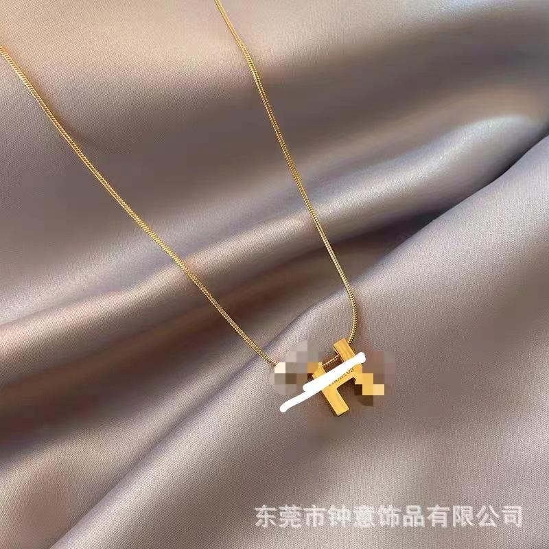 Collar de Acero de Titanio con Letra H para Mujer 2.25 Nueva Cadena de Clavícula Nicho Otoño e Invierno Accesorios que No se Desvanecen Simple y Trendy