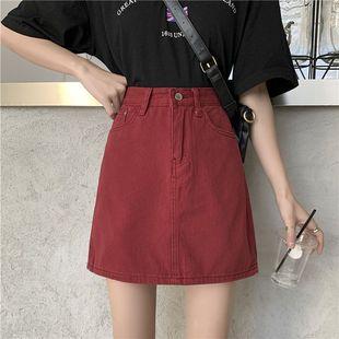 |  |  | Falda vaquera burdeos para mujer, nuevo estilo coreano de verano, falda de cintura alta para estudiantes de talla grande que combina con todo, falda ajustada de corte A | 13,00 ¥vendido | |
