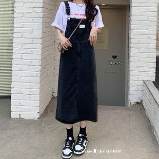 | |  |  | Vestido de tirantes de mezclilla retro negro para mujer, novedad de verano 2022, falda de talla grande mm de cintura alta, falda larga tipo A | ¥29.00vendido | |