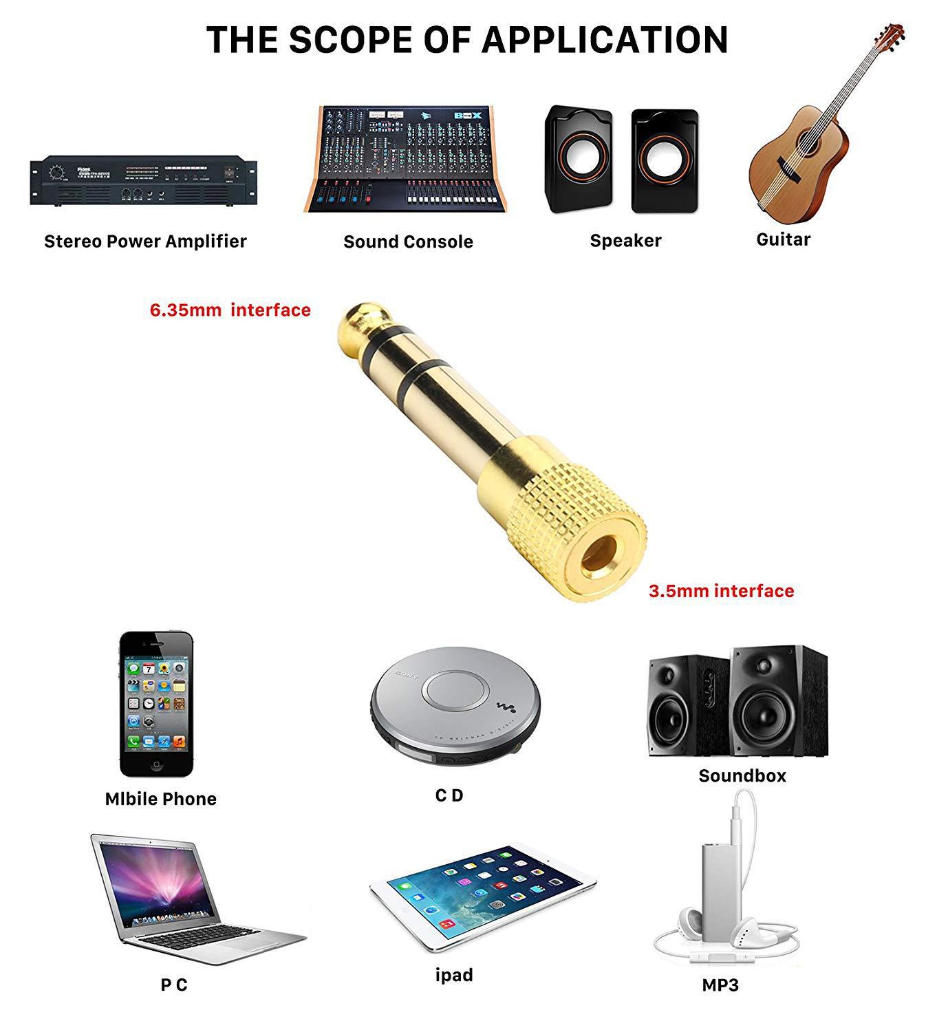 Adaptador de auriculares hembra de 3,5 mm para piano eléctrico, guitarra, micrófono y batería electrónica.