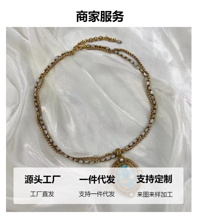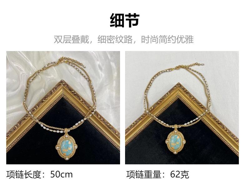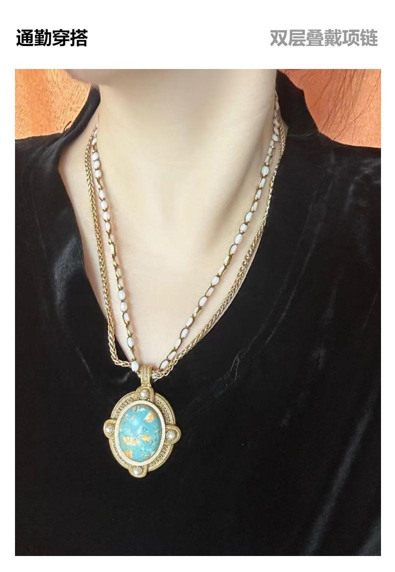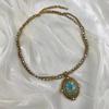 Collar Versátil de Moda de Alta Gama Turquesa Cadena Retro para Clavícula Cadena para Suéter Diseño Nicho Joyería para Mujer Venta al por Mayor