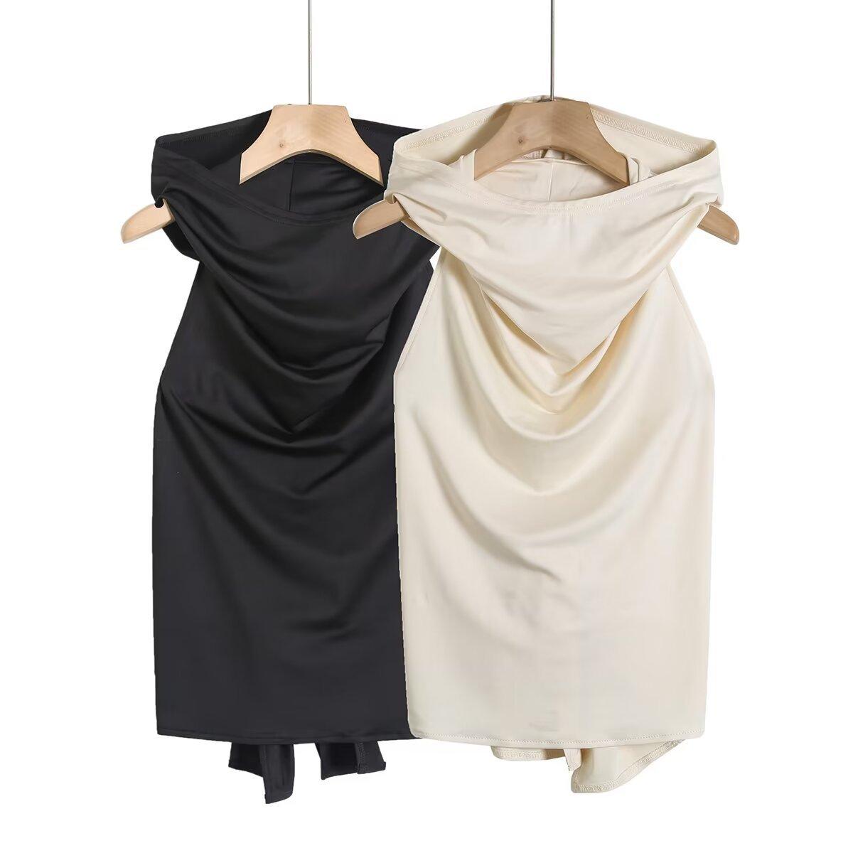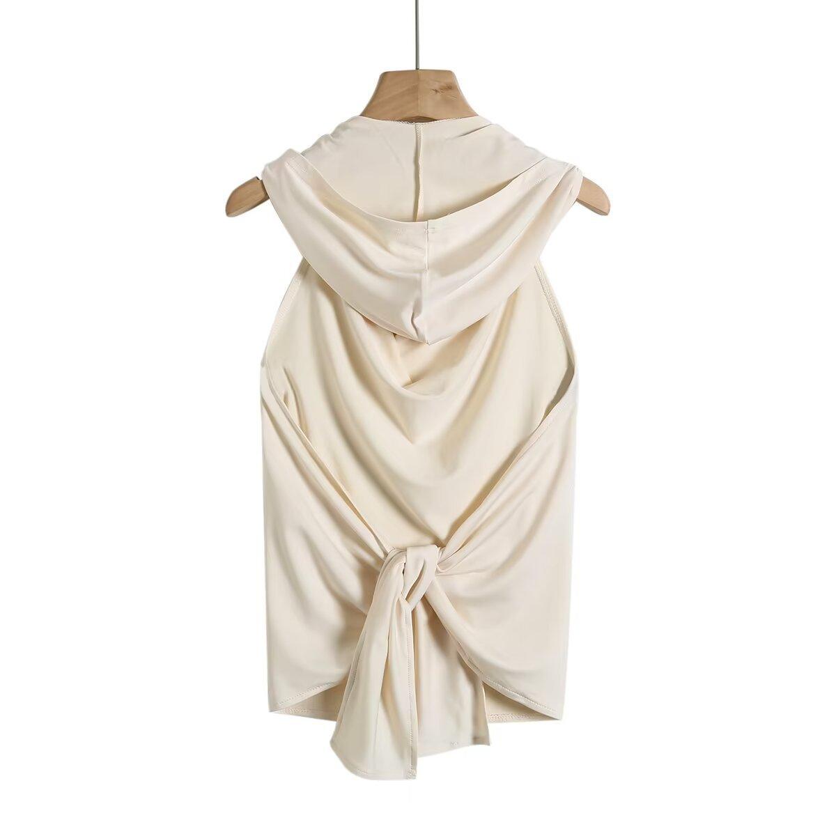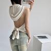 Chaleco sin mangas con capucha y espalda descubierta de color sólido para mujer, top sexy con cordones y espalda descubierta, novedad de verano de 2024