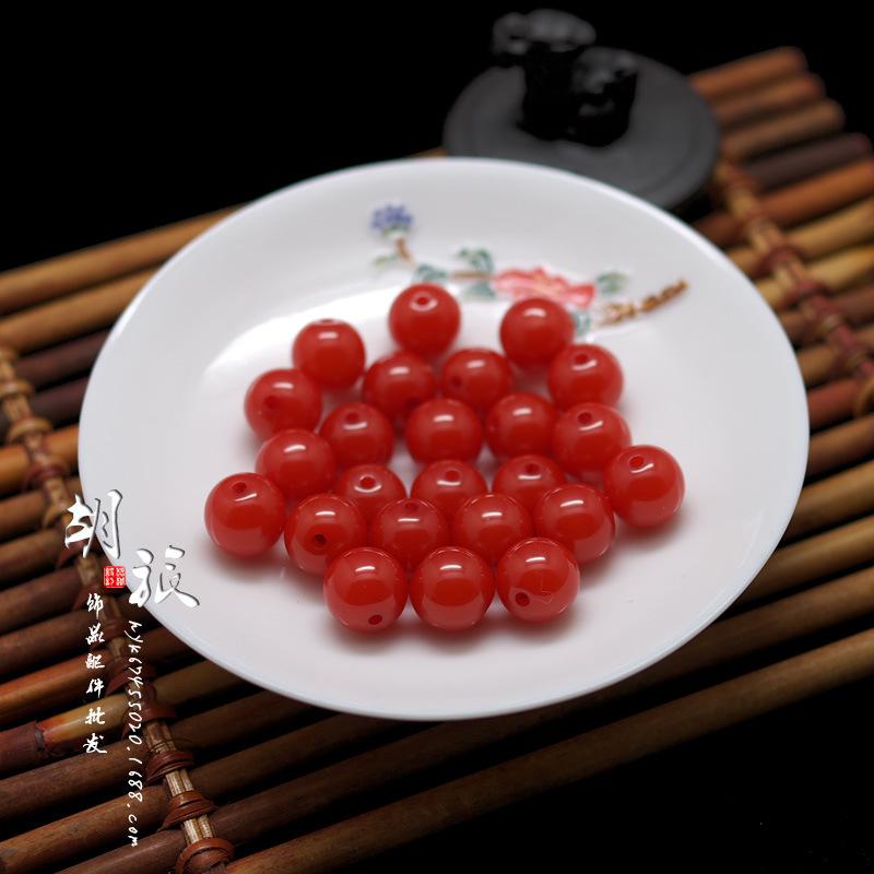 Accesorios de joyería con cuentas budistas hechas a mano, cuentas dispersas de ágata roja de alta imitación, cuentas redondas rojas de resina, venta directa de fábrica