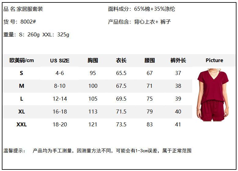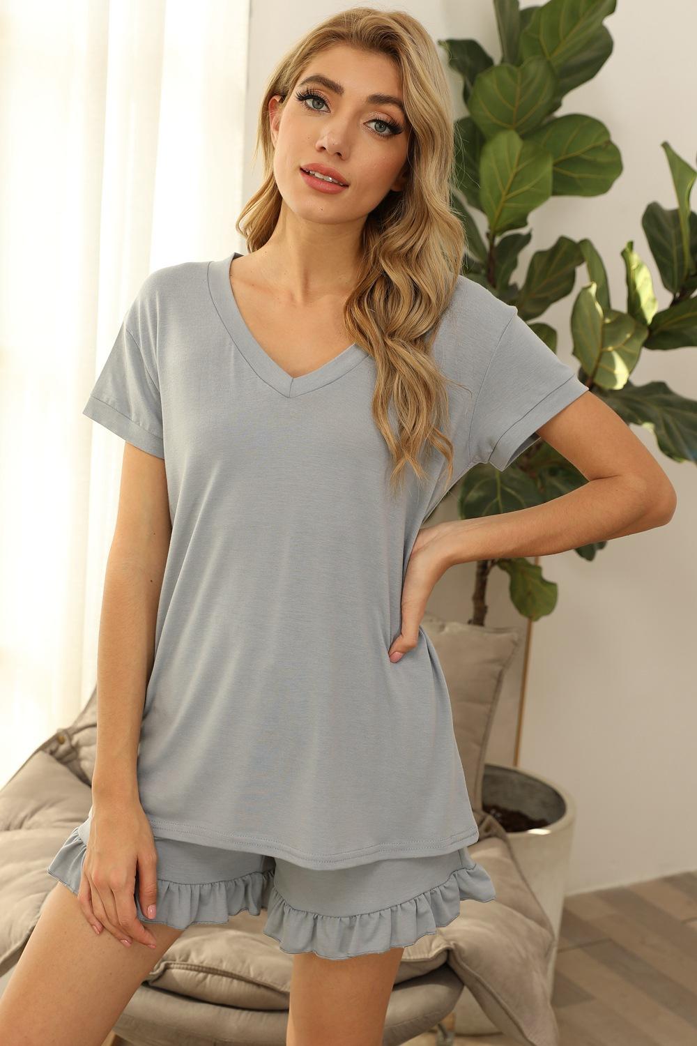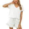Ropa de mujer nueva de primavera y verano de Europa y América 2023. Traje de dos piezas para casa con top y pantalones cortos de cuello en V de manga corta para mujer de Amazon.