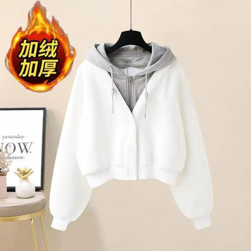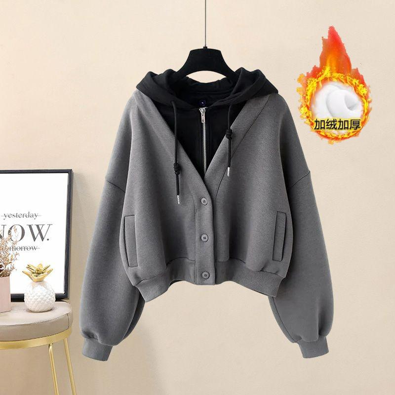 2025 Nuevo Algodón Chino Compuesto Terciopelo Más Terciopelo Engrosado Talla Grande Vacaciones de Otoño Dos Piezas Más Fácil de Combinar Sudadera Holgada
