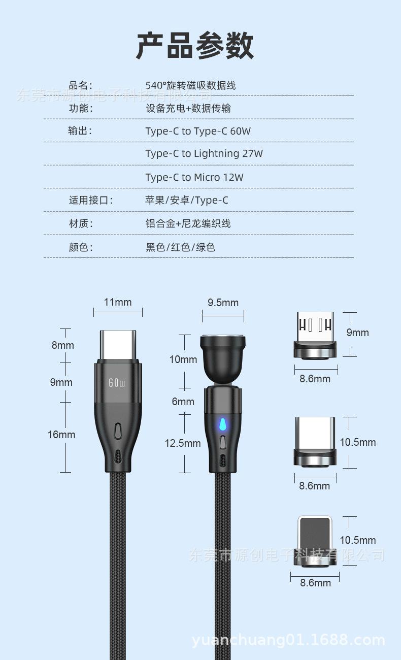 Nota: Los cabezales magnéticos Tipo-c que vienen con este cable magnético se dividen en cabezales dedicados de 60W y 100W; los cabezales magnéticos de Apple se dividen en 12W y 27W. Por favor, elija el cabezal que necesita al realizar el pedido para evitar pérdidas.