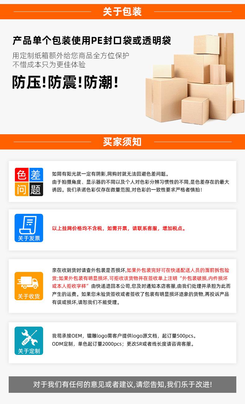 4. Nuestra empresa puede apoyar la producción OEM, el grabado láser de logotipos y la personalización ODM. Por favor, contacte con el servicio de atención al cliente para los detalles de la cooperación.