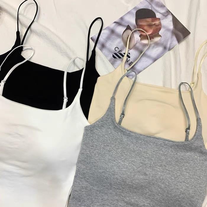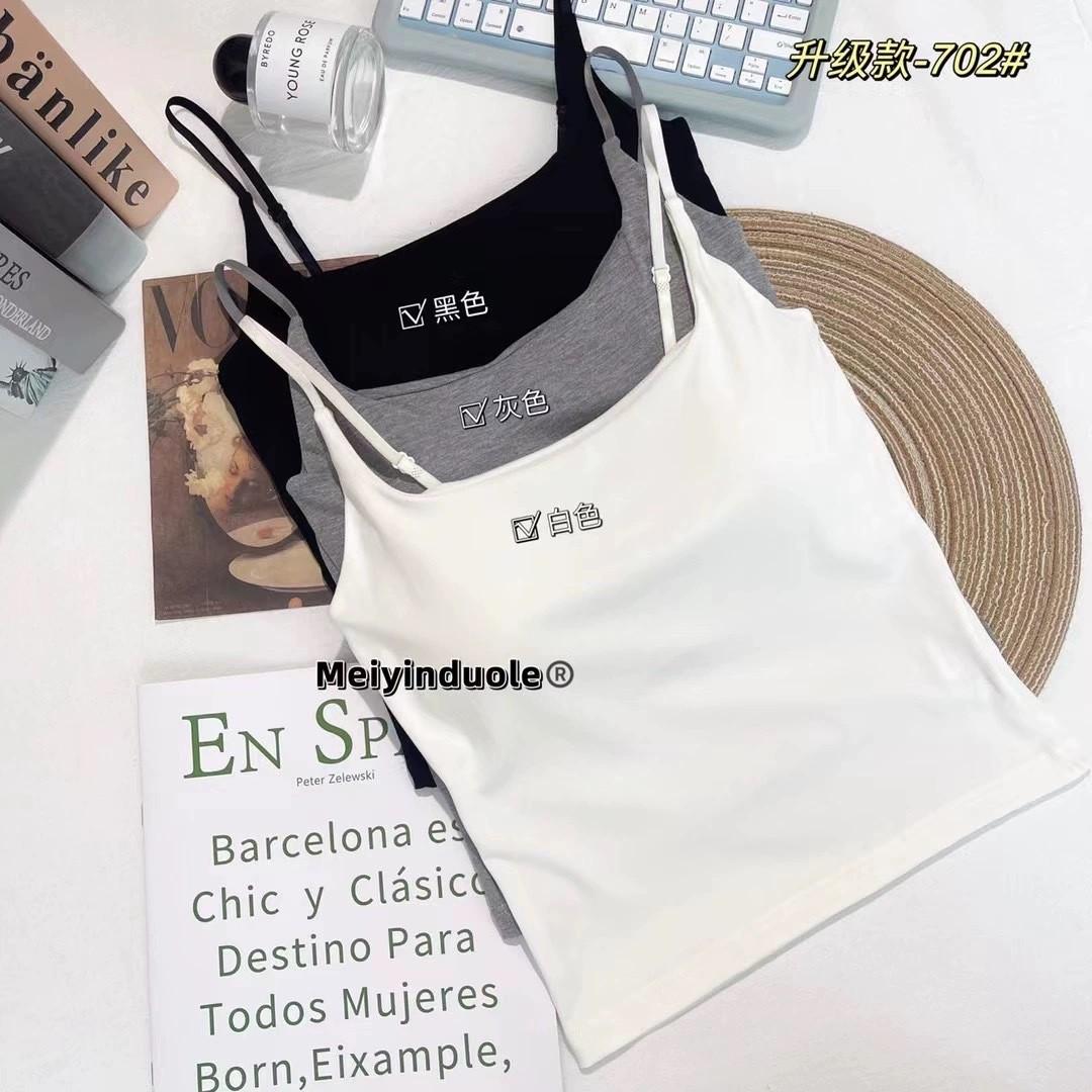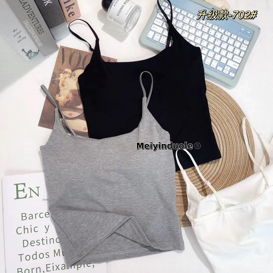 Venta Caliente 702 Nuevo Estilo Algodón Sling Copa Fija de Una Pieza Relleno de Pecho Sin Costuras Tirante Ajustable Chaleco Combinable