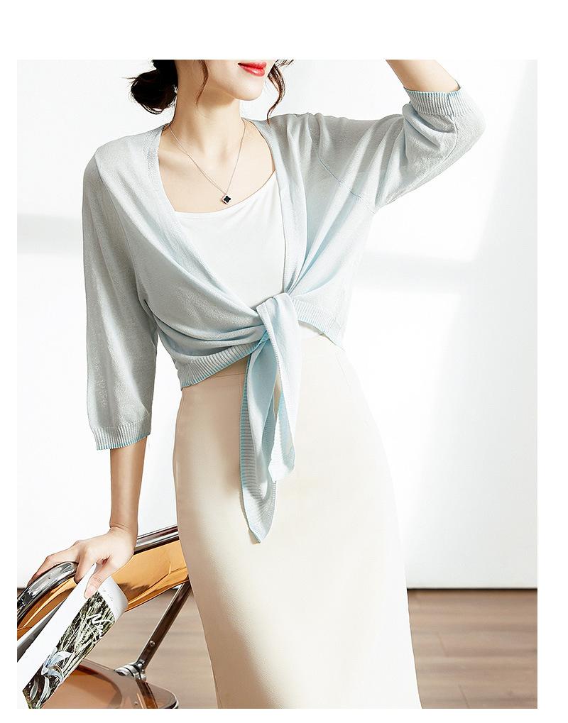 Cárdigan Brillante Protector Solar de Seda de Hielo para Mujer, Top de Punto de Verano, Chaqueta Fina, Prenda Exterior Corta, Chal Pequeño, Cubre para Aire Acondicionado