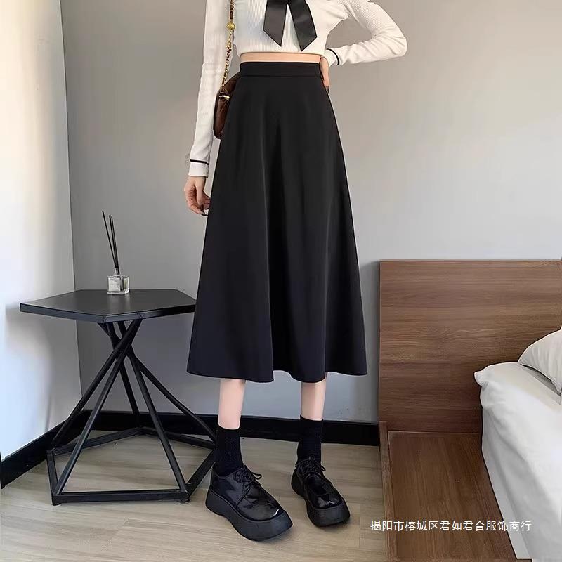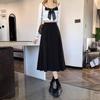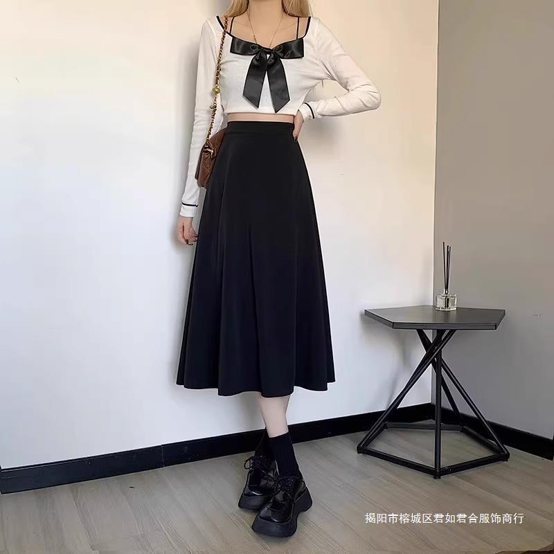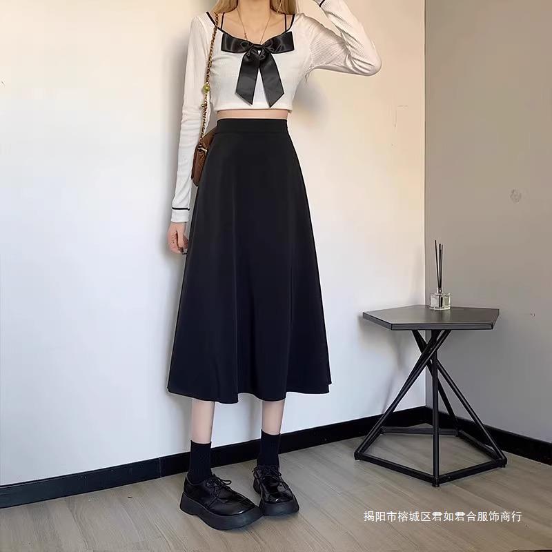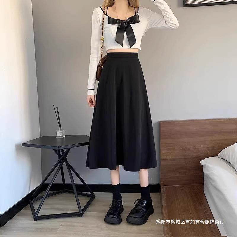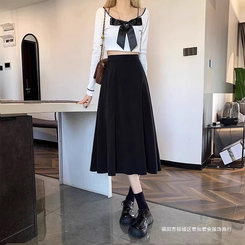 Falda acampanada de cintura alta y longitud media para niña pequeña, color negro, estilo paraguas grande, para primavera y otoño de 2023