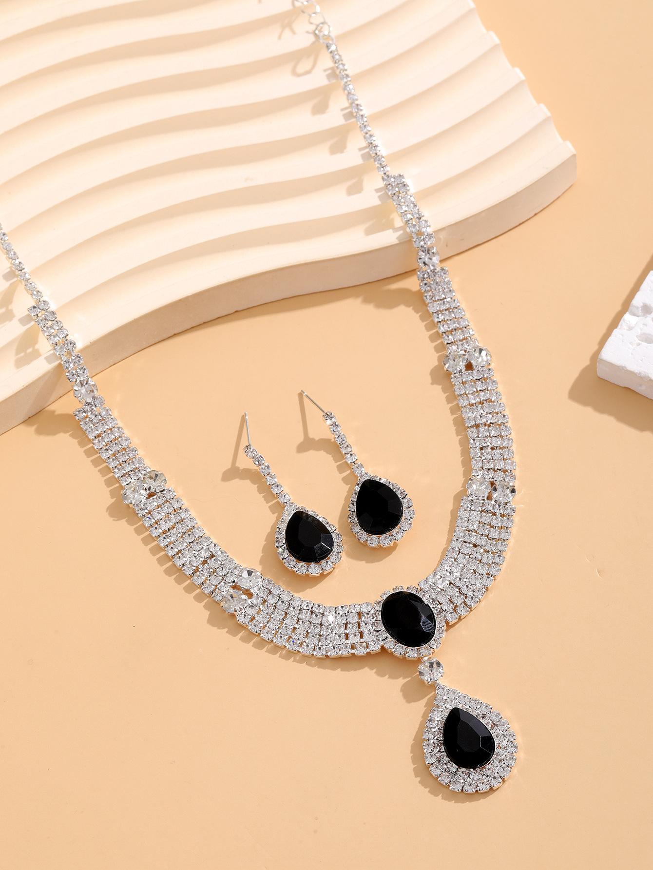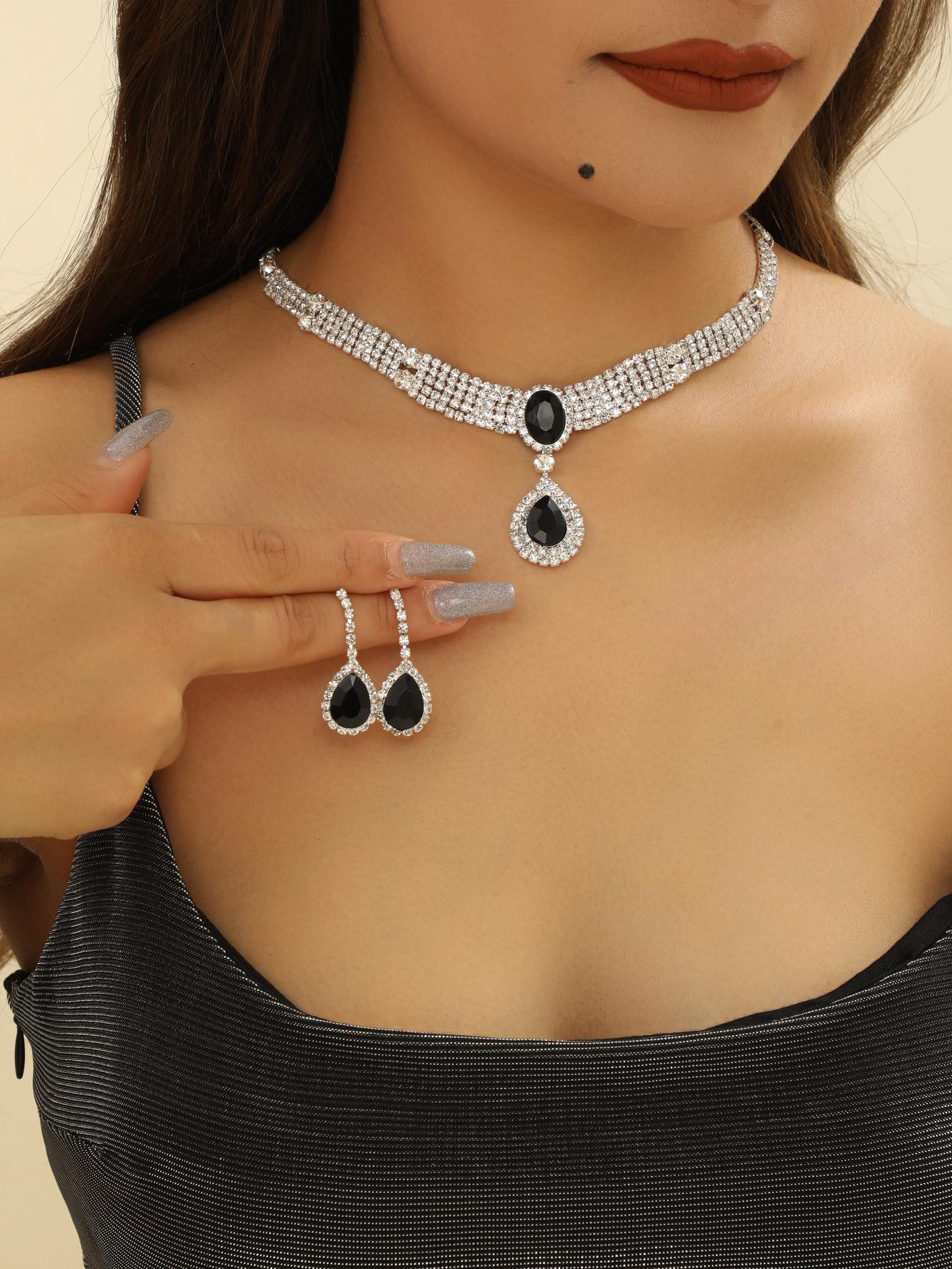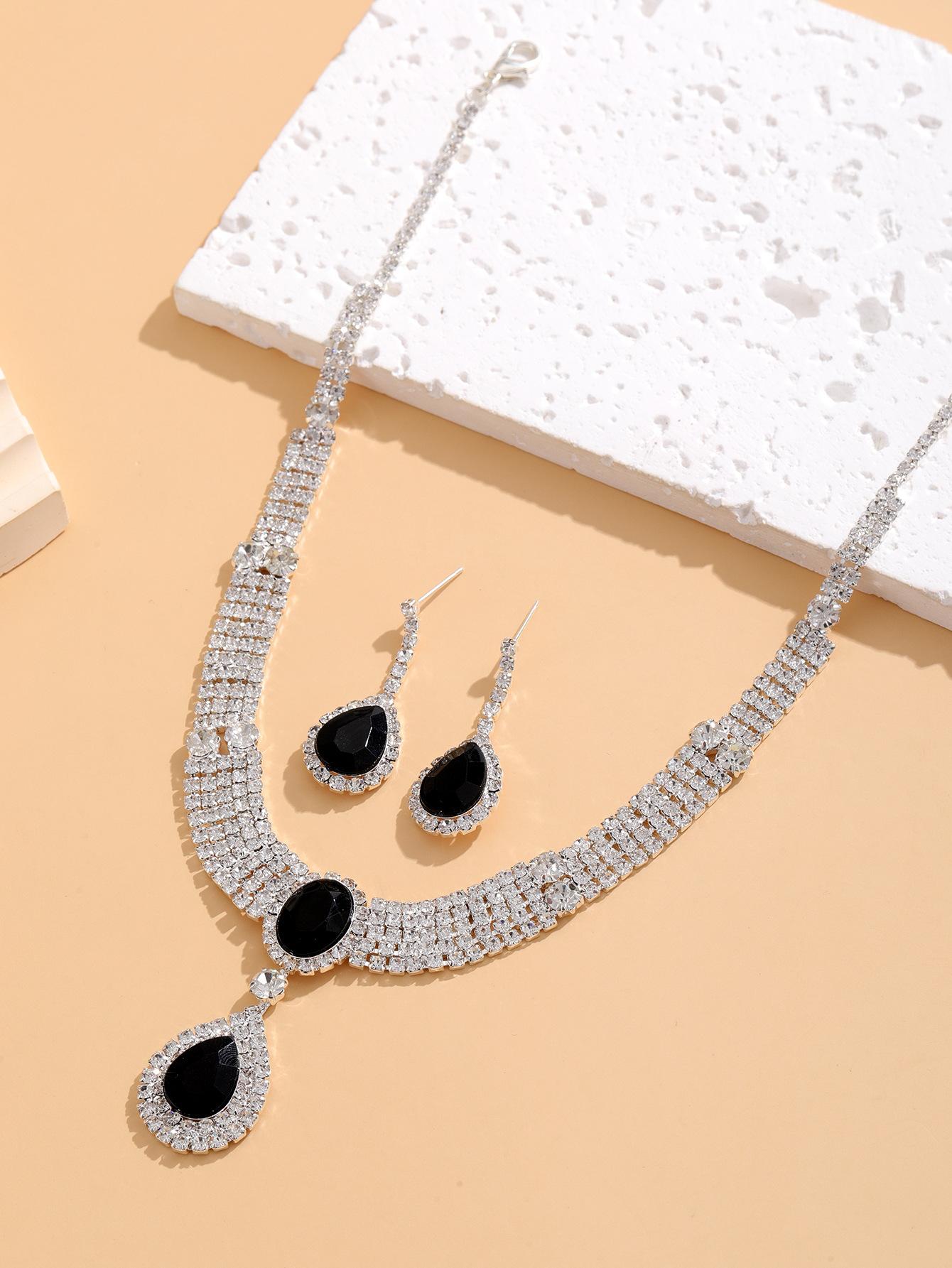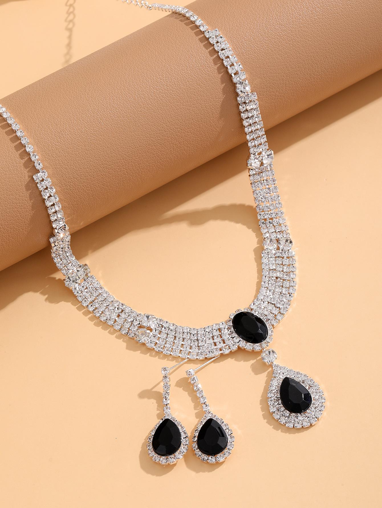 Conjunto de 2 joyas de moda para Europa y Estados Unidos, venta al por mayor, comercio exterior transfronterizo, collar y pendientes con gemas multicolores