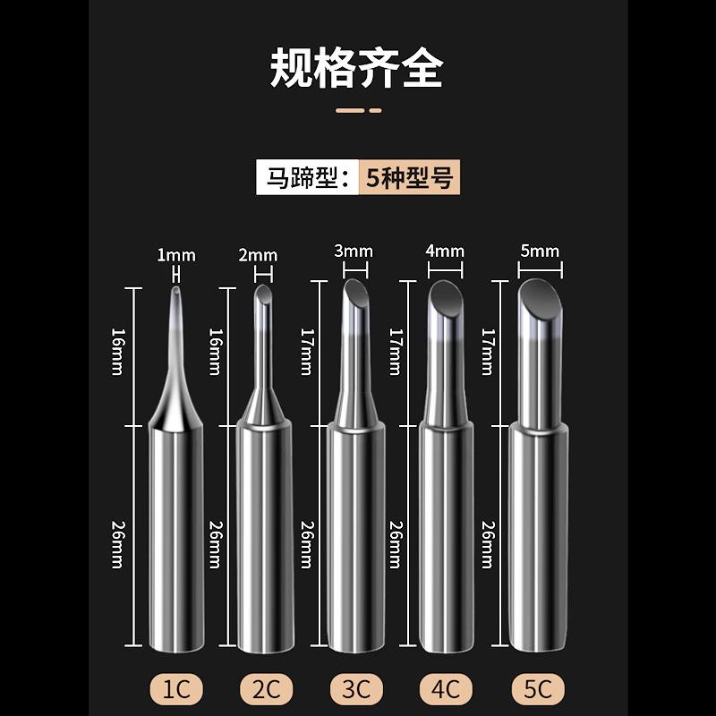 El diámetro de la punta del herradura frontal es de aproximadamente 0.8MM, la longitud total de la punta del soldador es de aproximadamente 42MM, el diámetro de la cola es de aproximadamente 6.5MM y el orificio es de aproximadamente 4.05MM