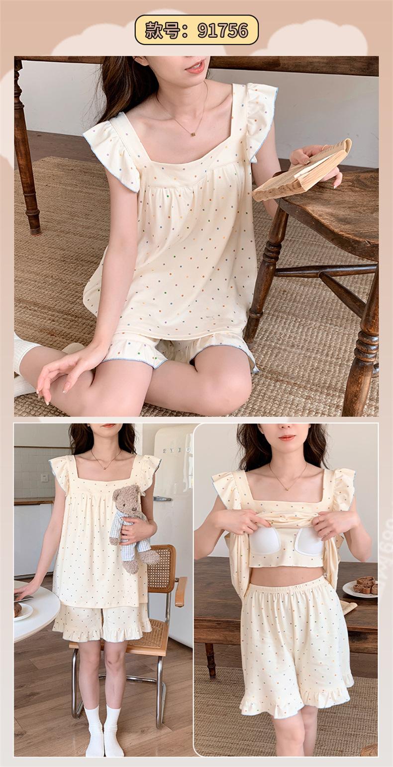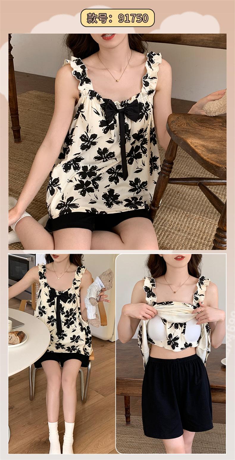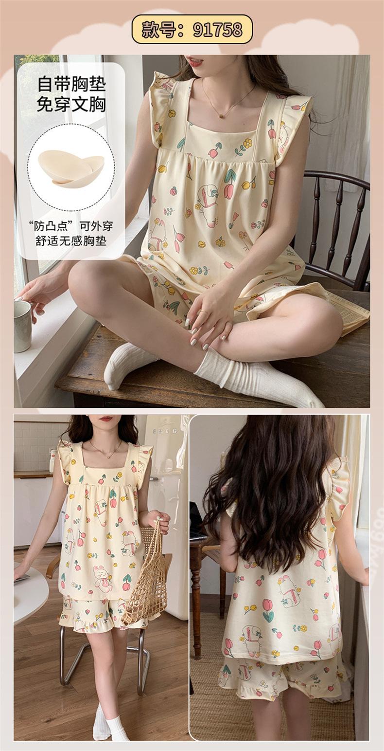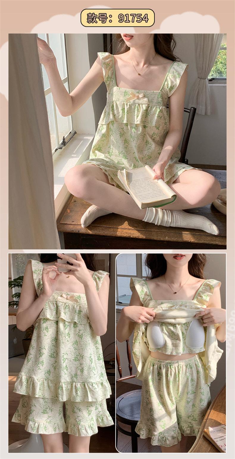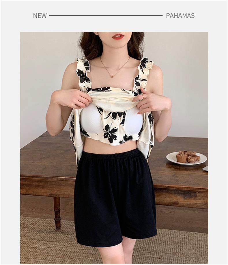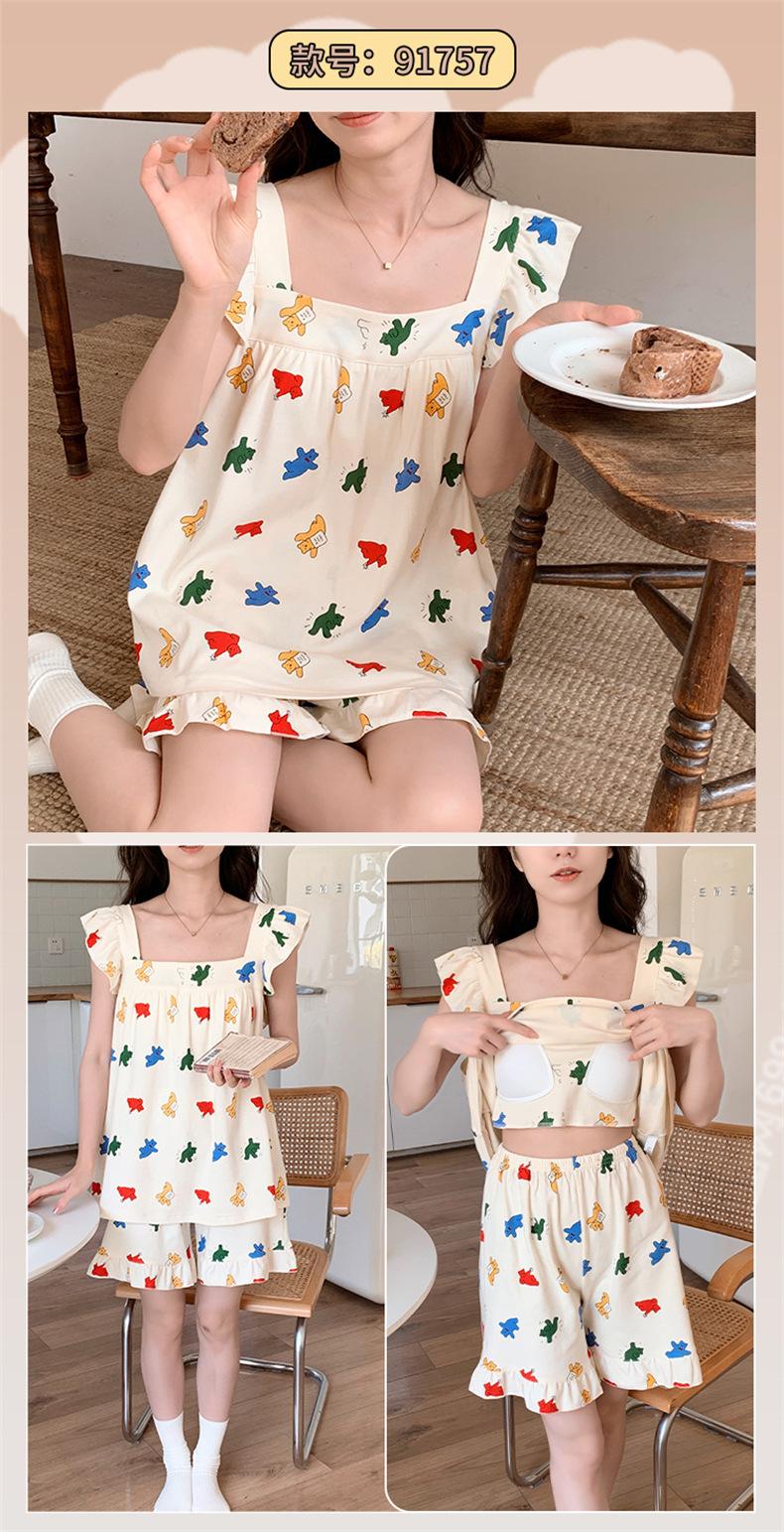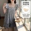 Pijama de algodón cómodo con almohadilla para el pecho, novedad de verano 2024, chaleco de mujer, pantalones cortos casuales, ropa para el hogar, ropa para exteriores