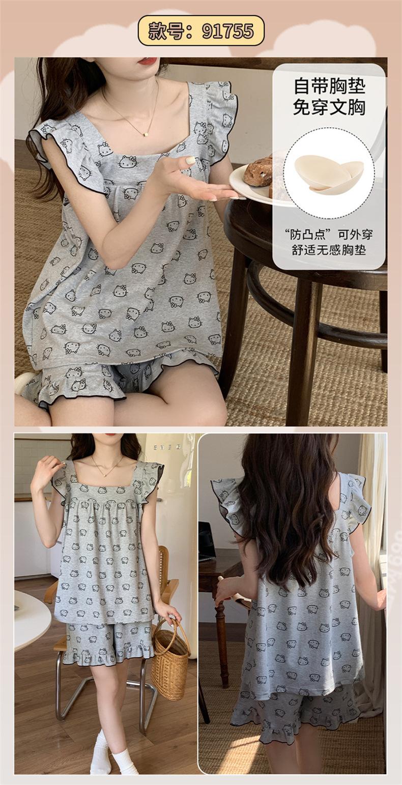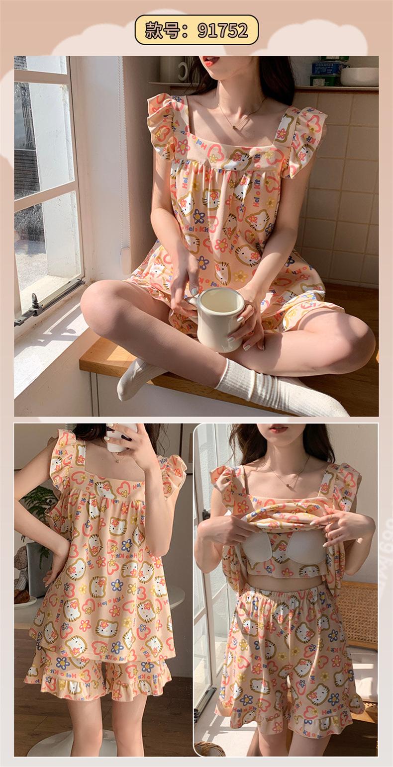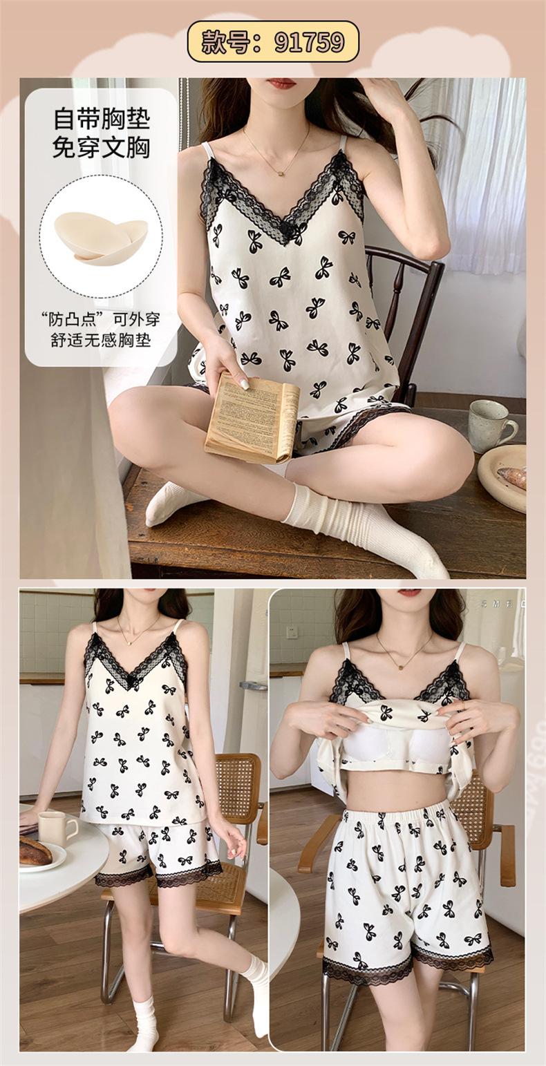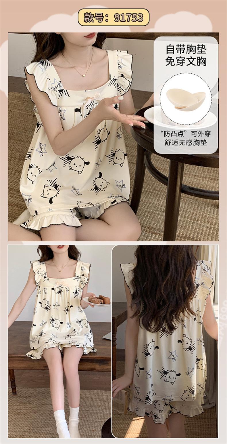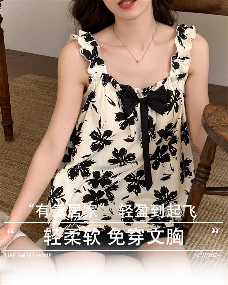 Pijama de algodón cómodo con almohadilla para el pecho, novedad de verano 2024, chaleco de mujer, pantalones cortos casuales, ropa para el hogar, ropa para exteriores