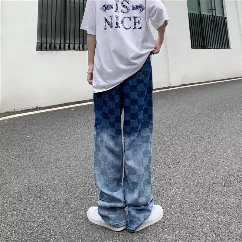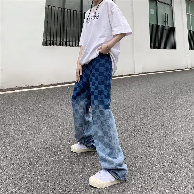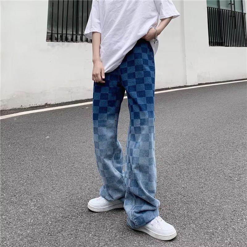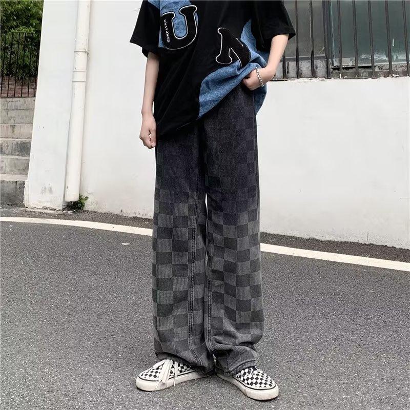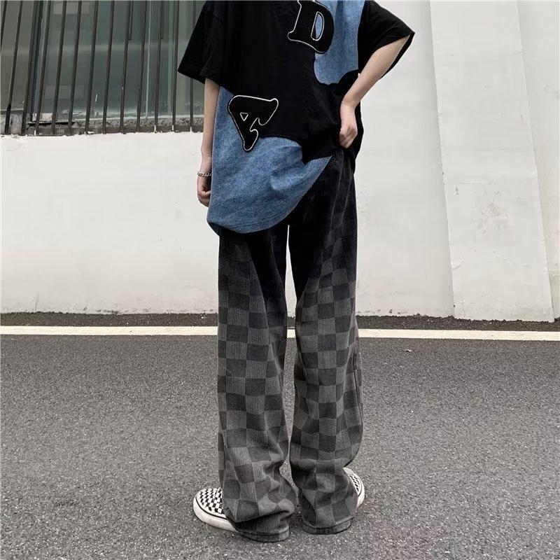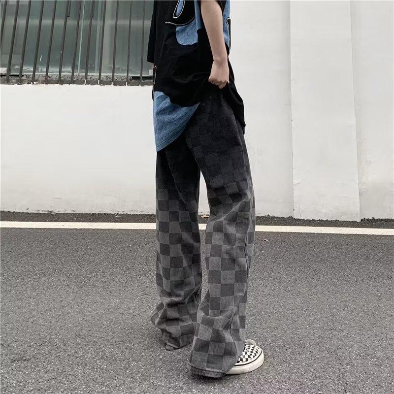 Pantalones de estilo europeo y americano con diseño oversize y estampado de cuadros en degradado, ideales para la calle principal de los hombres.