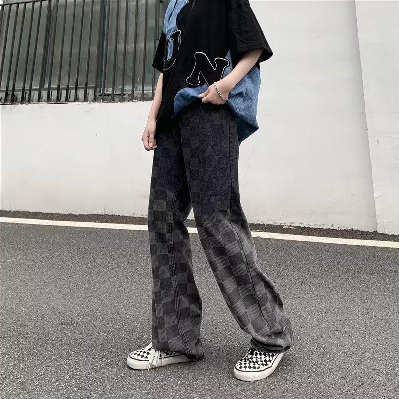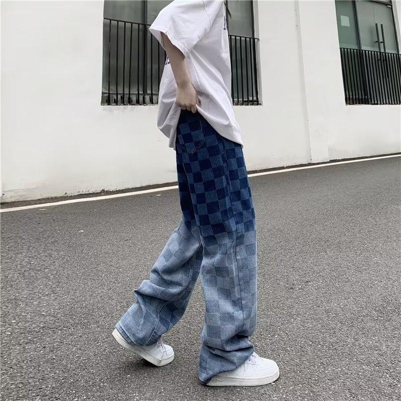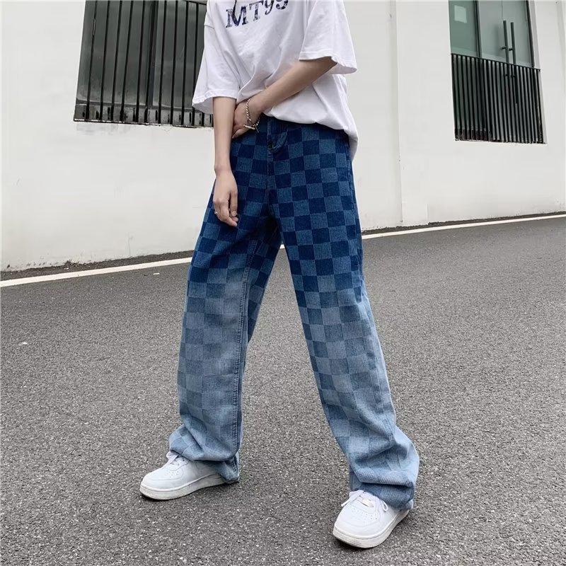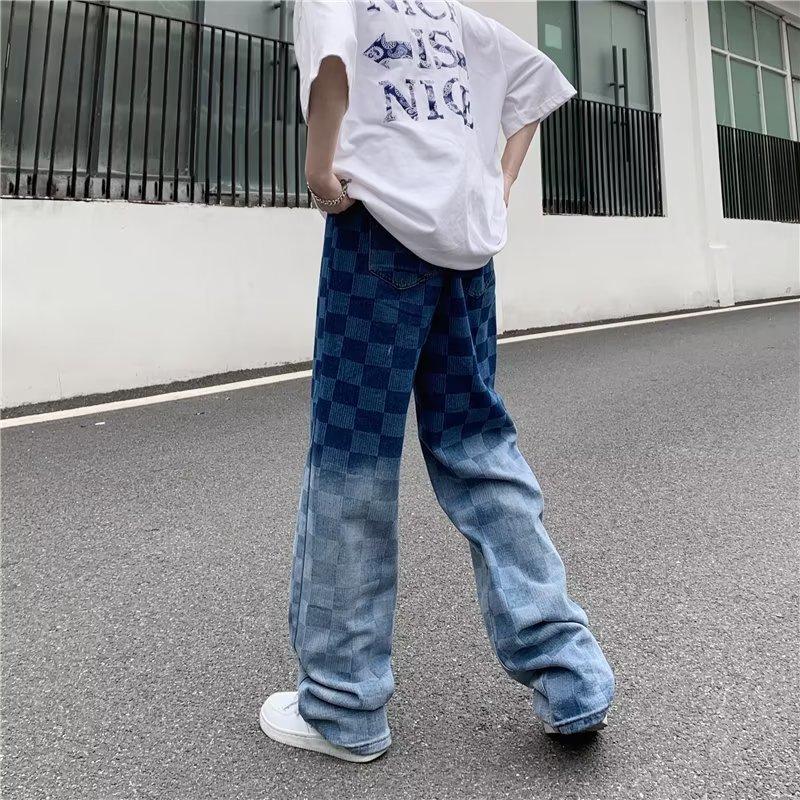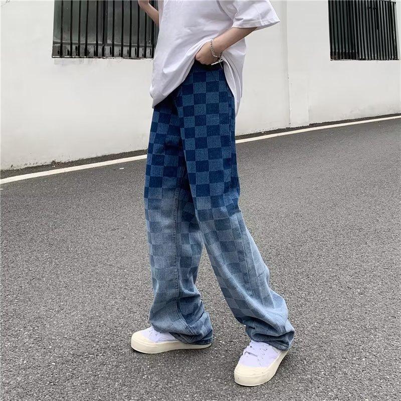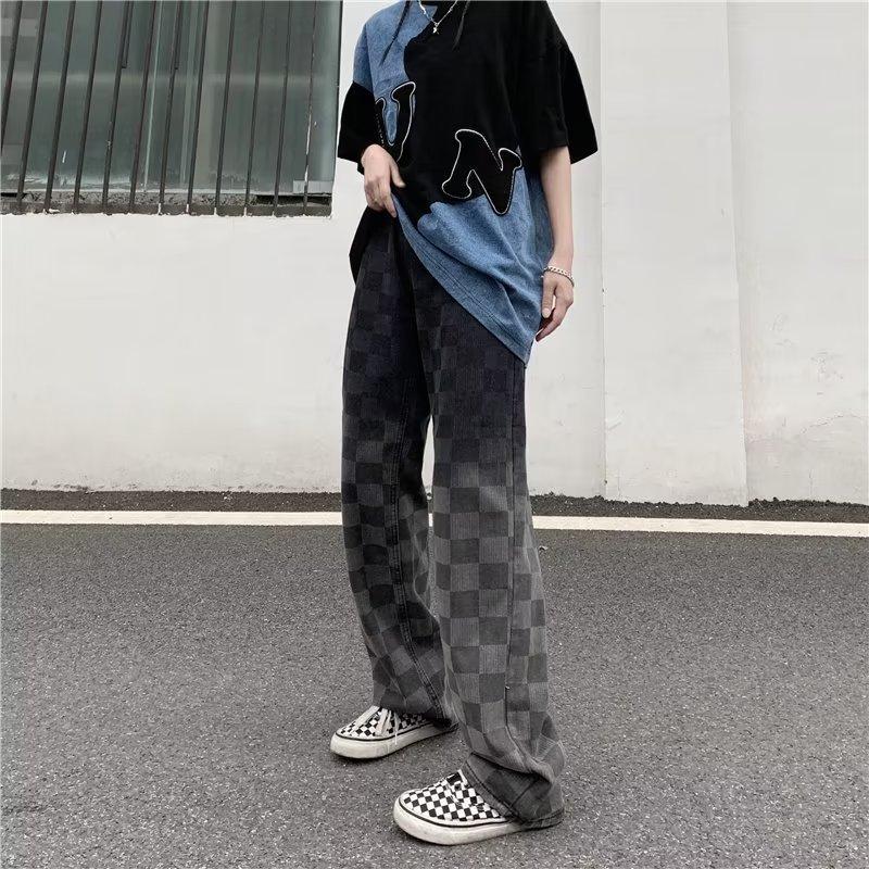 Pantalones de estilo europeo y americano con diseño oversize y estampado de cuadros en degradado, ideales para la calle principal de los hombres.