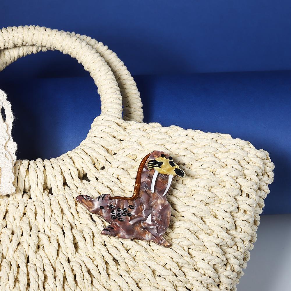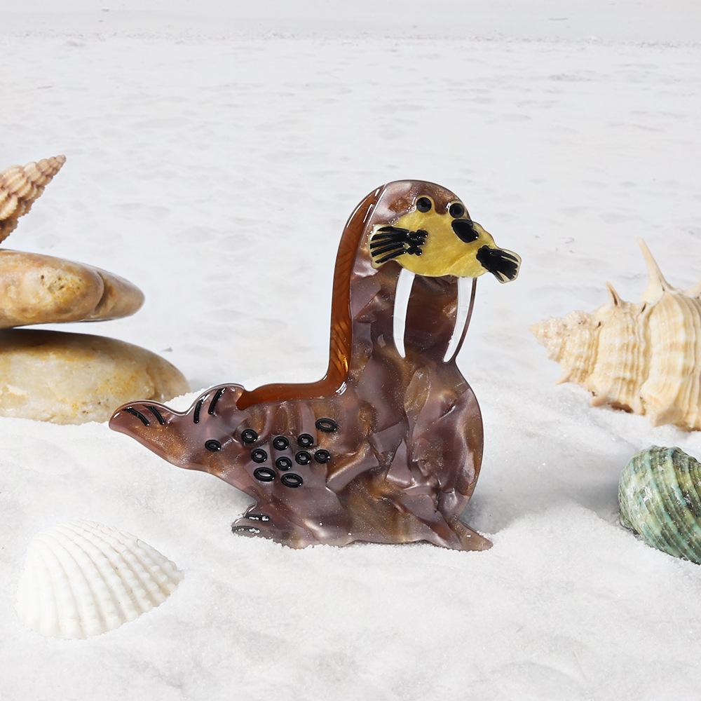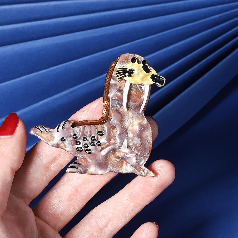 Broche de acrílico con forma de animal, joyería de moda hecha a mano transfronteriza, pin de dibujos animados de león marino, accesorios populares para bolsos y prendas de vestir de Europa y América.