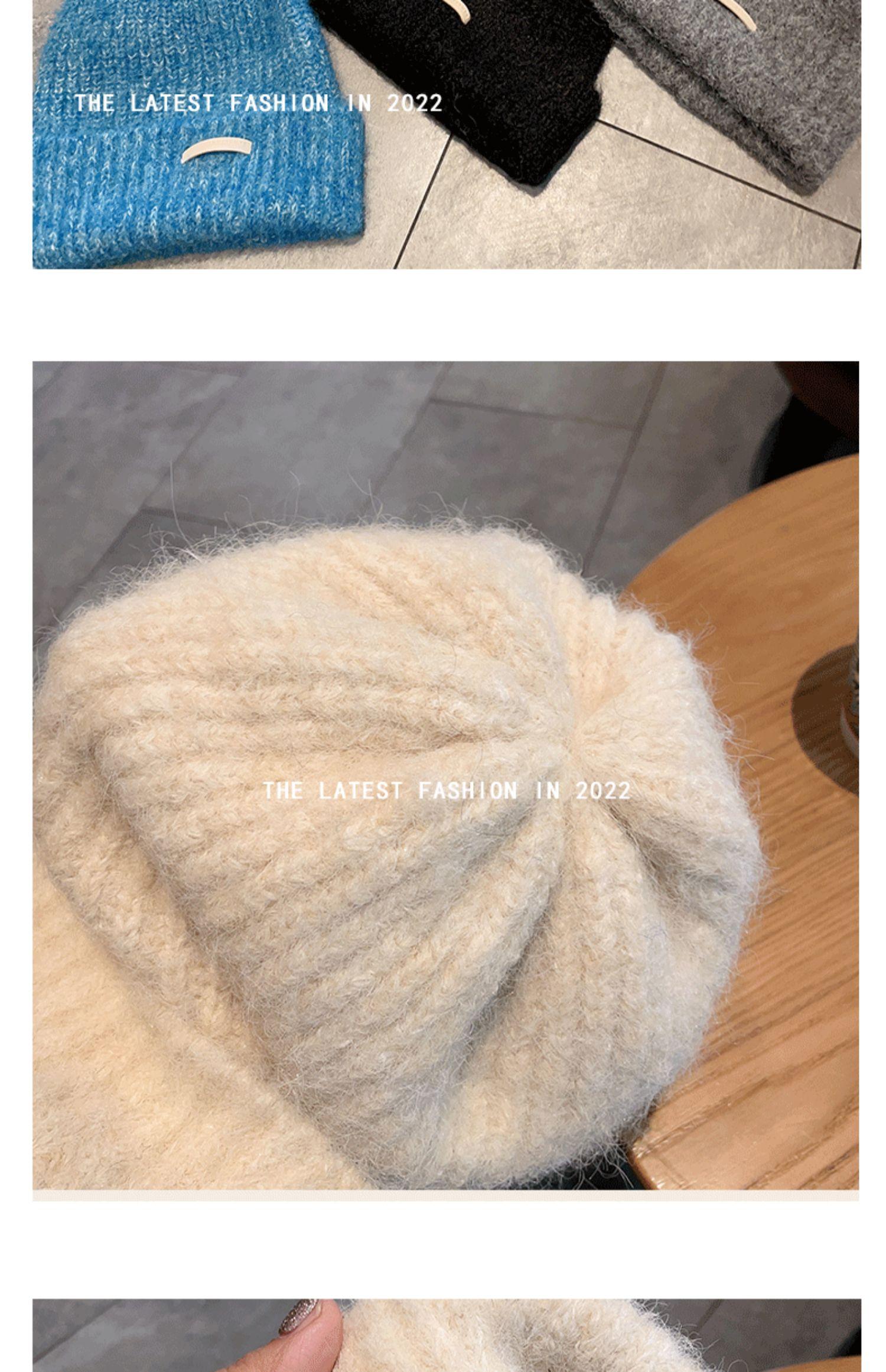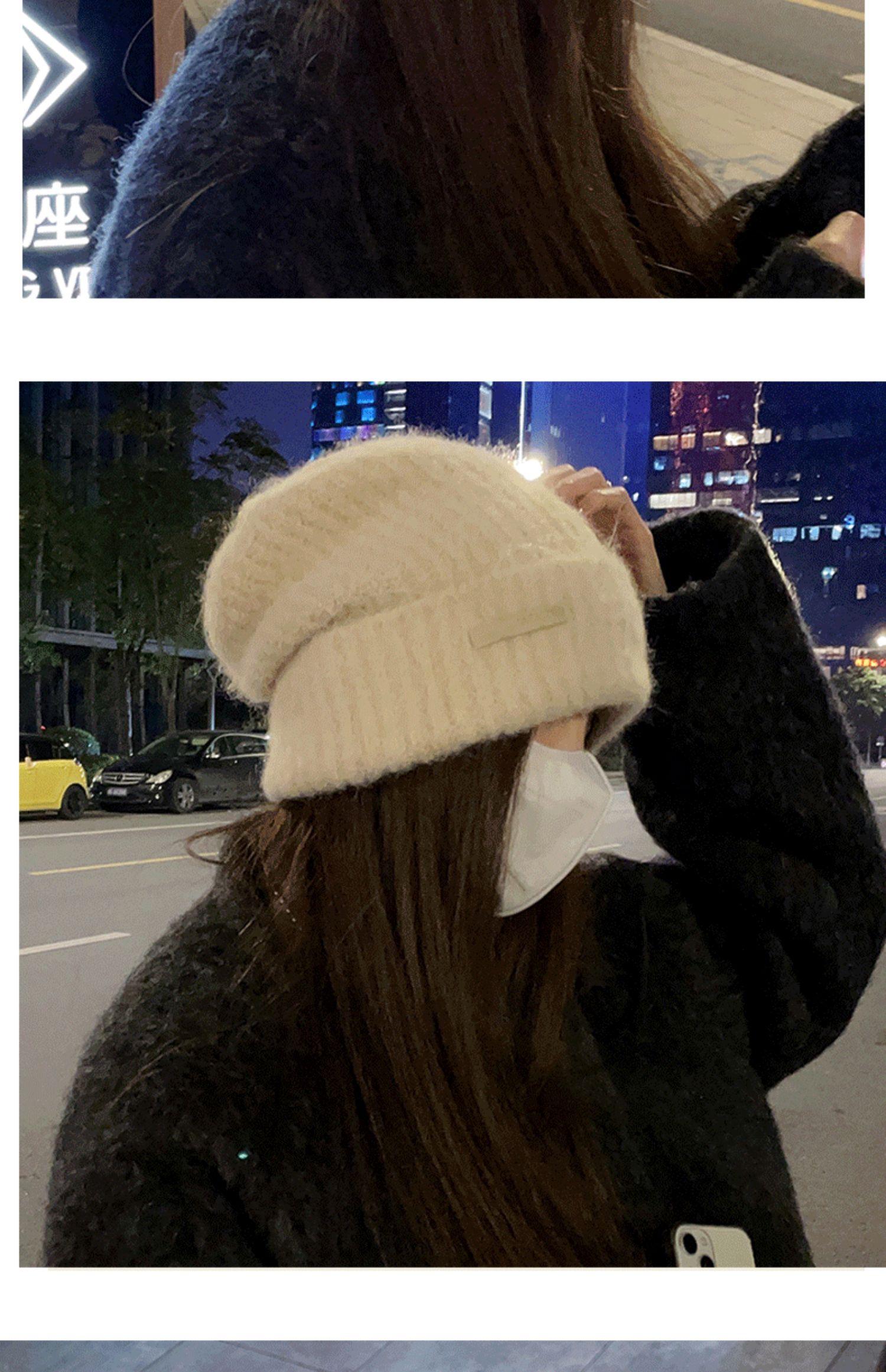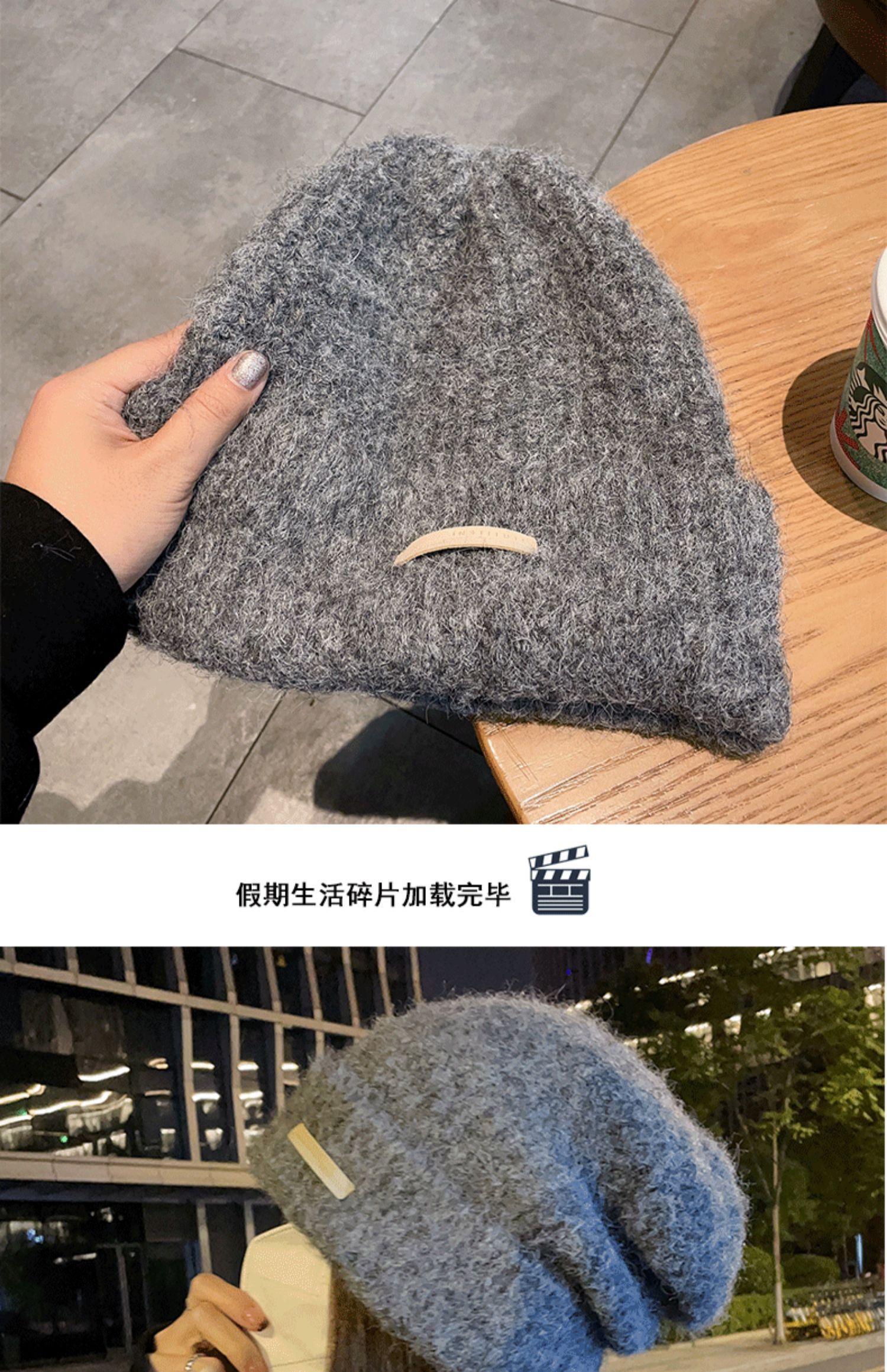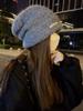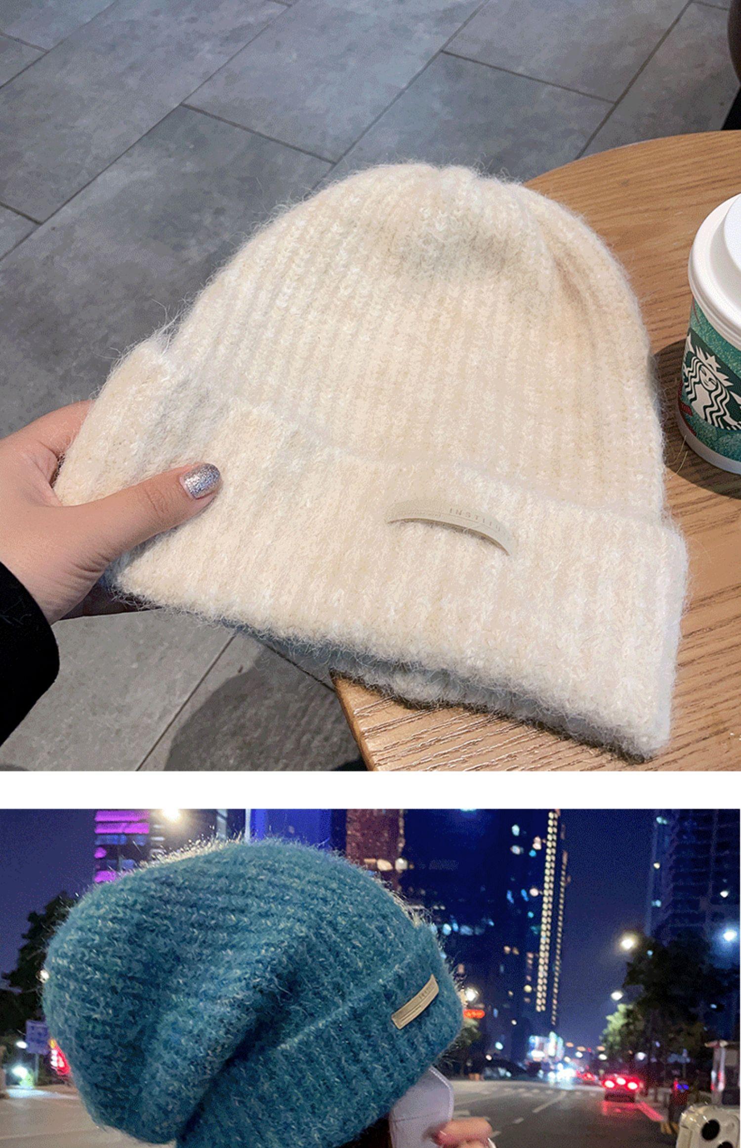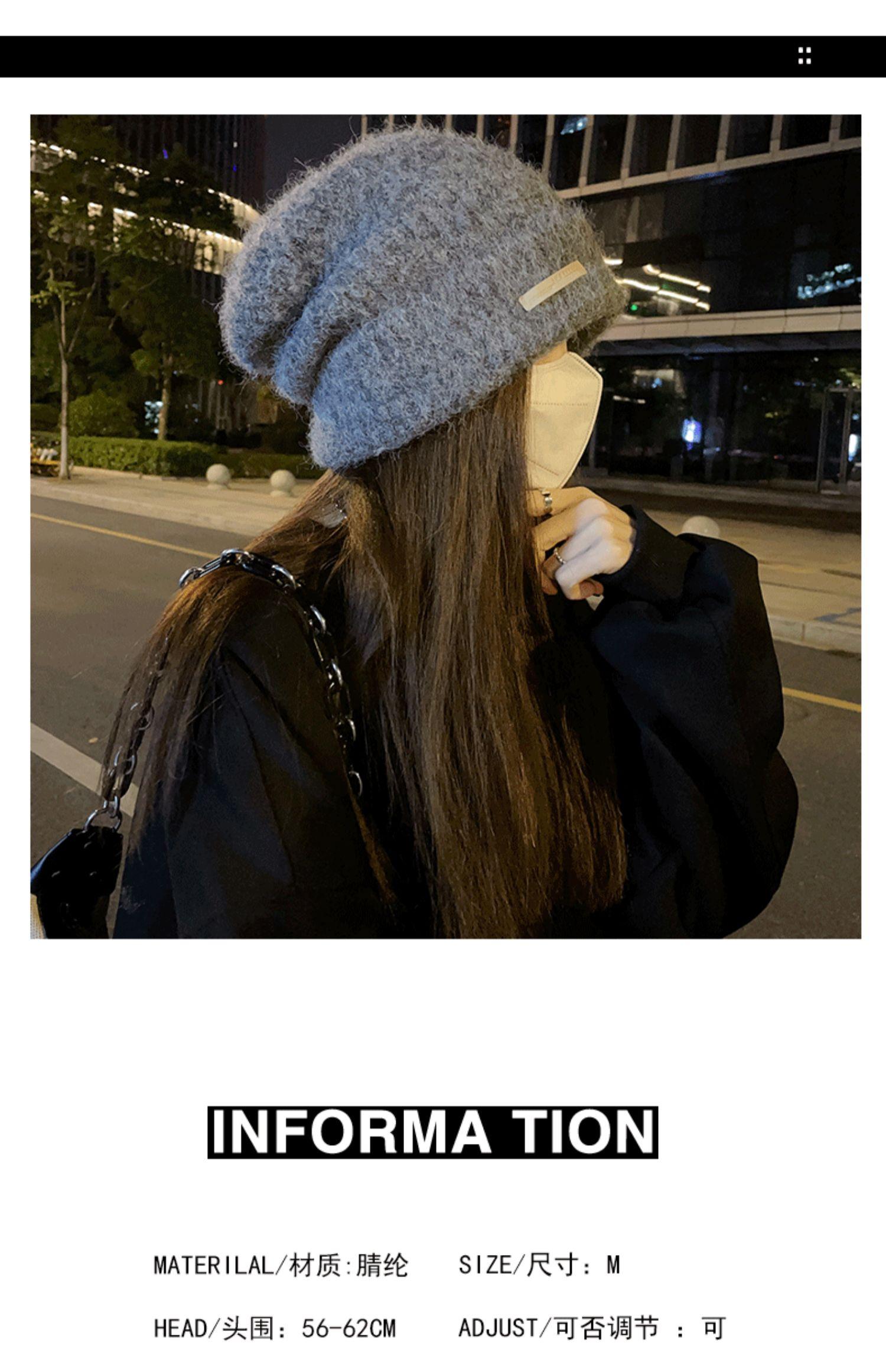 Gorro de lana para mujer, gorro de lana de punto, holgado, para circunferencia de cabeza grande, cara pequeña, otoño e invierno, cálido, sombrero de moda coreana