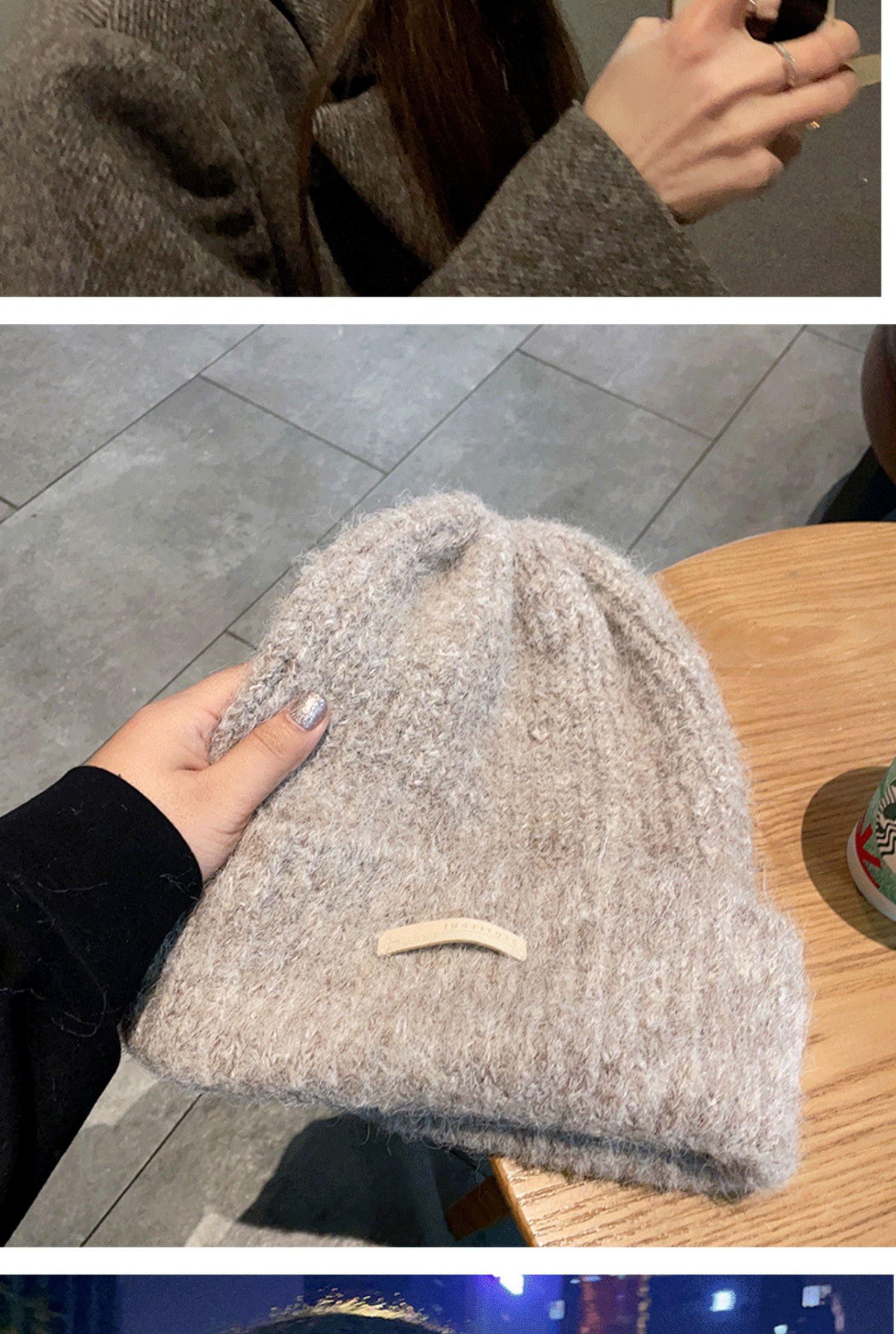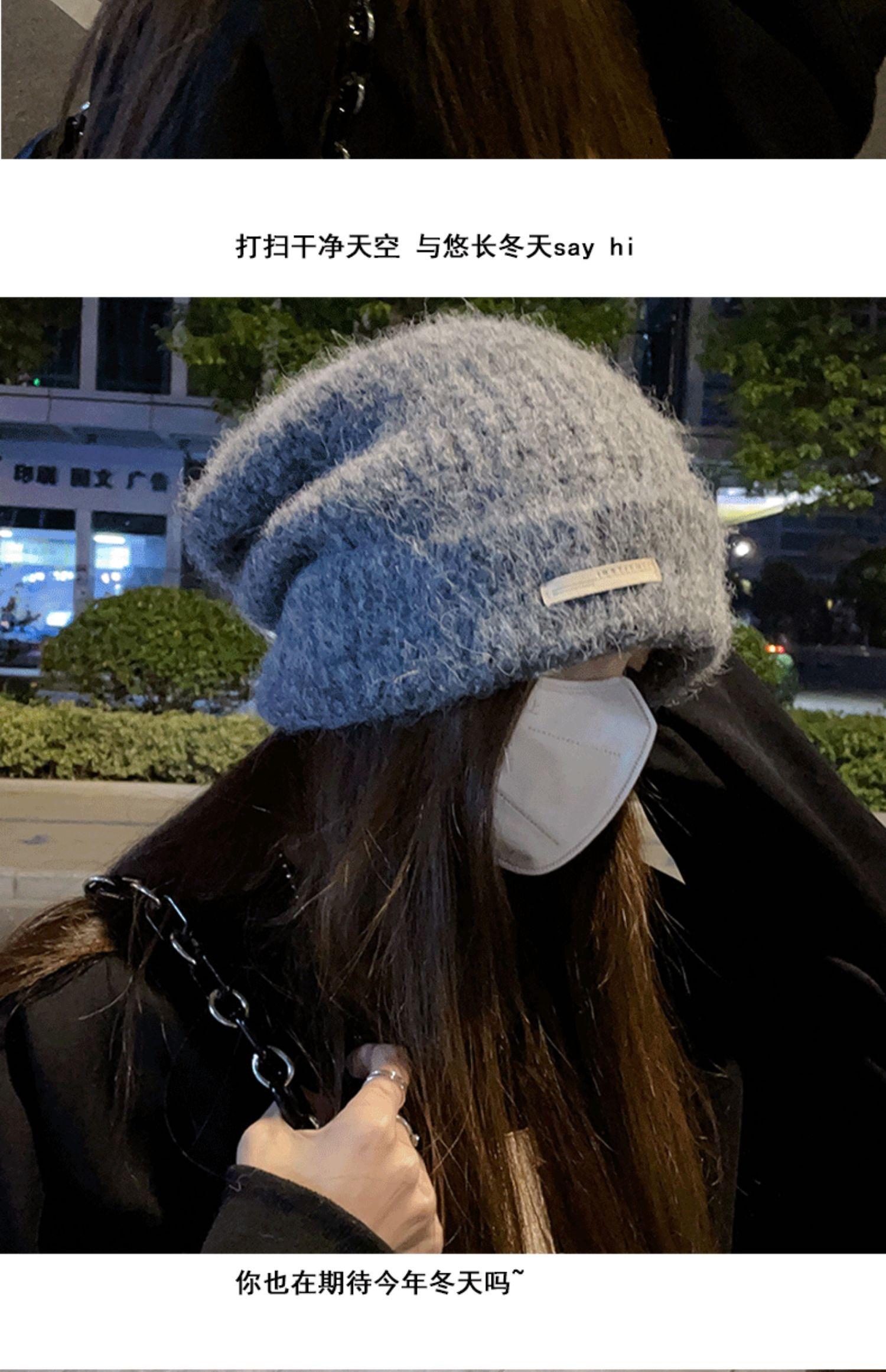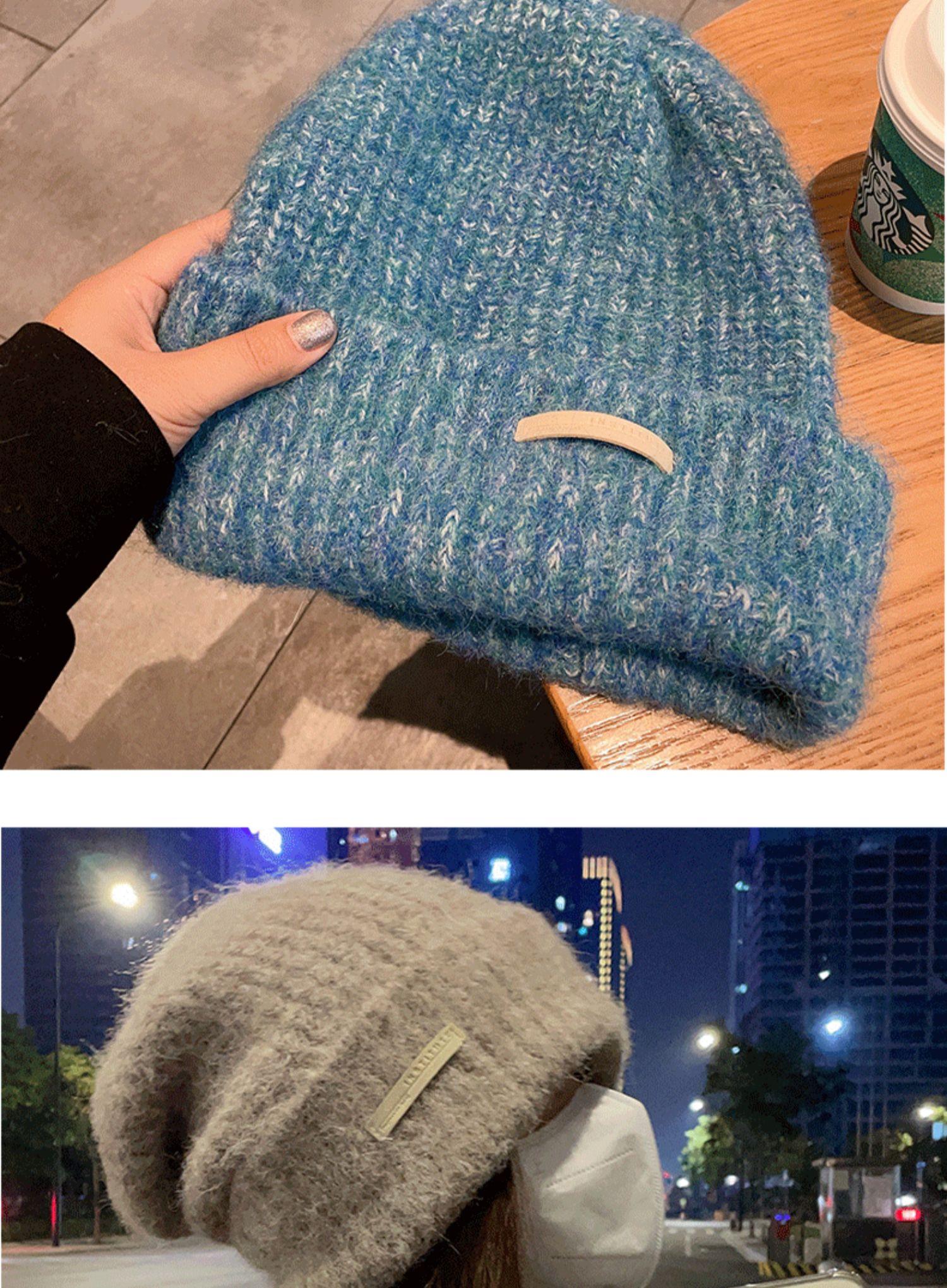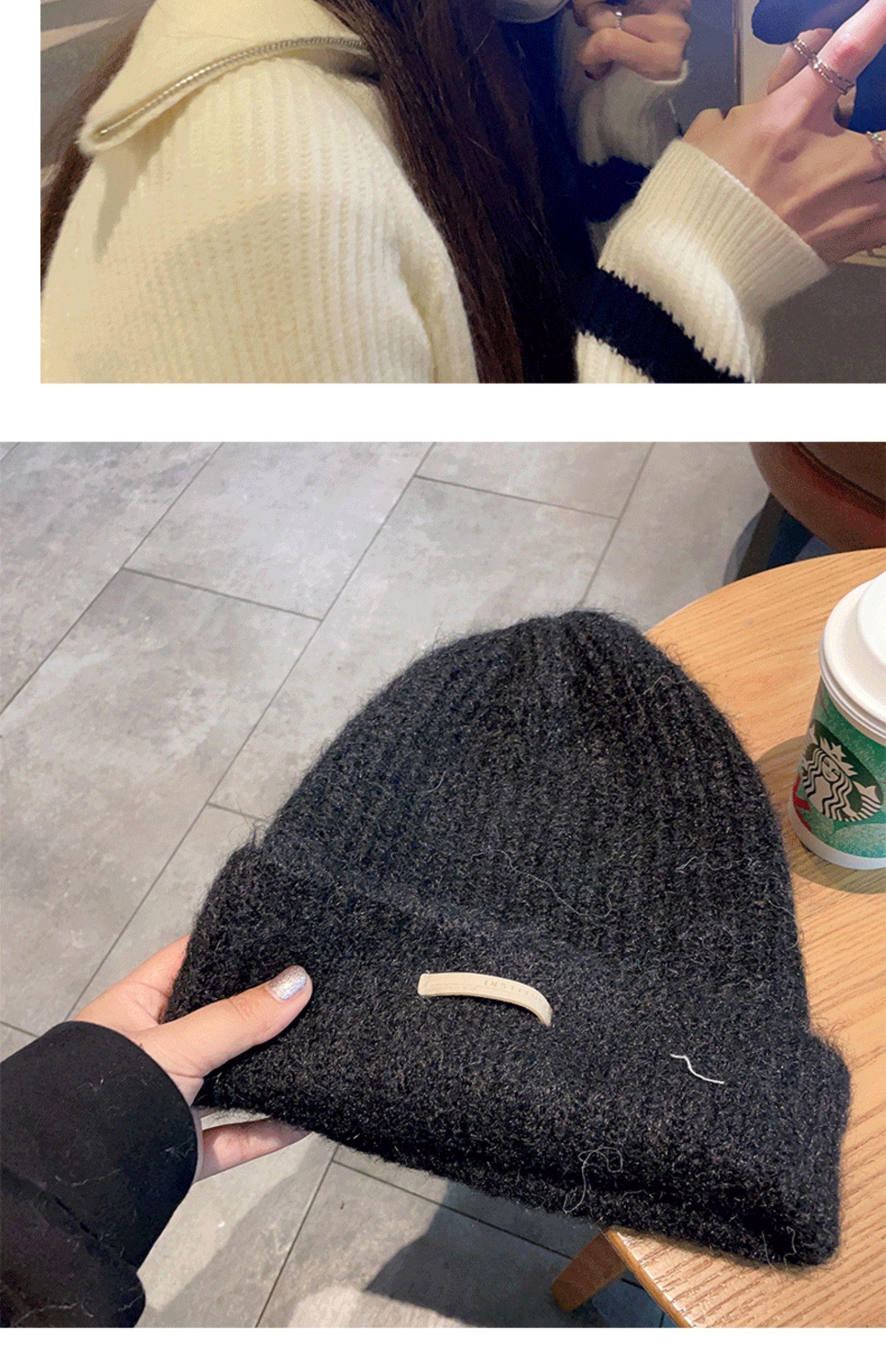 Gorro de lana para mujer, gorro de lana de punto, holgado, para circunferencia de cabeza grande, cara pequeña, otoño e invierno, cálido, sombrero de moda coreana