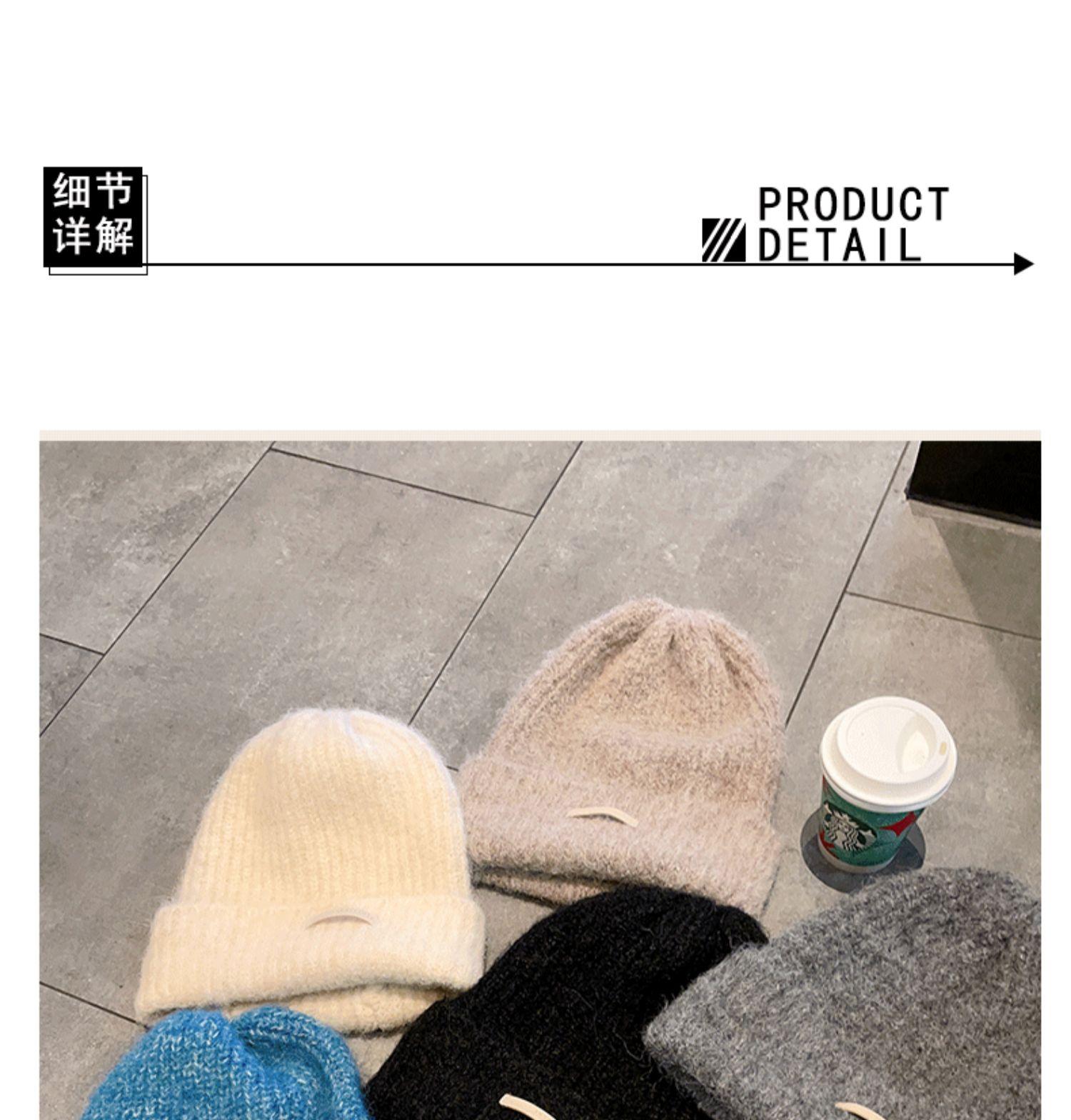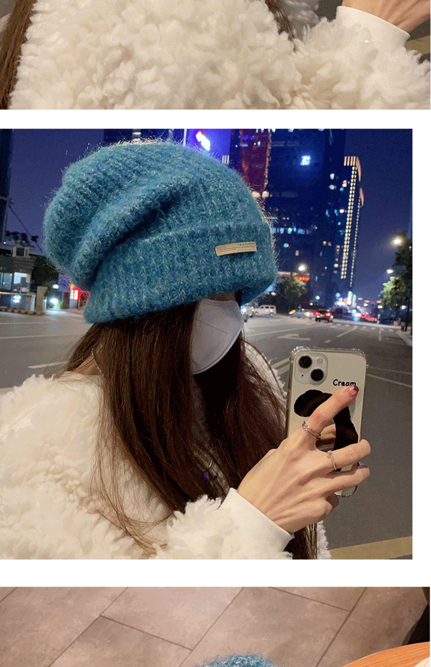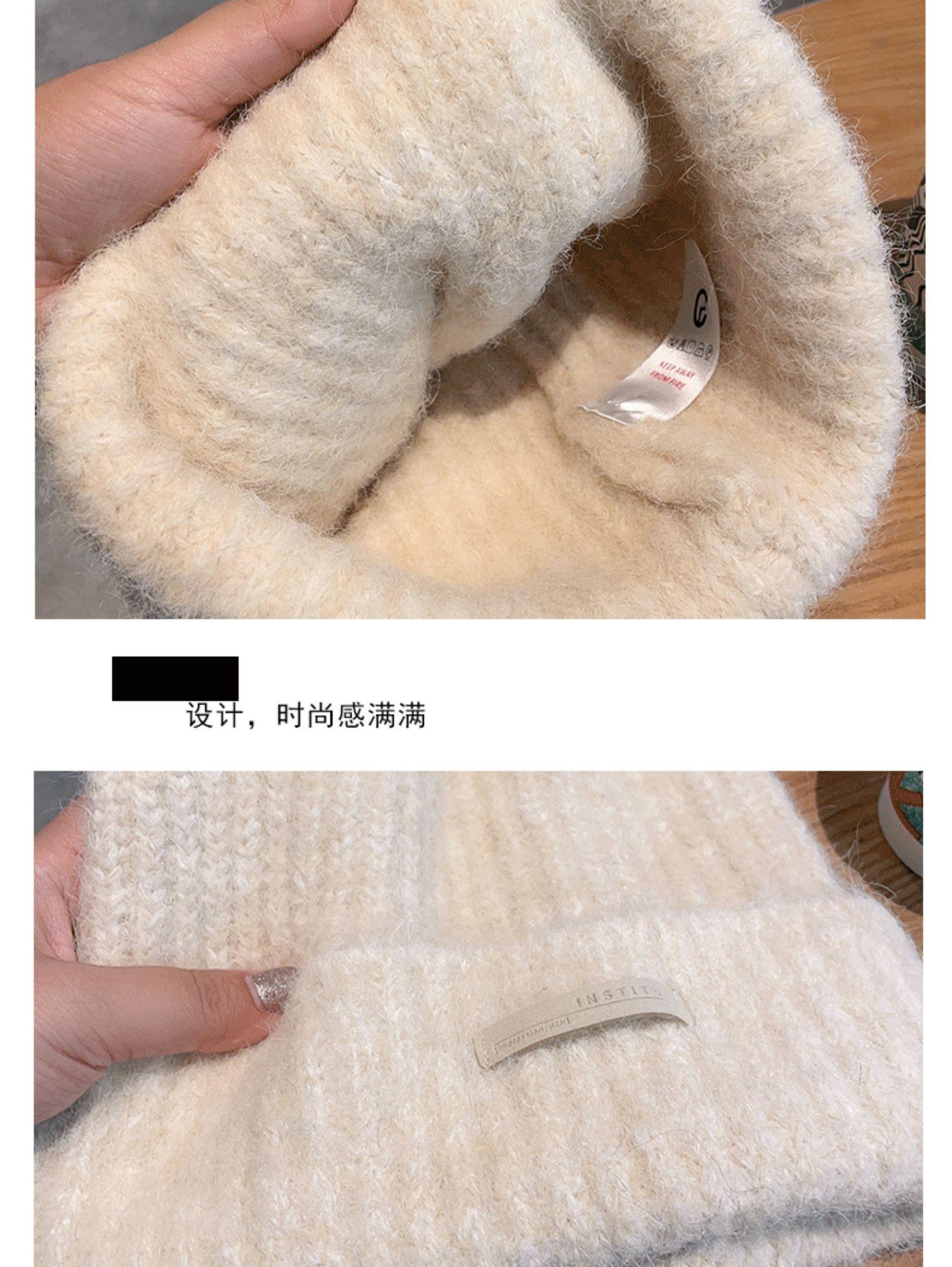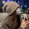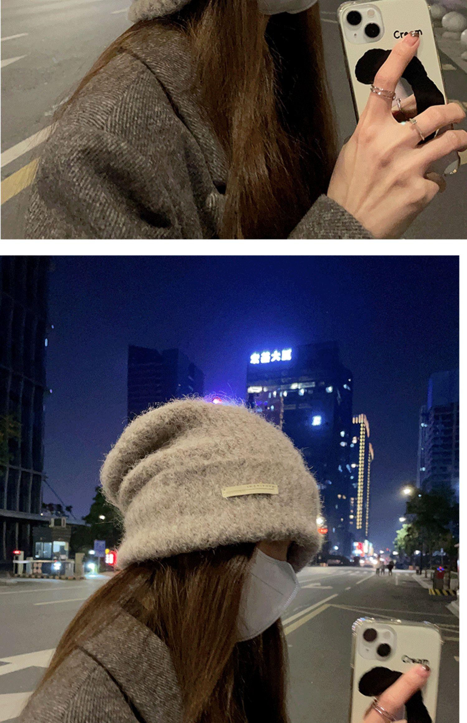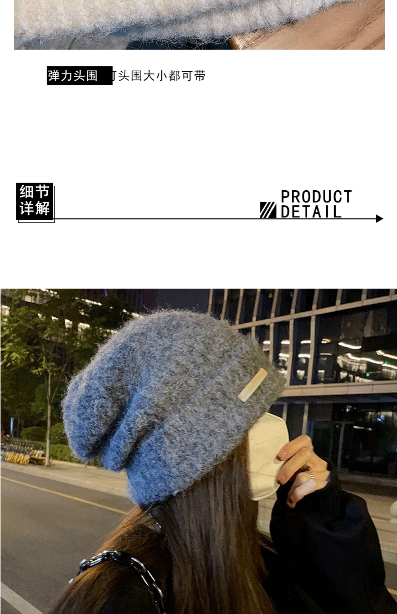 Gorro de lana para mujer, gorro de lana de punto, holgado, para circunferencia de cabeza grande, cara pequeña, otoño e invierno, cálido, sombrero de moda coreana