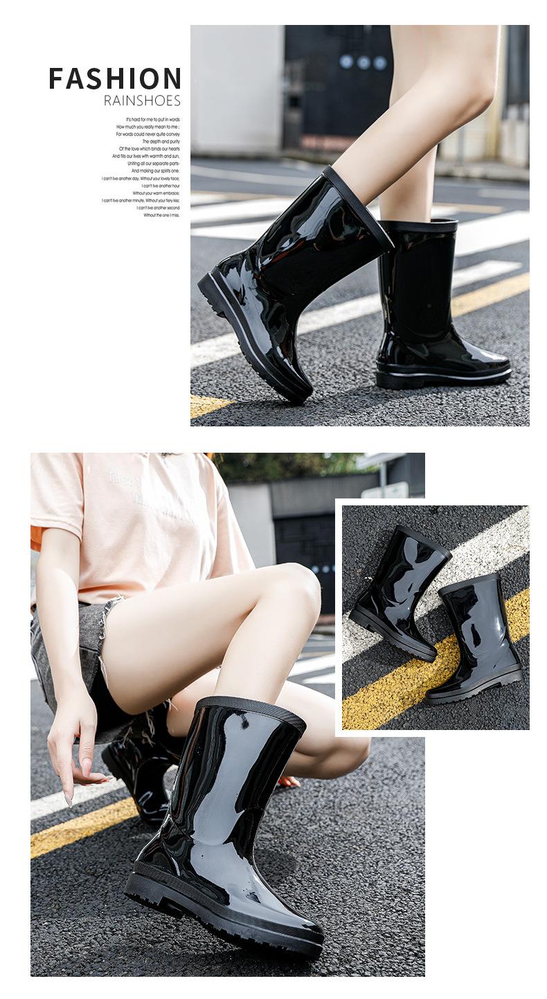 Zapatos de lluvia de caña media, de tendencia de moda, para mujer, antideslizantes, de caña baja, impermeables, botas de lluvia, botas de agua, botas de lluvia para mujer, zapatos de goma para cocina y lavado de autos.
