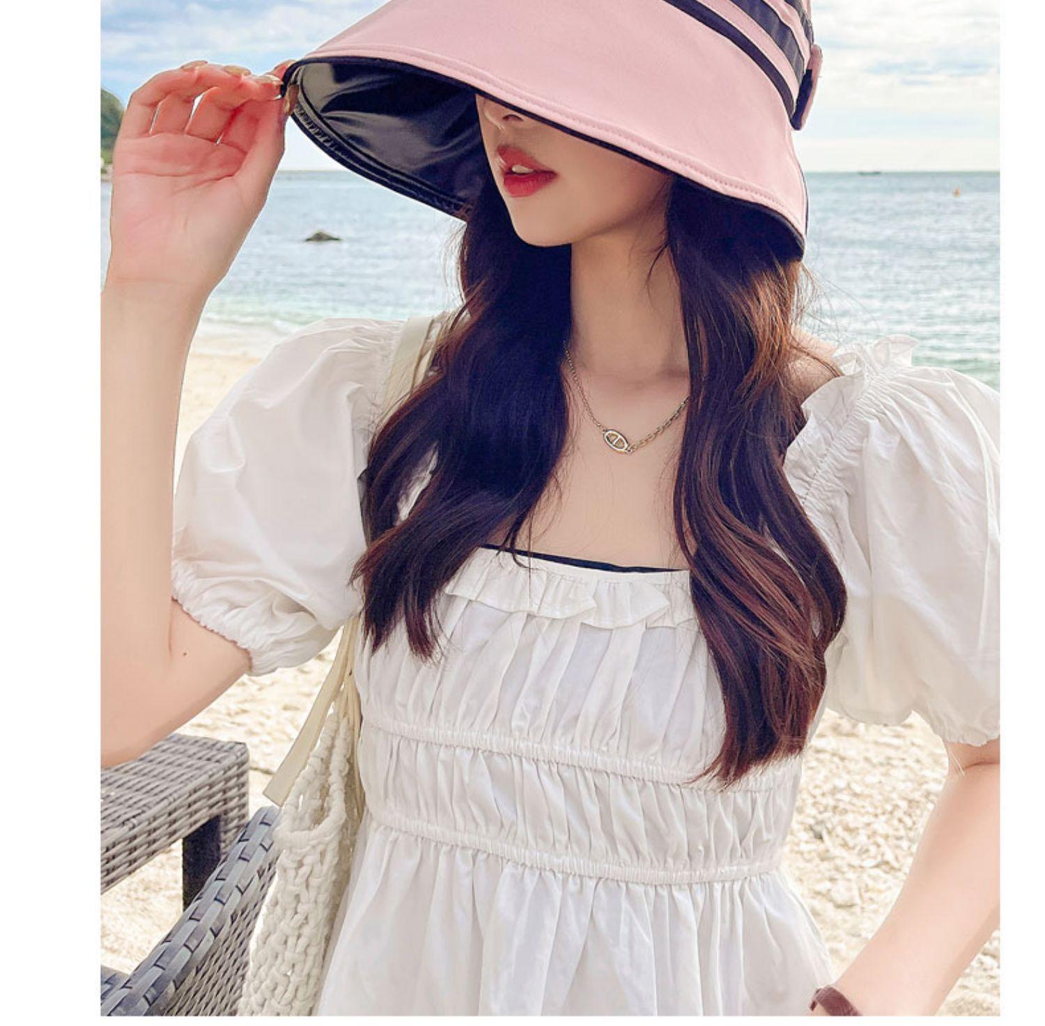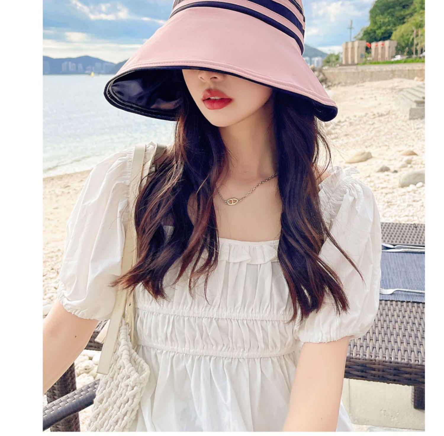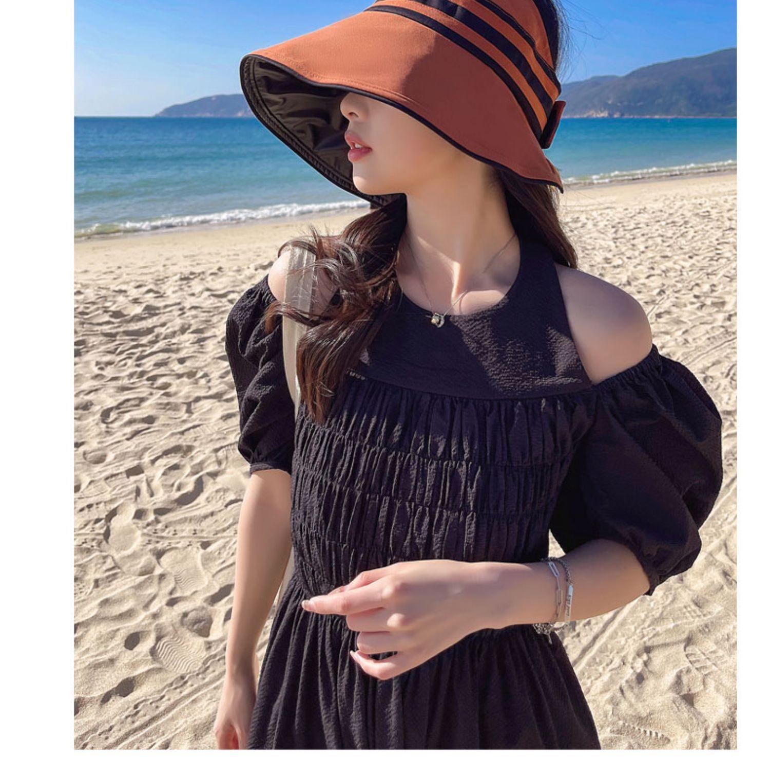 Gorra de protección solar de goma negra para niños, de verano, antiultravioleta, con alero superior vacío, plegable, para ciclismo