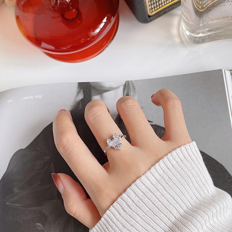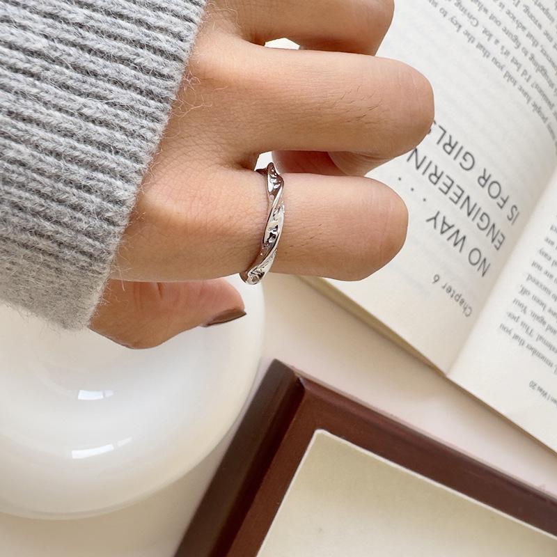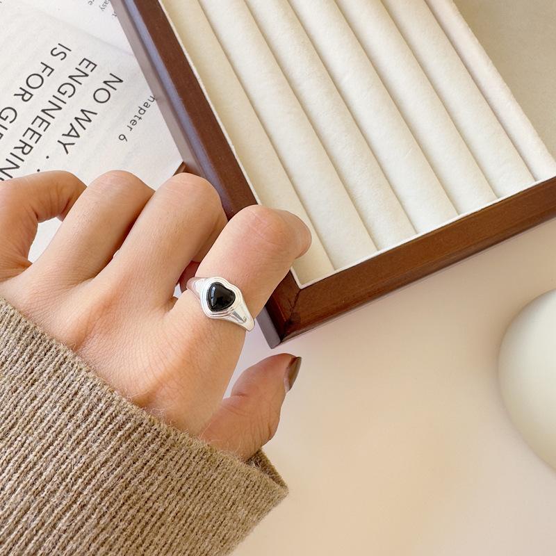 Anillo Abierto Versátil para Mujer, Anillo de Moda y Único Elástico Corazón Roto Plata S925 Chapado, Anillo de Dedo Índice Apilable y Moderno