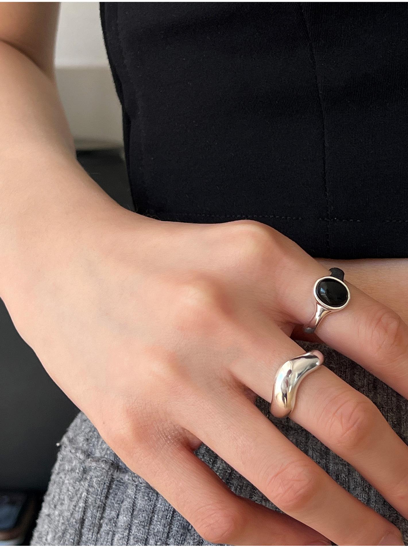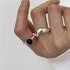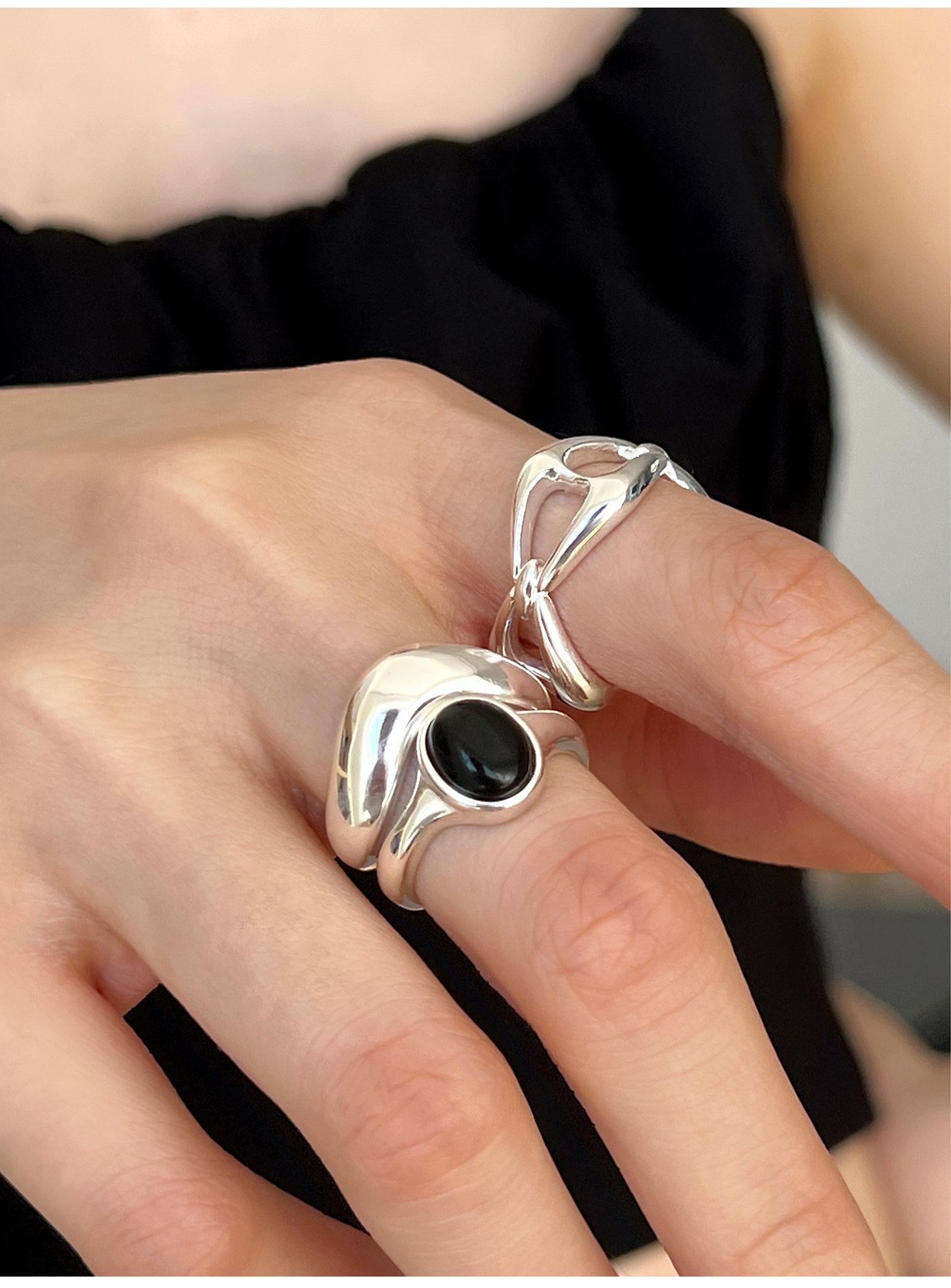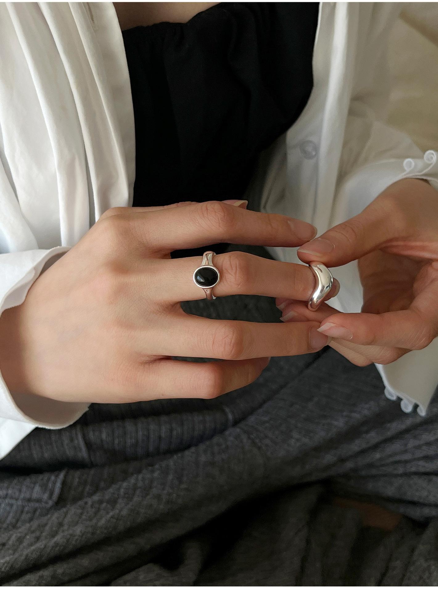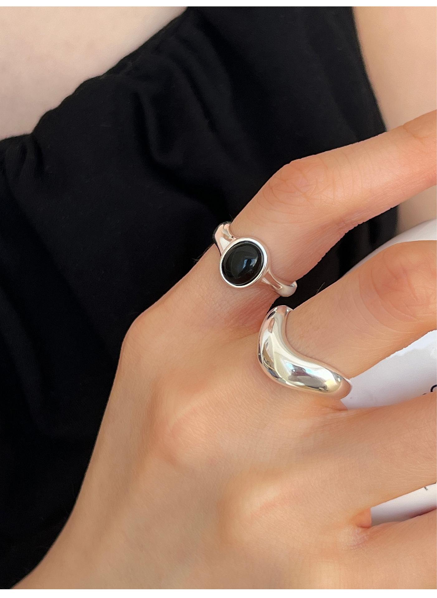 Anillo Ovalado de Zircón Negro para Mujer con Recorte Geométrico Nariz Elegante Anillo Abierto de Plata S925 Apilado Anillo para Dedo Índice