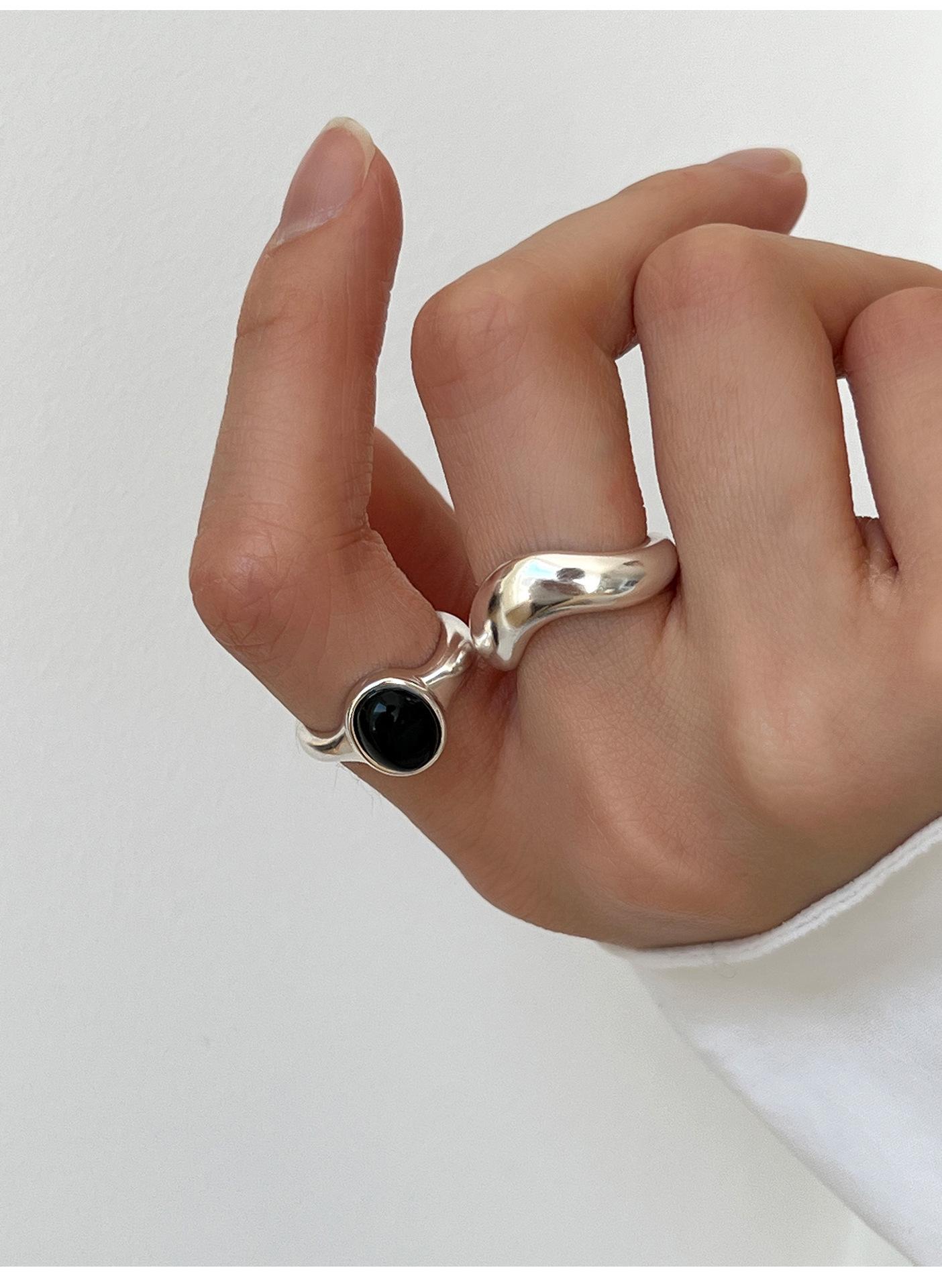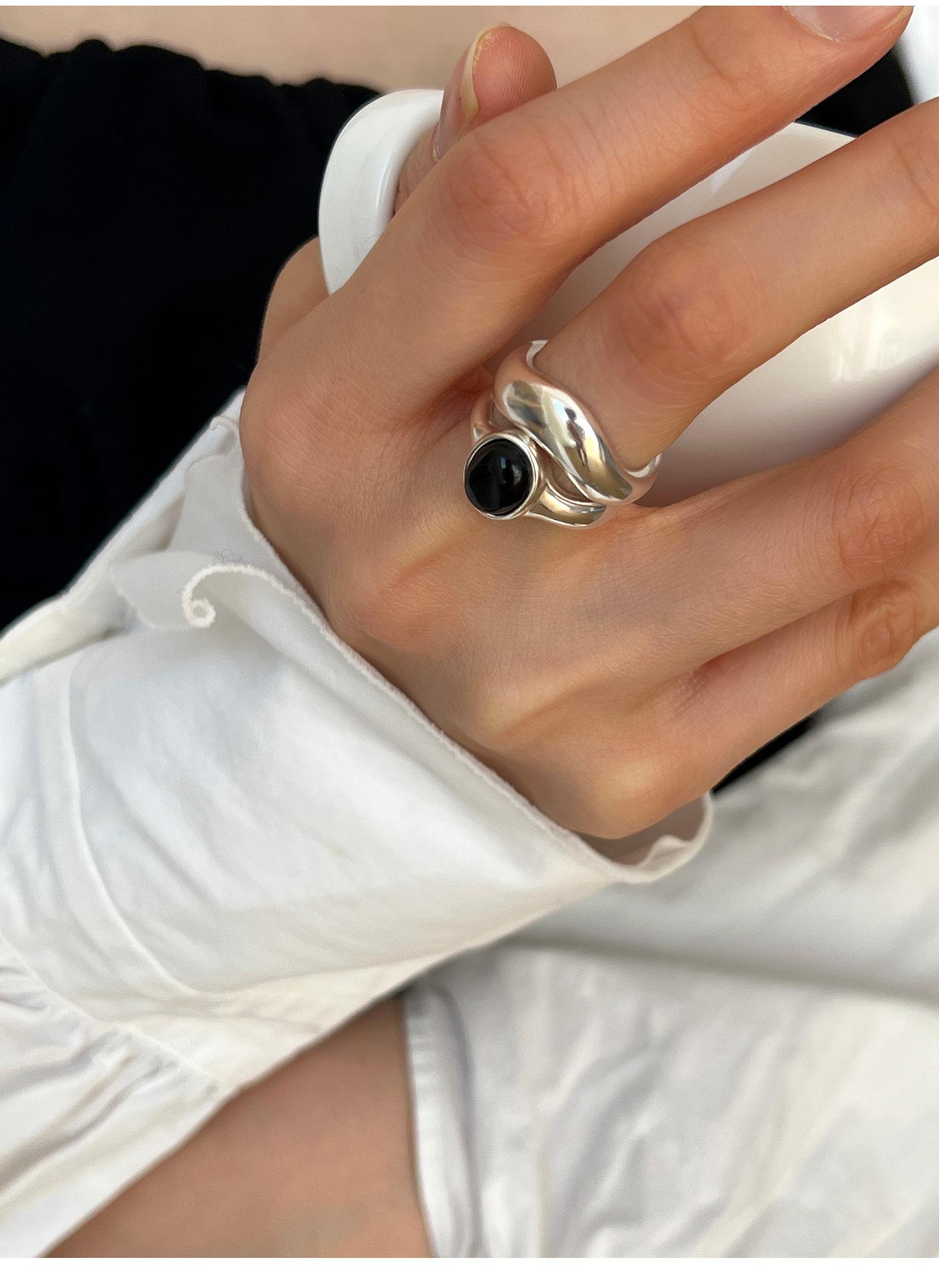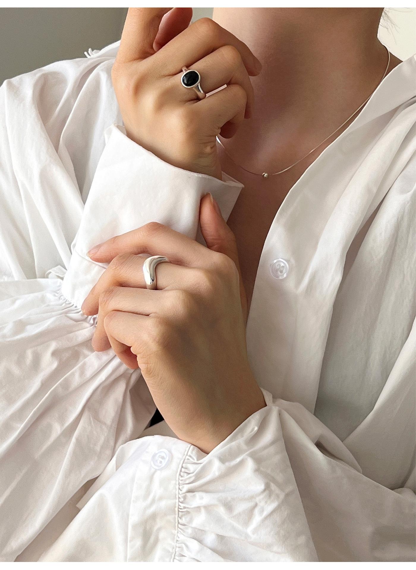 Anillo Ovalado de Zircón Negro para Mujer con Recorte Geométrico Nariz Elegante Anillo Abierto de Plata S925 Apilado Anillo para Dedo Índice
