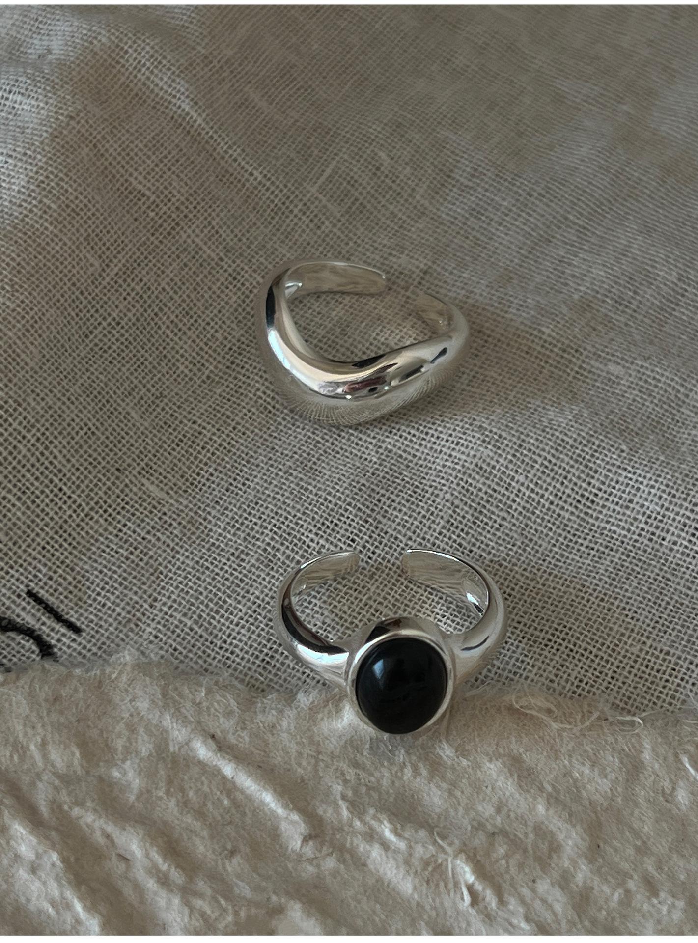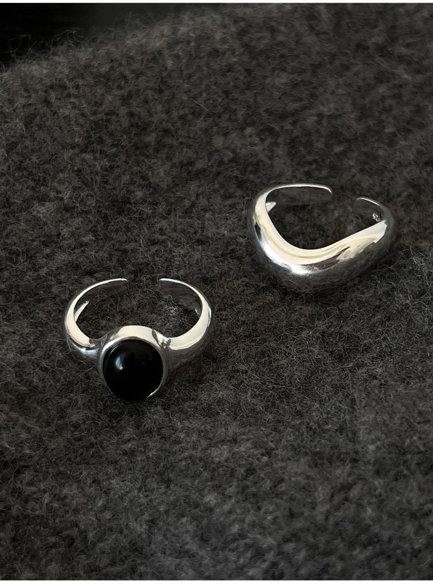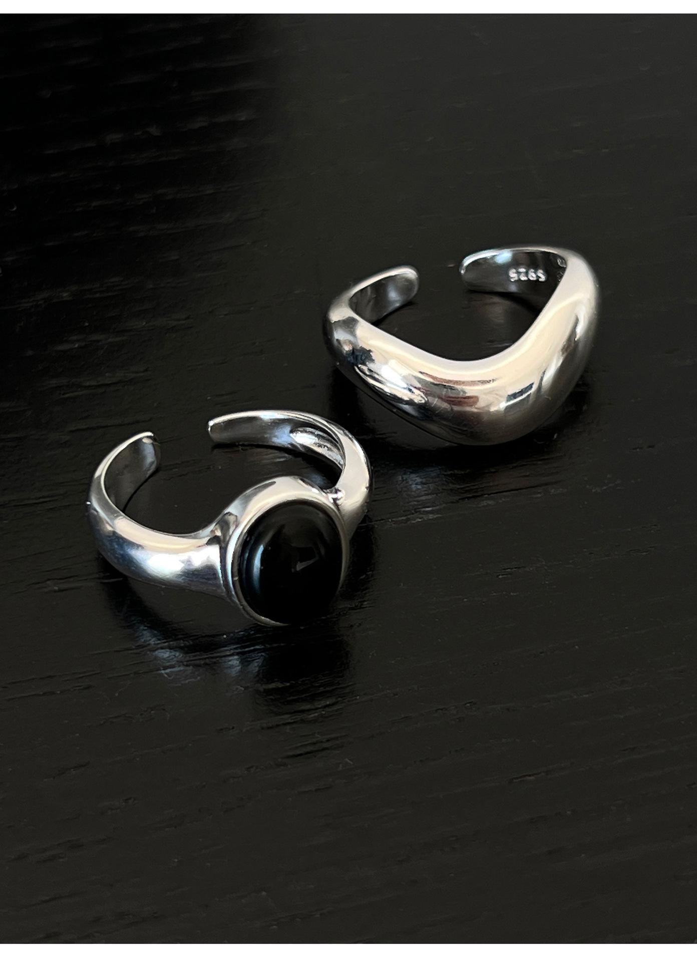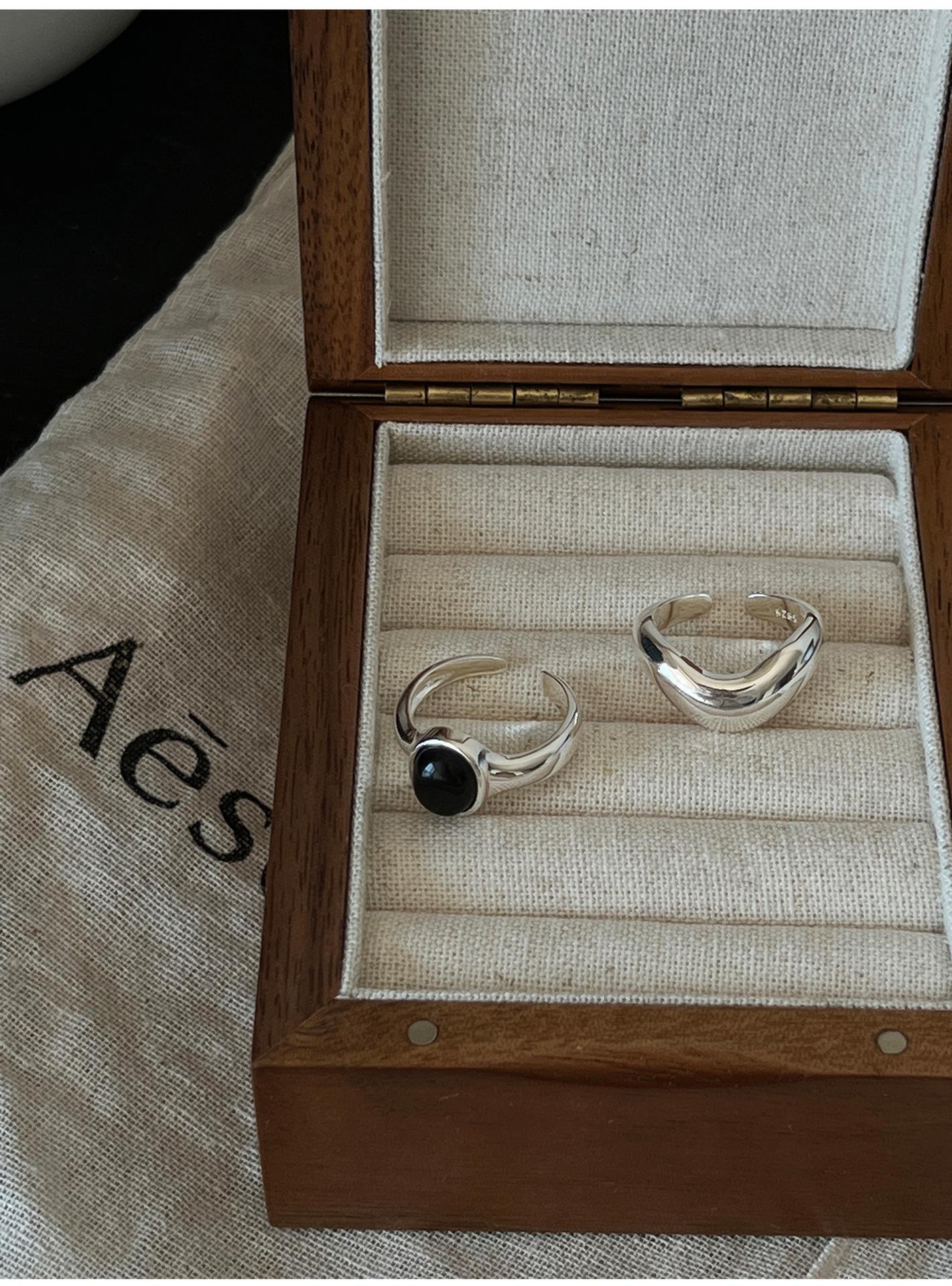 Anillo Ovalado de Zircón Negro para Mujer con Recorte Geométrico Nariz Elegante Anillo Abierto de Plata S925 Apilado Anillo para Dedo Índice