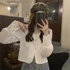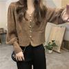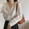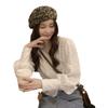 Estilo Coreano Cuello en V Marrón Encaje Camisa Top para Mujer Trendy 2025 Otoño Americano Retro Versátil Camisa de Manga Corta Larga
