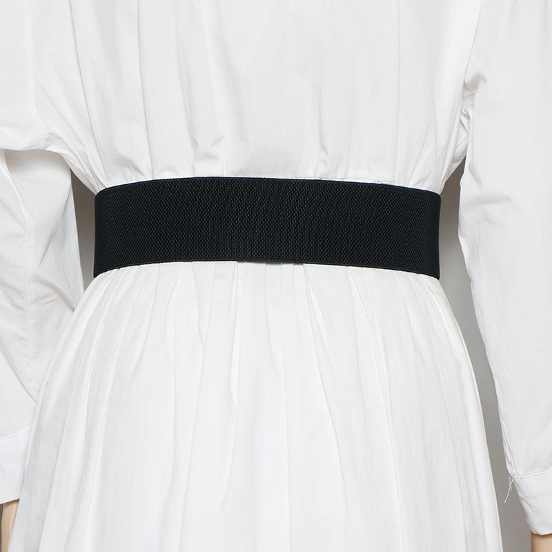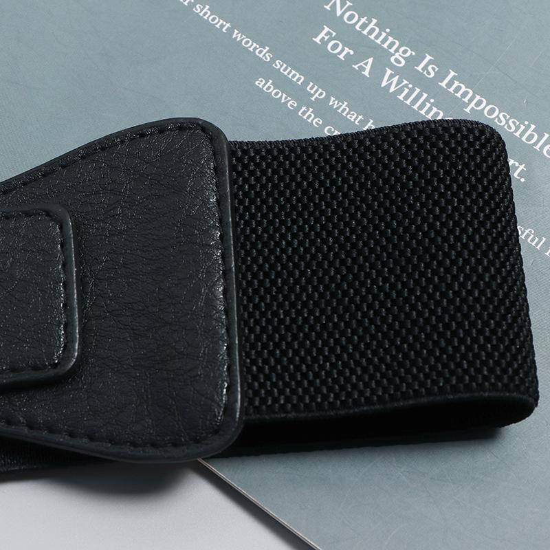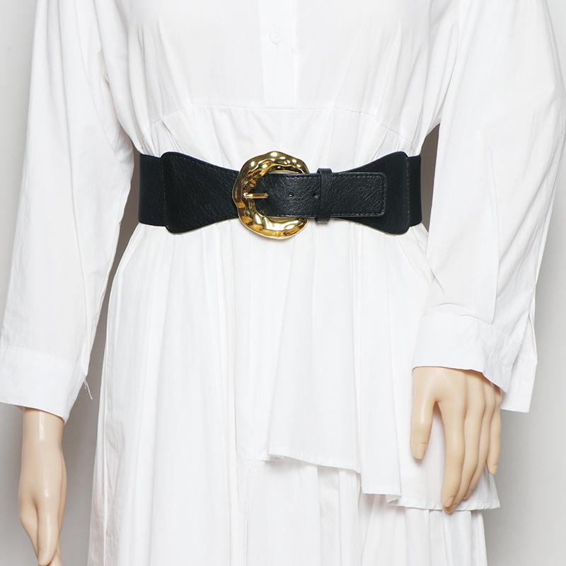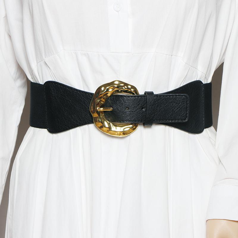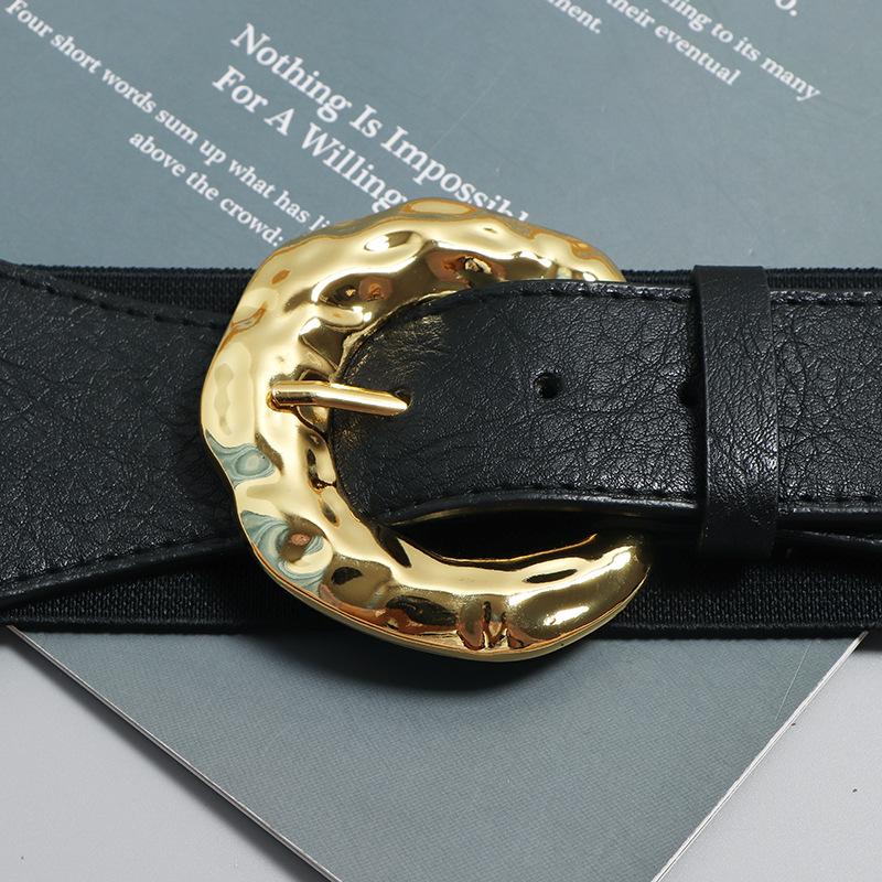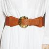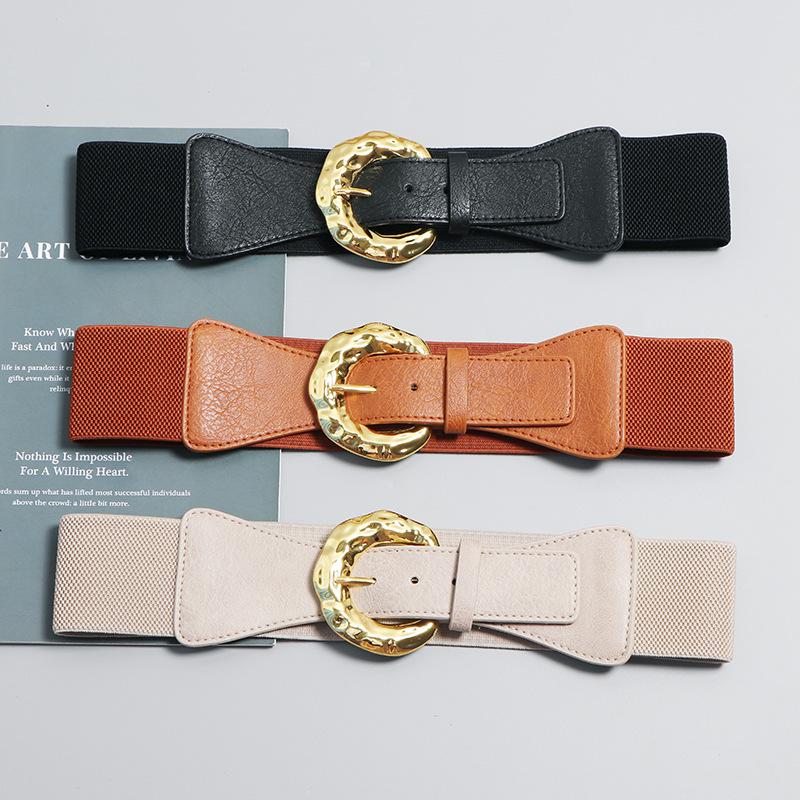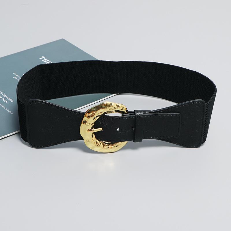 Cinturón ancho decorativo para mujer, cinturón ajustado, elástico, combinable, con sello rojo.