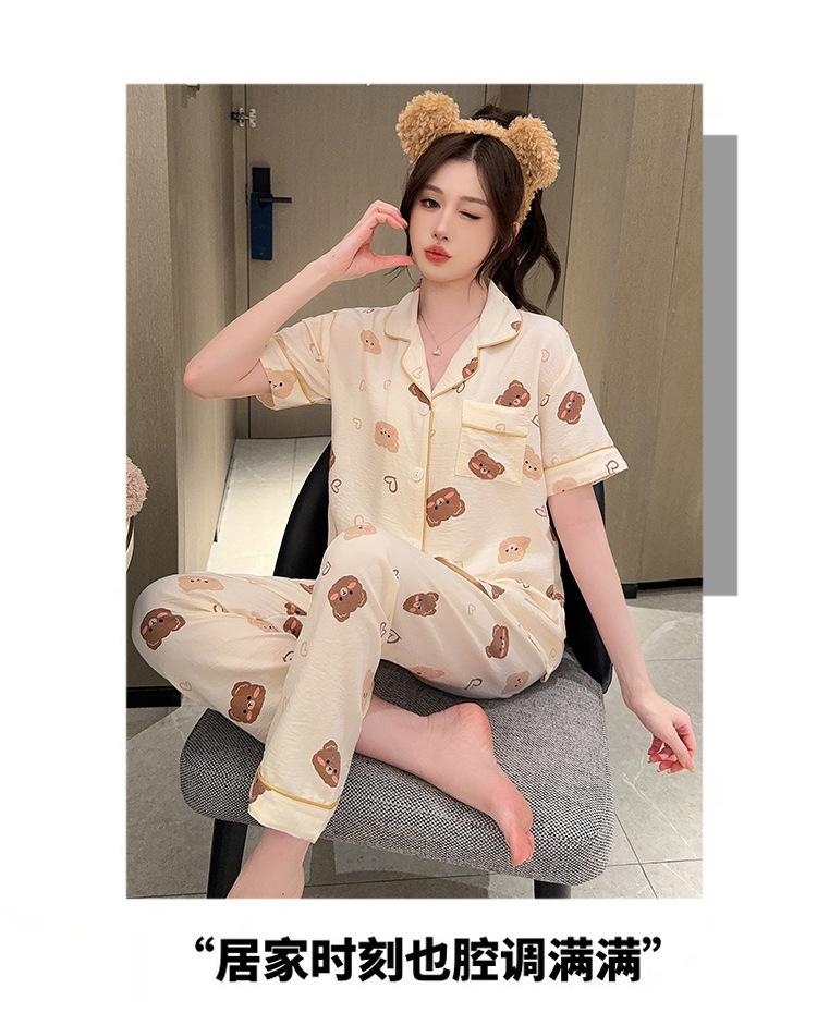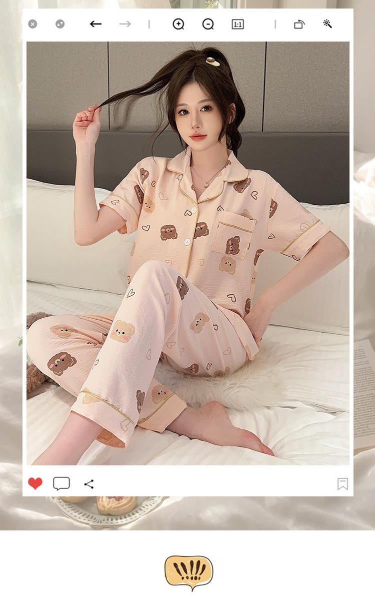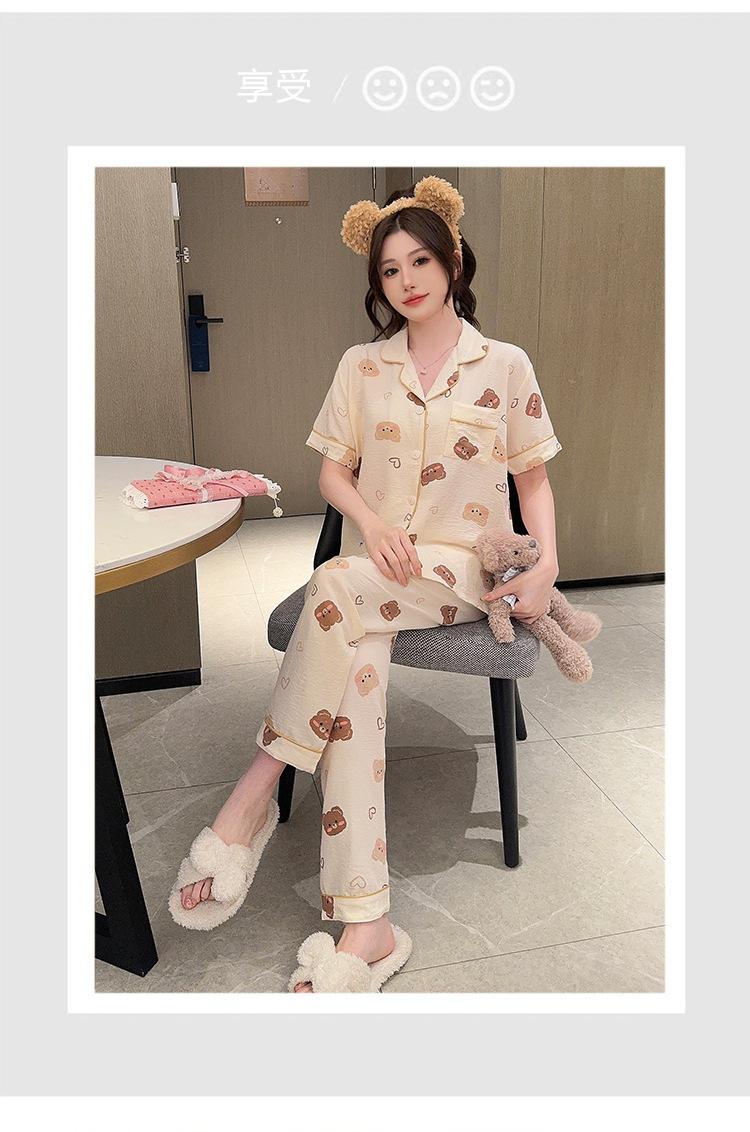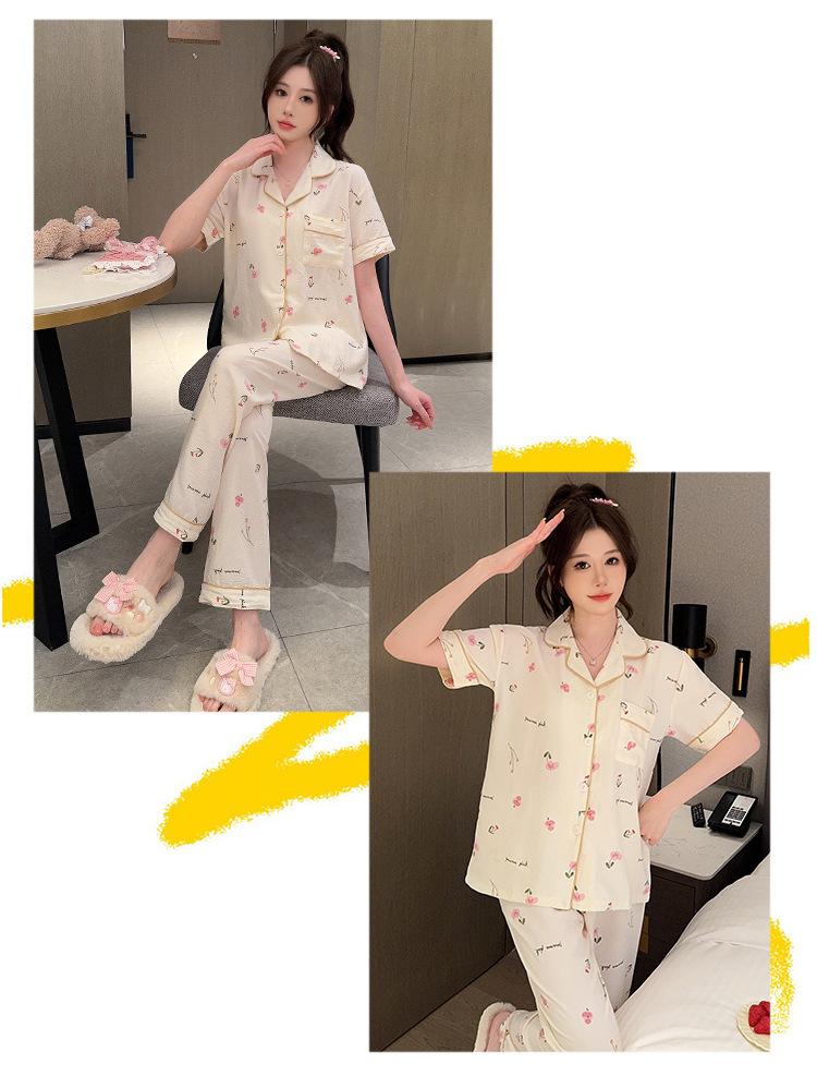 Pijamas de mujer de primavera y verano con bonitos pantalones de manga corta estilo princesa, conjunto fino de dos piezas, ropa de abrigo para el hogar