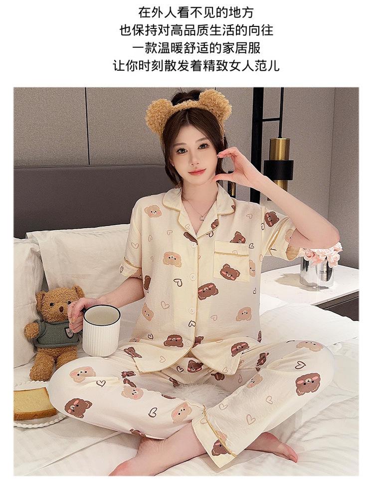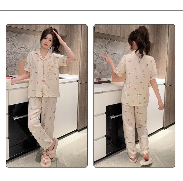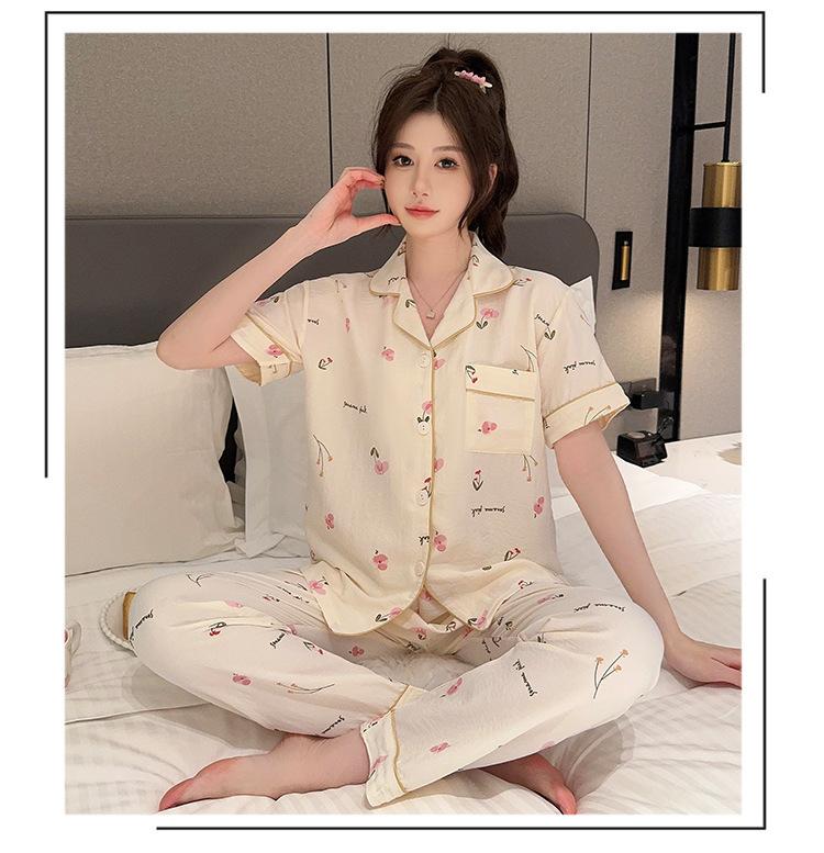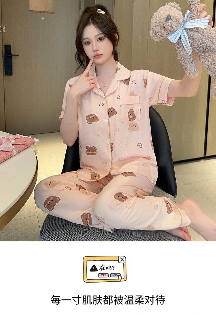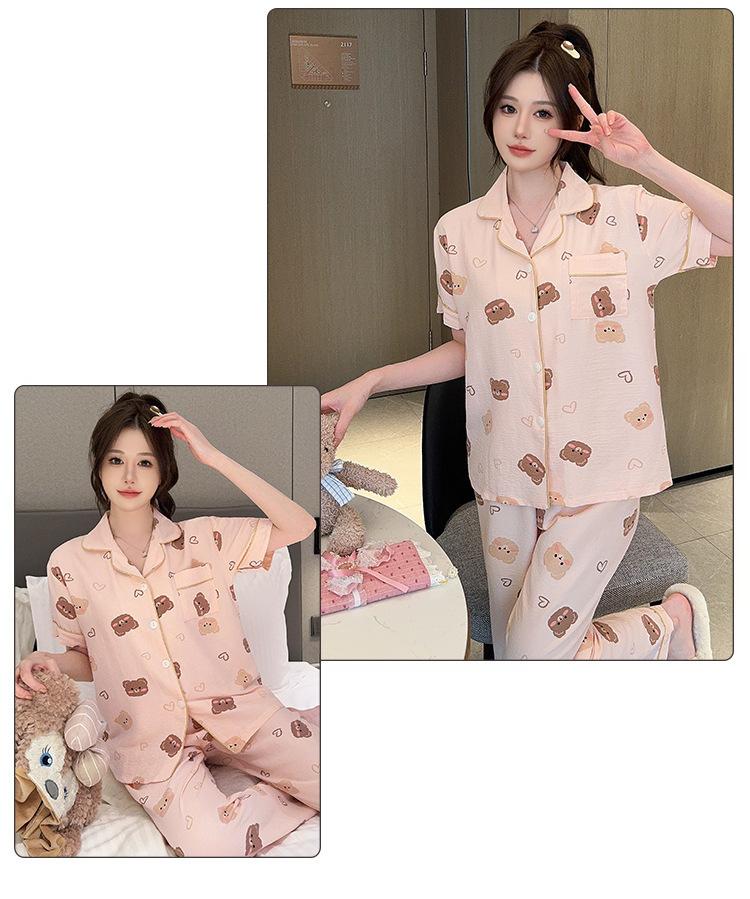 Pijamas de mujer de primavera y verano con bonitos pantalones de manga corta estilo princesa, conjunto fino de dos piezas, ropa de abrigo para el hogar